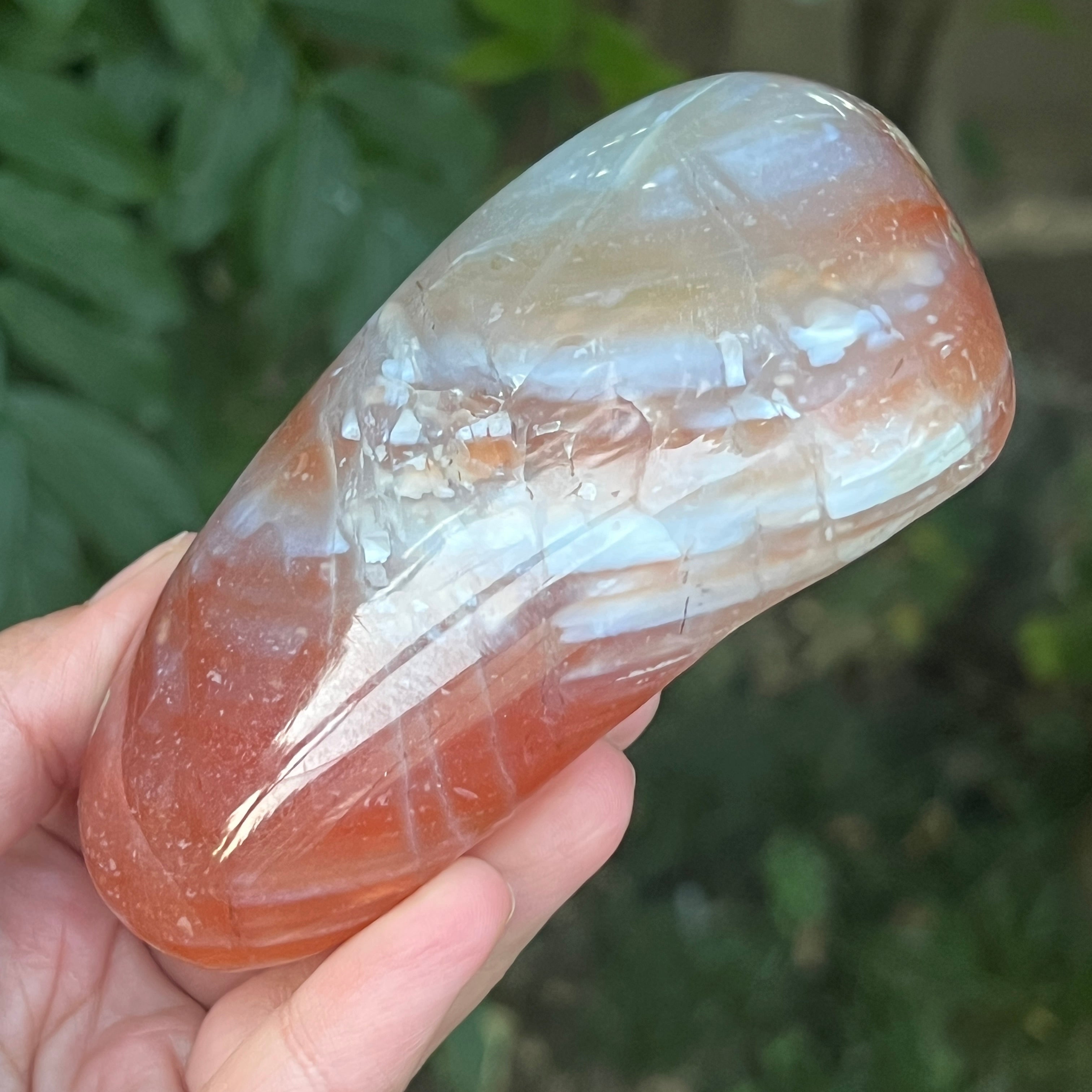 Ботсванският ахат е рядък и елегантен вид ахат, известен със своите фини ивици в нюанси на сиво, розово, бяло и кафяво, произхождащ от Ботсвана. Това е камък на емоционалния комфорт и защита, който успокоява дълбоките тревоги и страхове. Поддържа процесите на вътрешна трансформация, помагайки за освобождаване от негативно мислене. Свързва се с коренната чакра и чакрата на третото око (Ajna – чакра 6), насърчавайки вътрешната стабилност и умствената яснота. Ботсванският ахат често се използва при медитация за повишаване на концентрацията и интуицията.