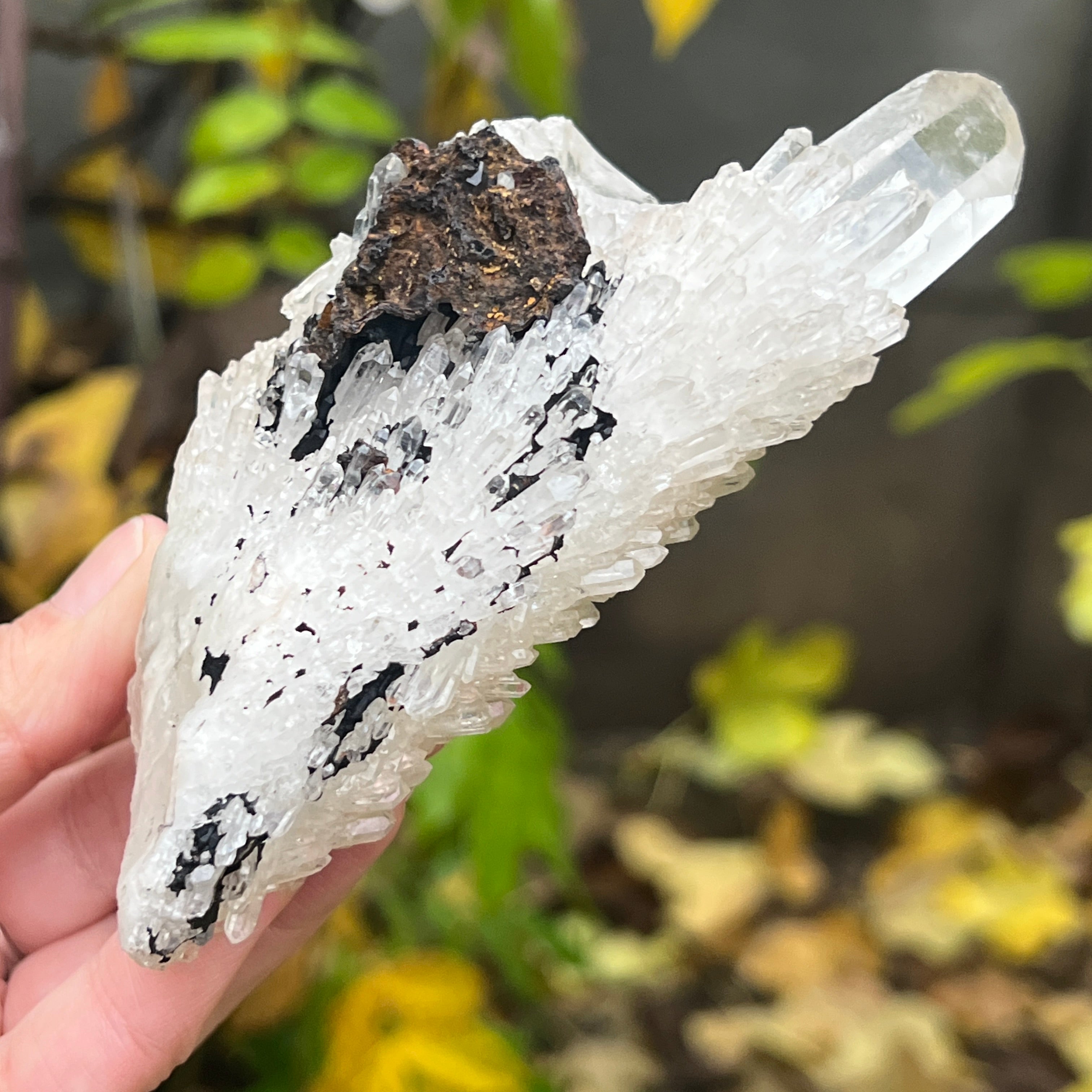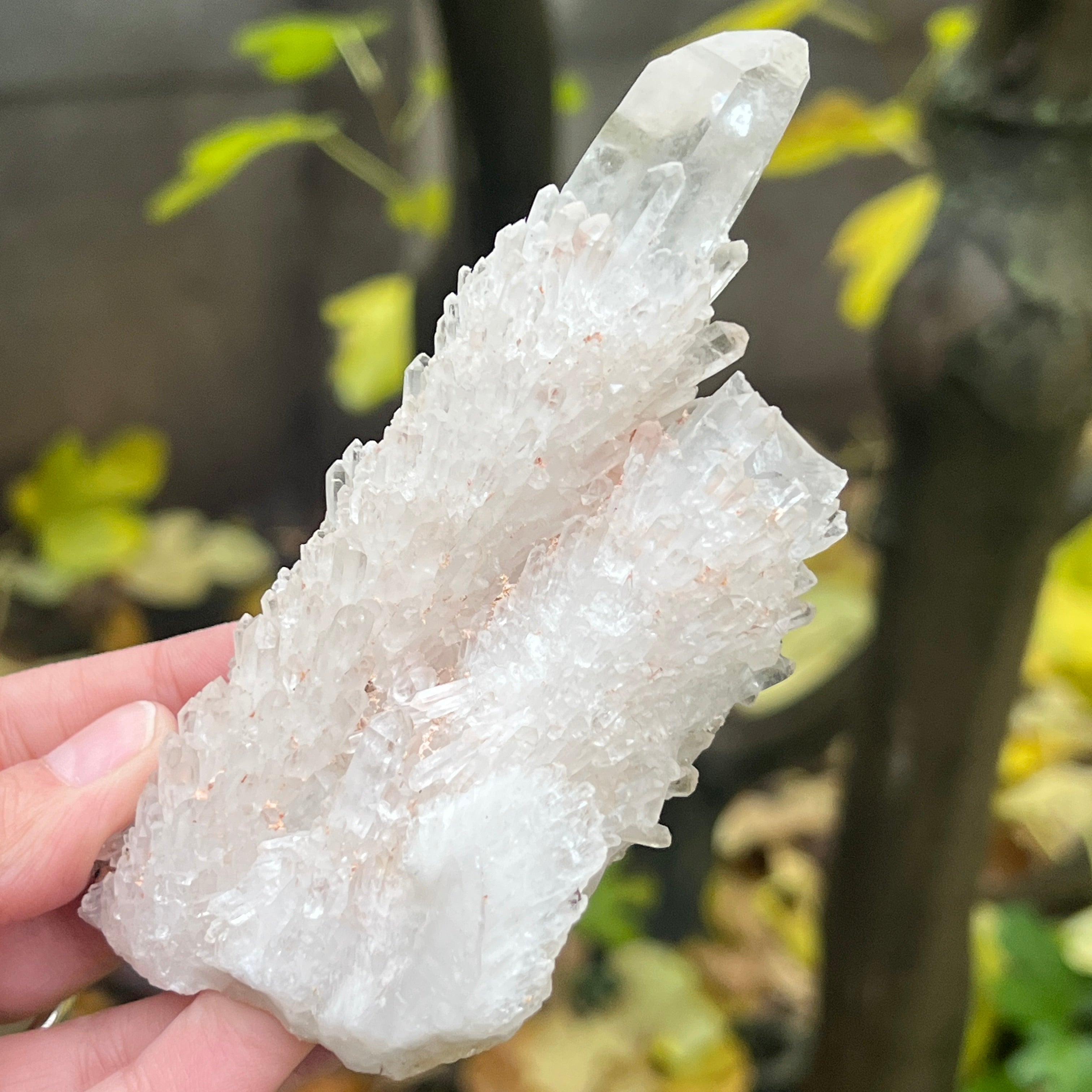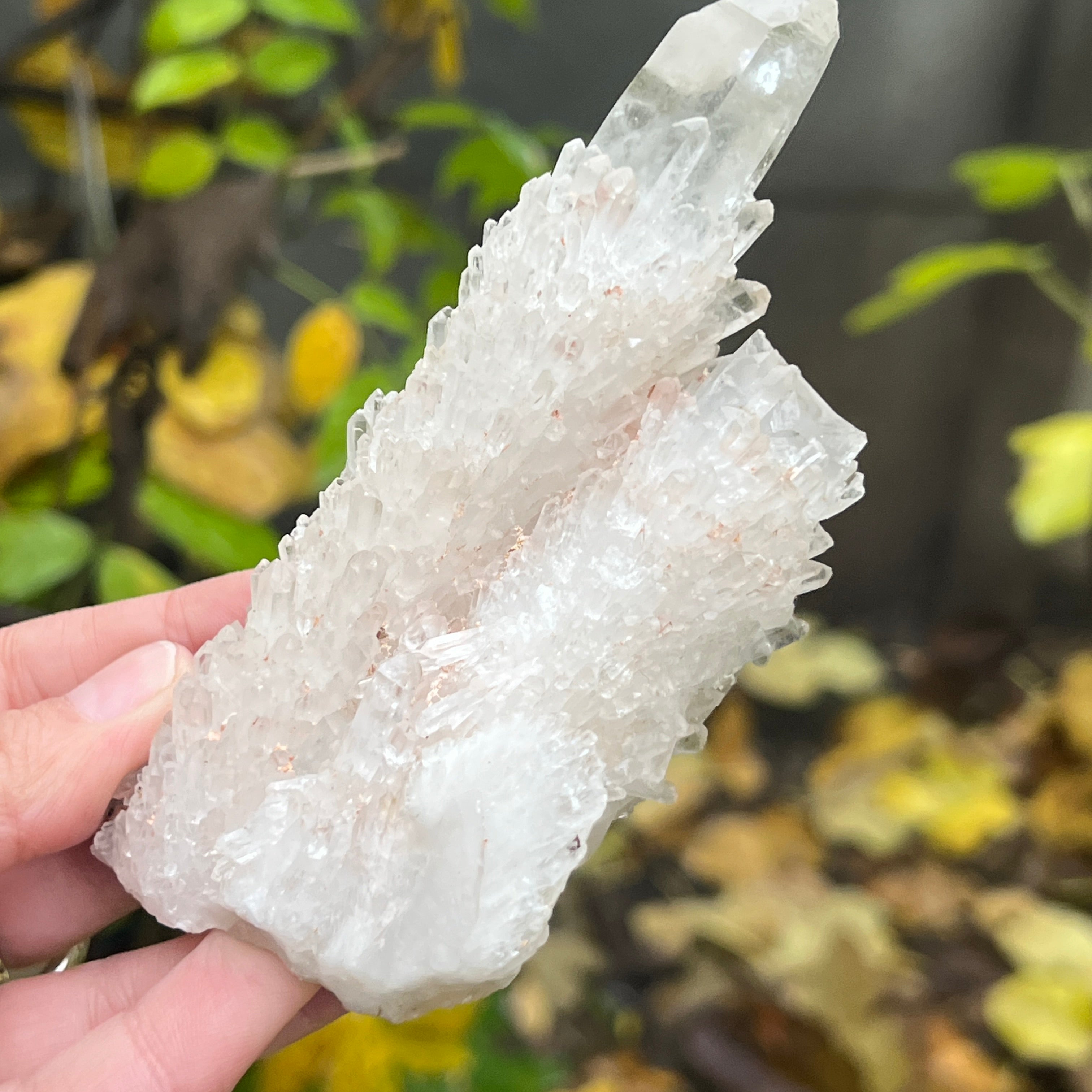 Връх, който изглежда като изсечен от самата светлина. Небесният кварц, известен още като свещен кварц, съчетава силата на кристал от кварц с мекотата и блясъка на вътрешен пламък. Неговата уникална форма, наподобяваща кристален ананас, излъчва енергия на дълбоко пречистване и свързване с висшите нива на съзнанието.