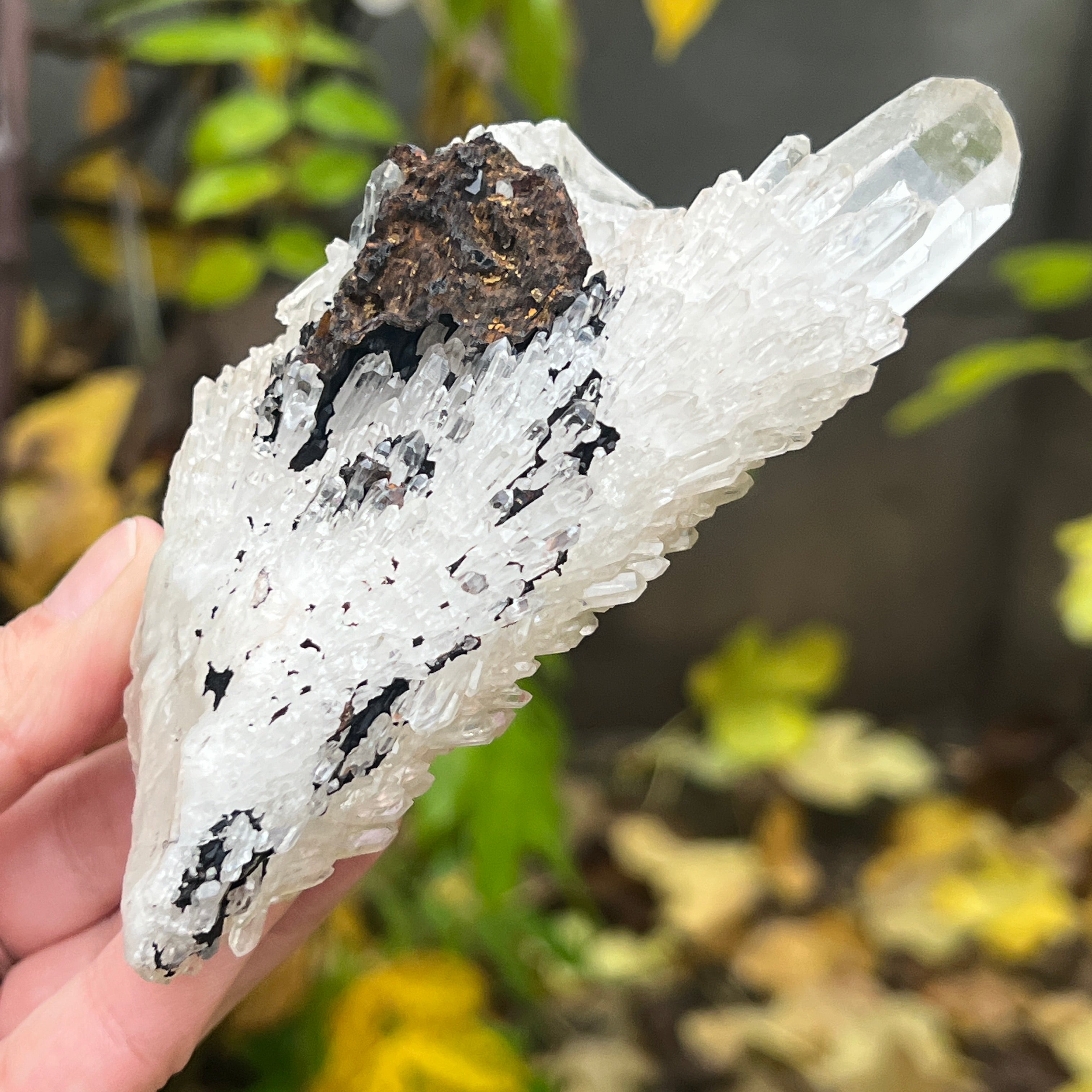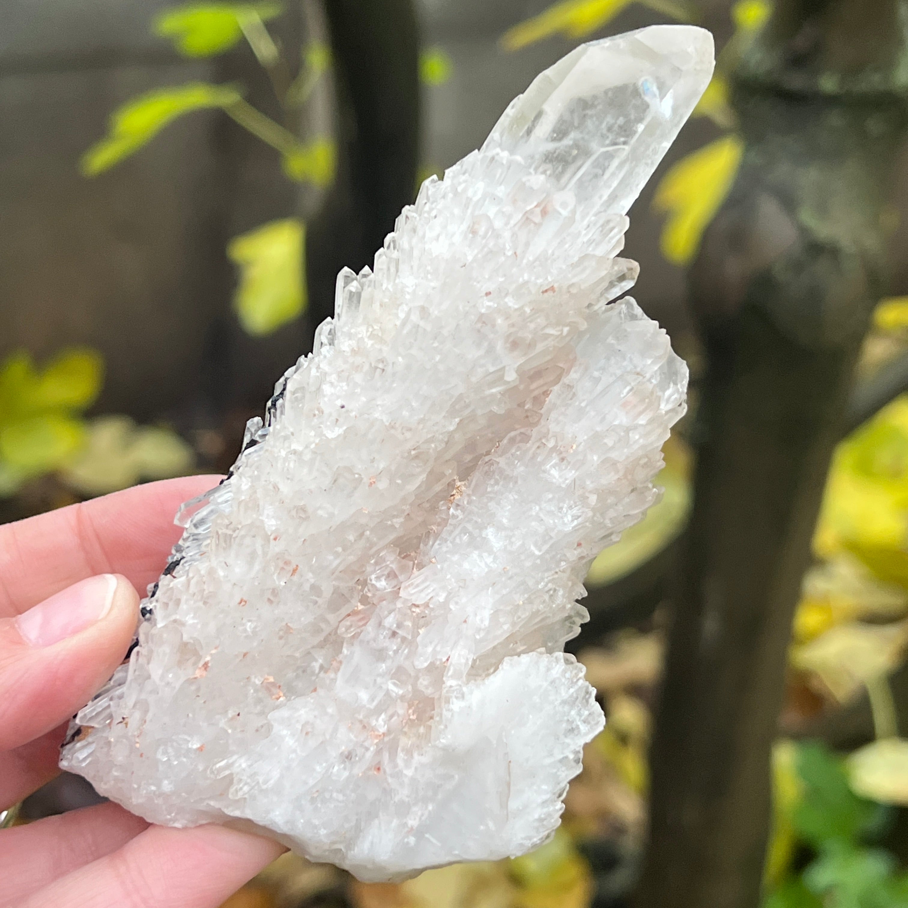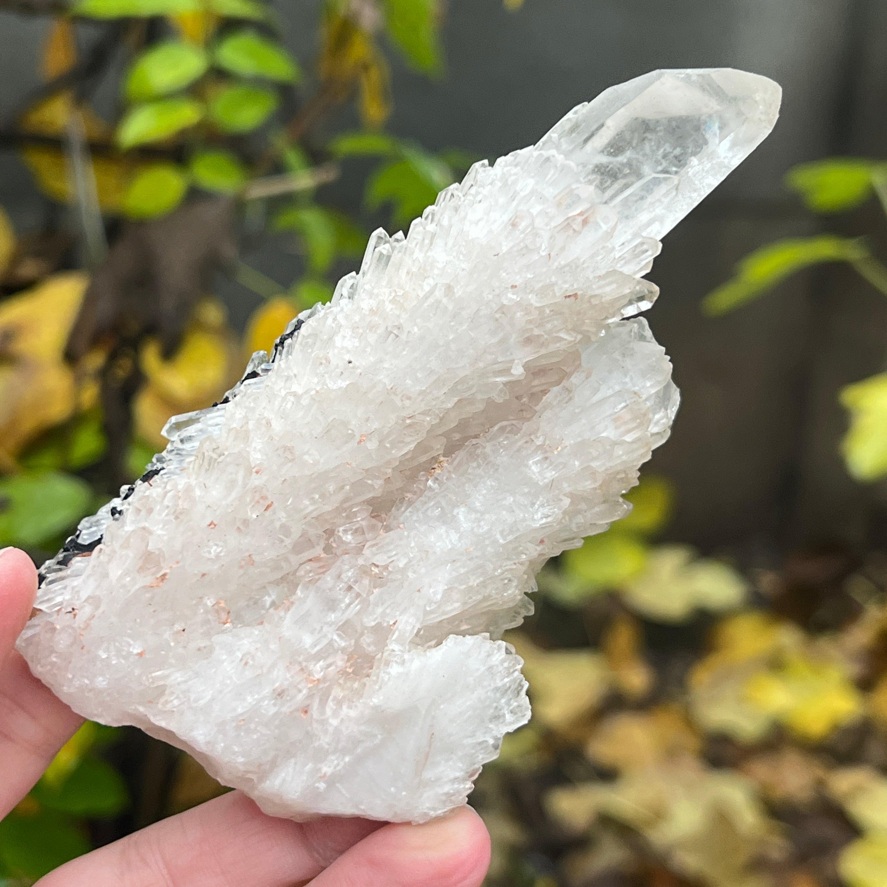 Връх, който изглежда като изсечен от самата светлина. Небесният кварц, известен още като свещен кварц, съчетава силата на кристал от кварц с мекотата и блясъка на вътрешен пламък. Неговата уникална форма, наподобяваща кристален ананас, излъчва енергия на дълбоко пречистване и свързване с висшите нива на съзнанието.