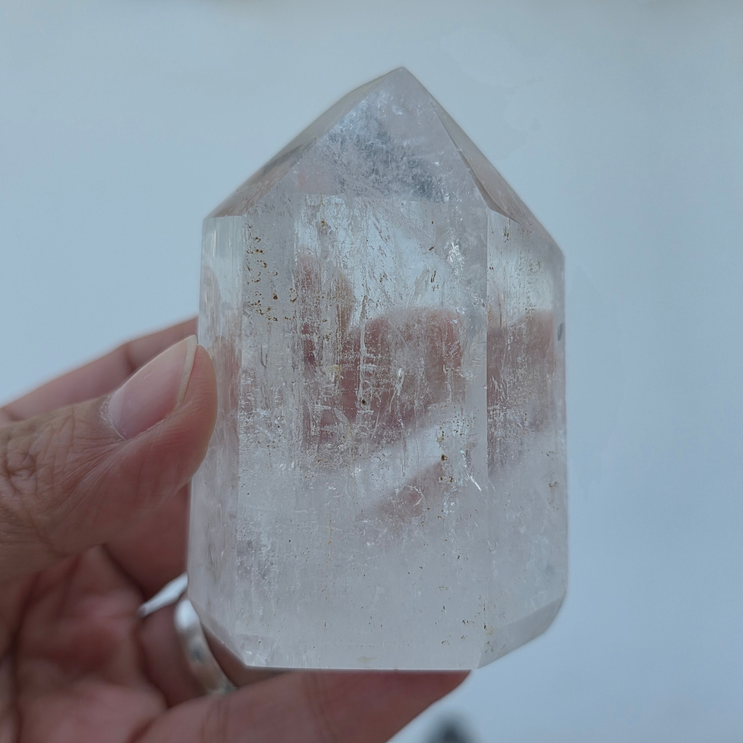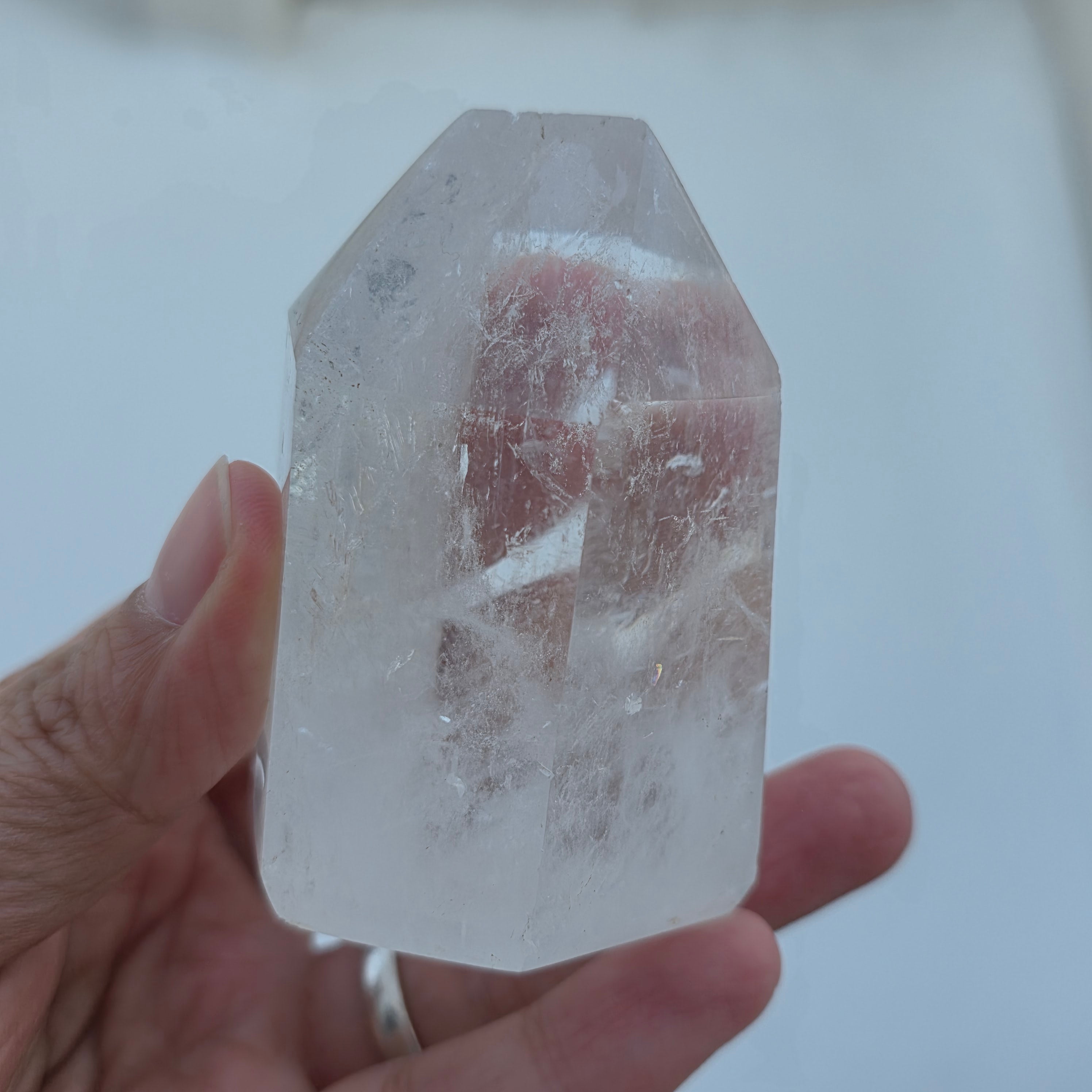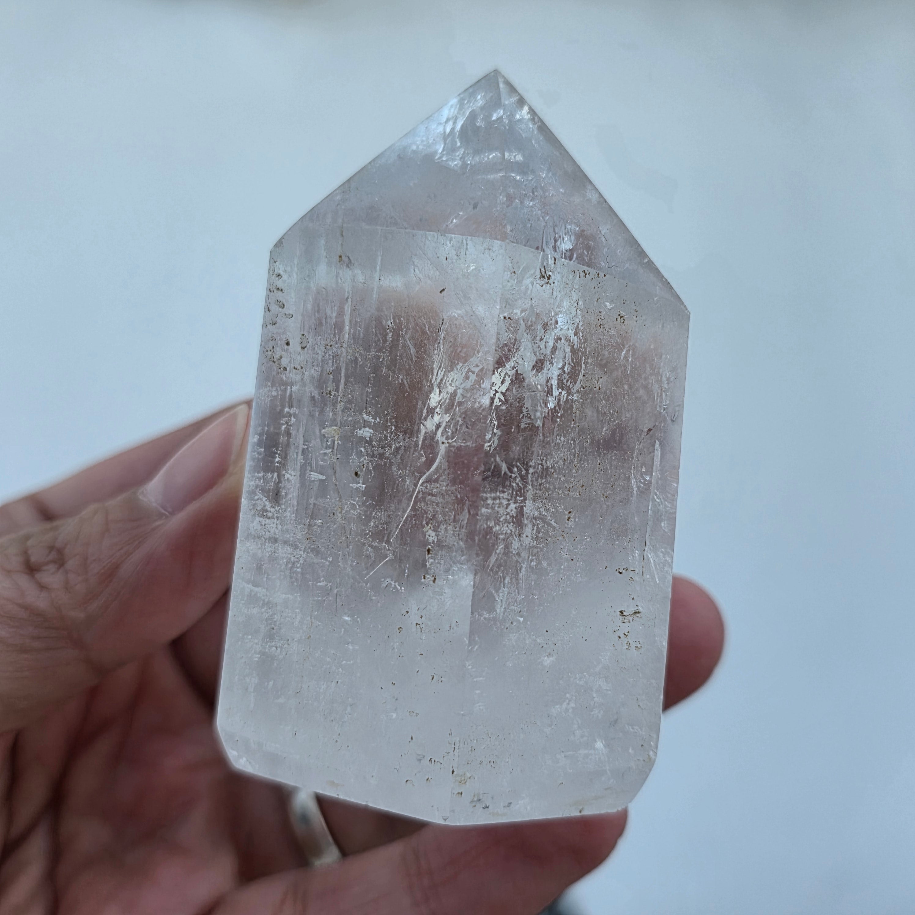 Безцветният кварц е особено ценен заради пречистващото свойство, което придава на медитациите или пространствата, в които е поставен.