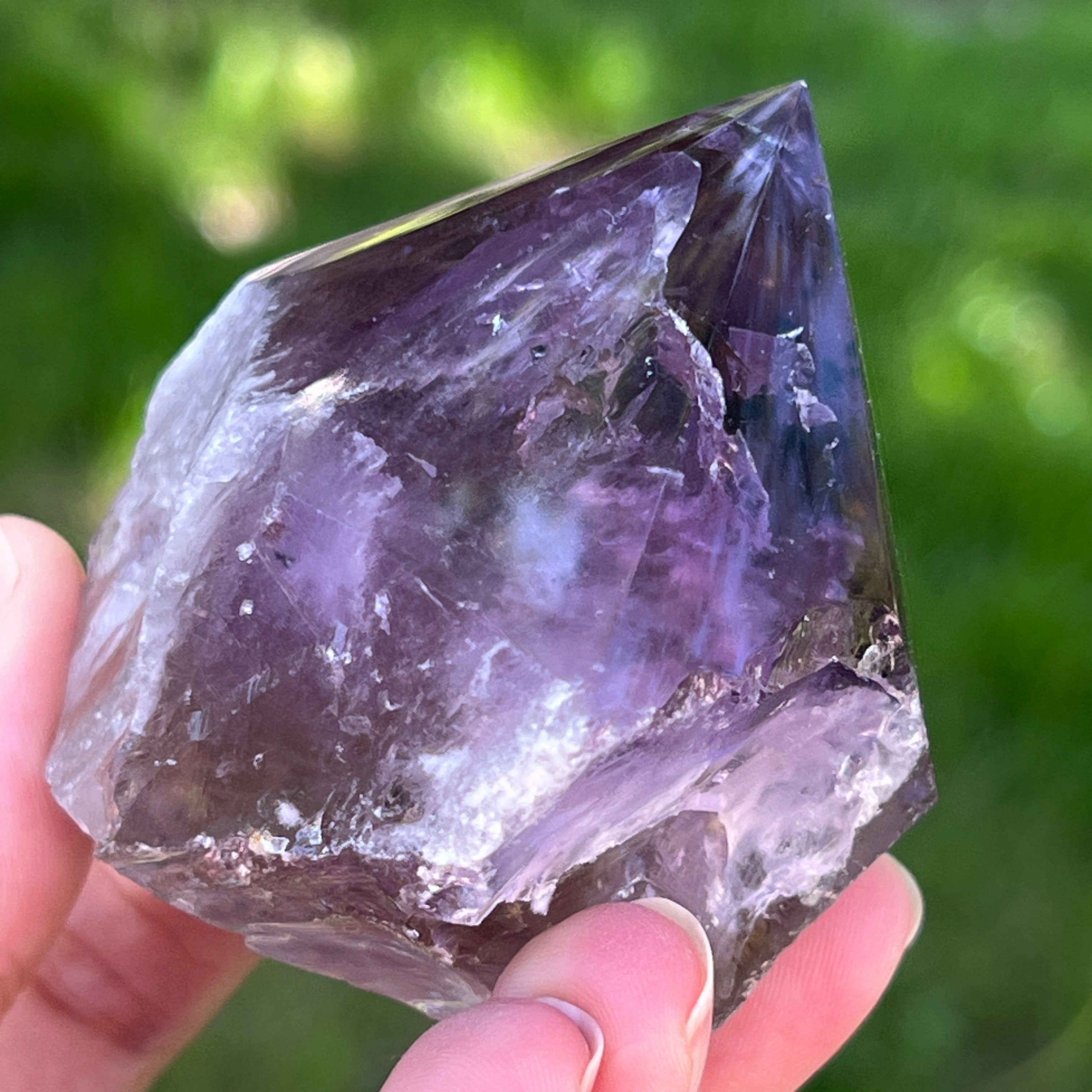 Аметистът Бахия, понякога наричан и „Змиев ъгъл“, се добива от региона Бахия, Бразилия. Всеки кристал е уникален натурален образец с добре дефинирана кристална форма и има ключове или изпъкналости по цялата си дължина. Тези кристали не се отделят от по-голяма група, а се формират индивидуално, един по един.