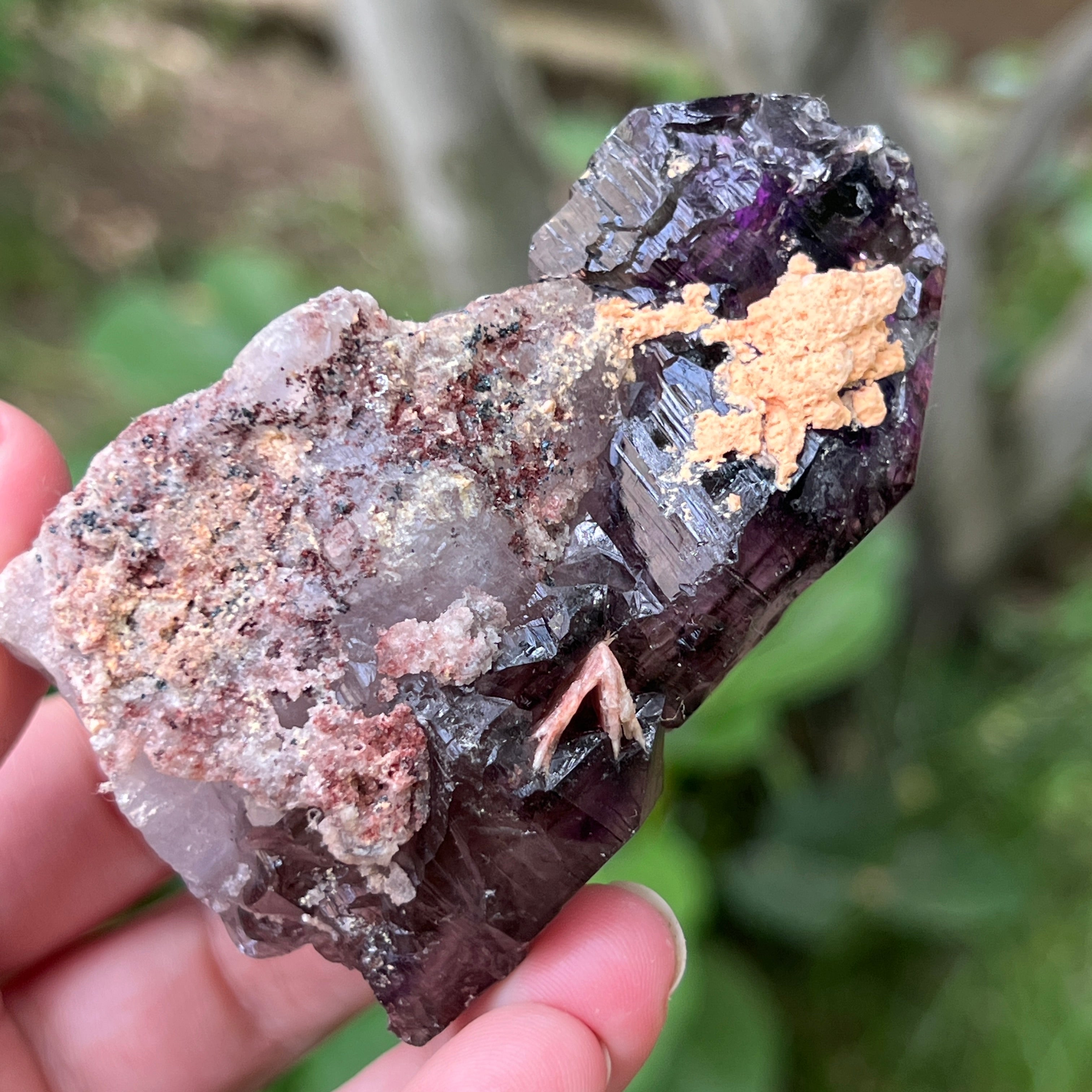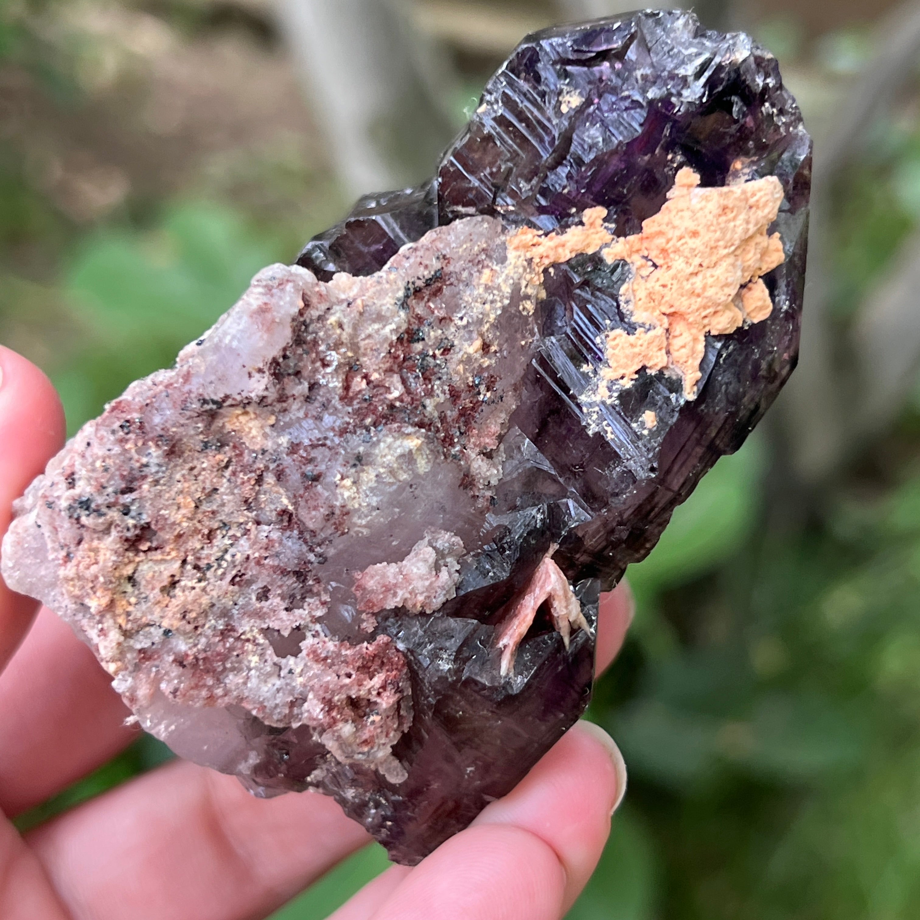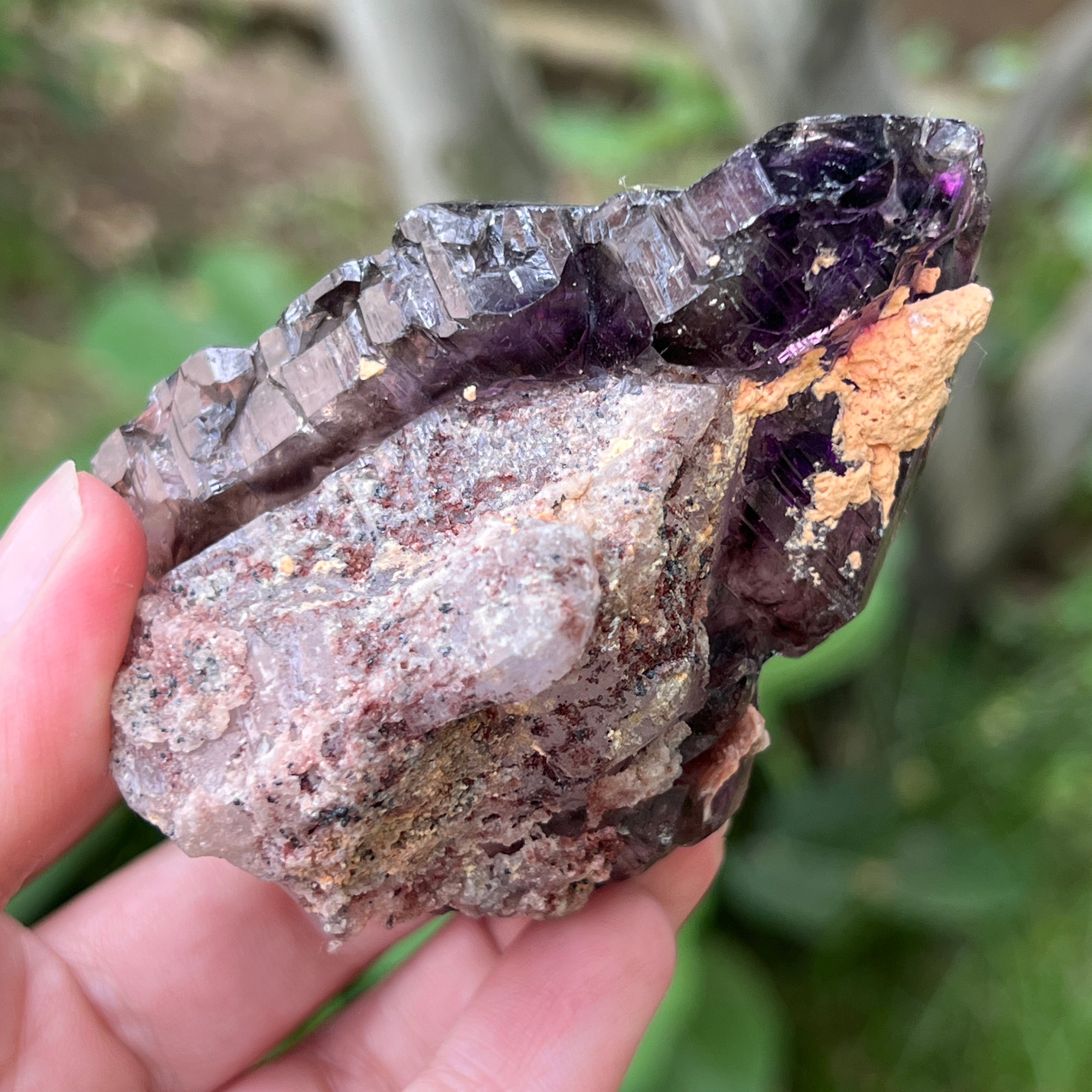 Роден в сърцето на масива Брандберг в западна Намибия, този уникален аметист идва от една от най-забележителните геоложки области в Африка. Планините Брандберг, плутонно тяло, образувано преди повече от 130 милиона години, крият редки геоди, където кварцовите кристали са се формирали при изключителни хидротермални условия. Резултатът е аметист с рядка красота, който комбинира интензивни нюанси на виолетово с области на чист или опушен кварц, всичко в един кристал.