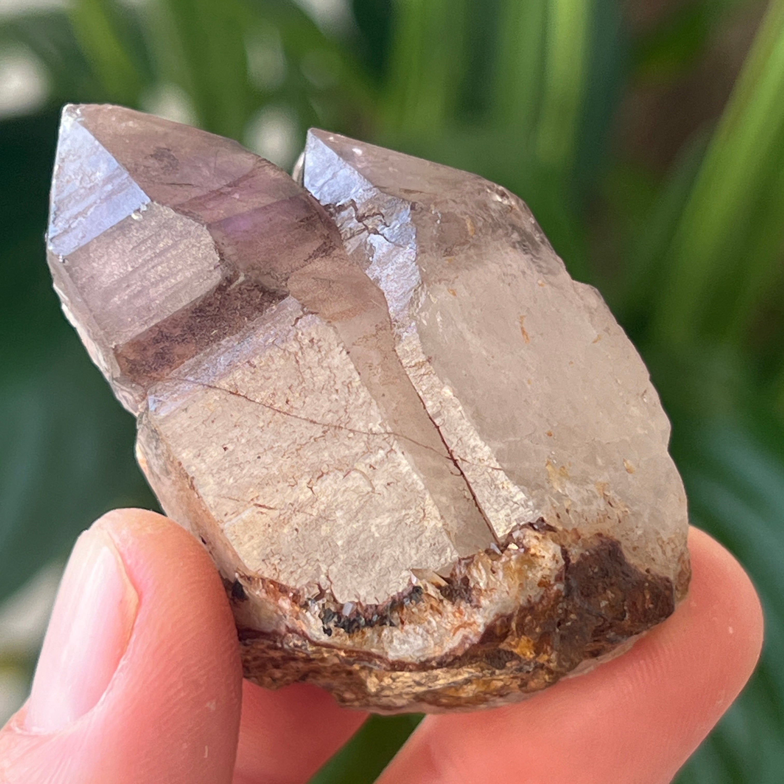 Кристализирайки в трайгонална система, този образец на SiO₂ (диоксид на силиция) се отличава с отличната си прозрачност и естествените си шестостенни форми. Някои парчета включват „призраци“ – вътрешни контури, които отразяват предишни етапи на растеж – или съдържат подвижни мехурчета от хидротермална течност, хематит или гоетит, всички запечатани вътре в кристала преди милиони години.
