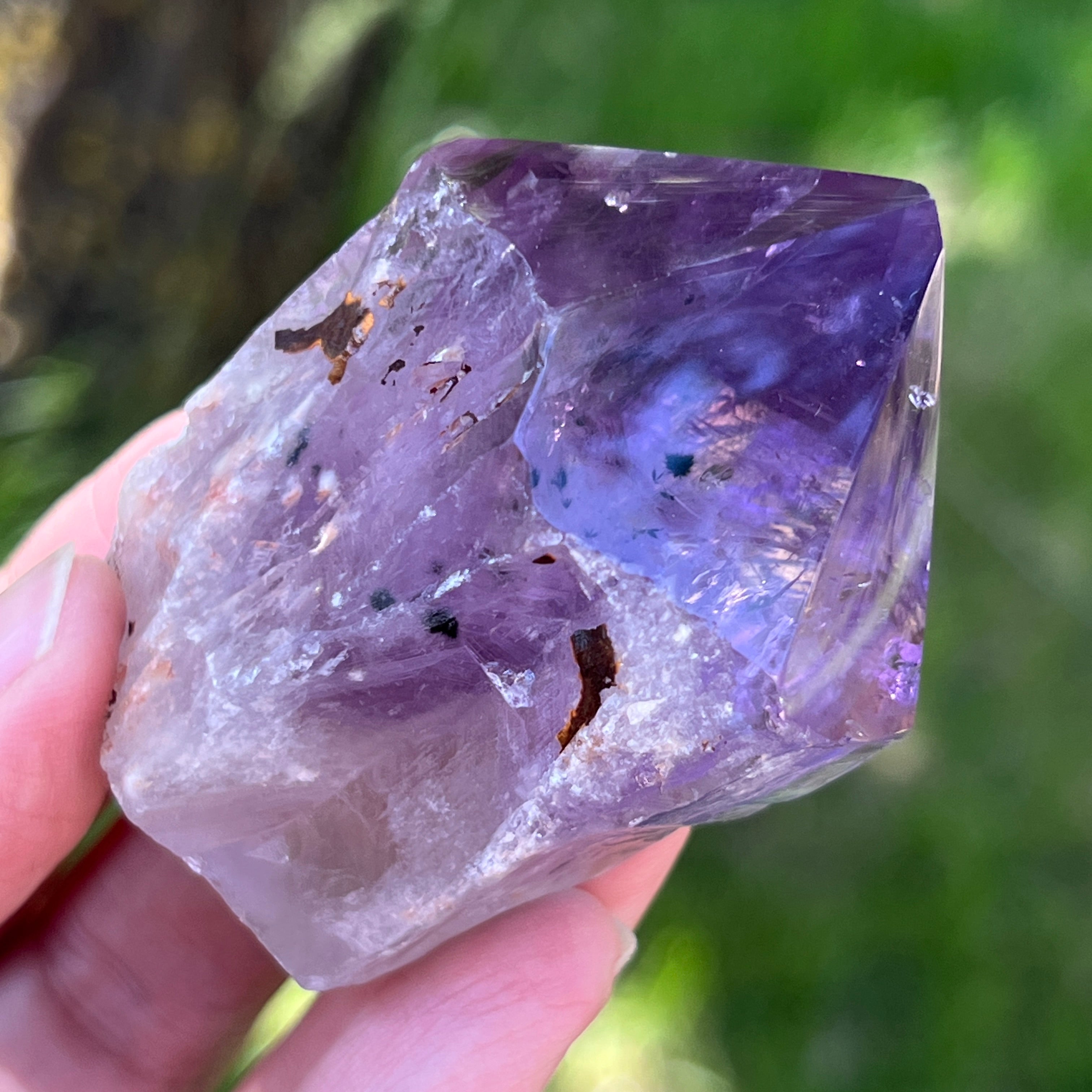 Аметистът от Баия, понякога наричан и „Драконовият ъгъл“, се добива от региона Баия, Бразилия. Всеки кристал е уникален естествен образец, с добре дефинирана кристална форма и има ключове или издатини по цялата си дължина. Тези кристали не се отделят от по-голяма група, а се образуват индивидуално, по един.