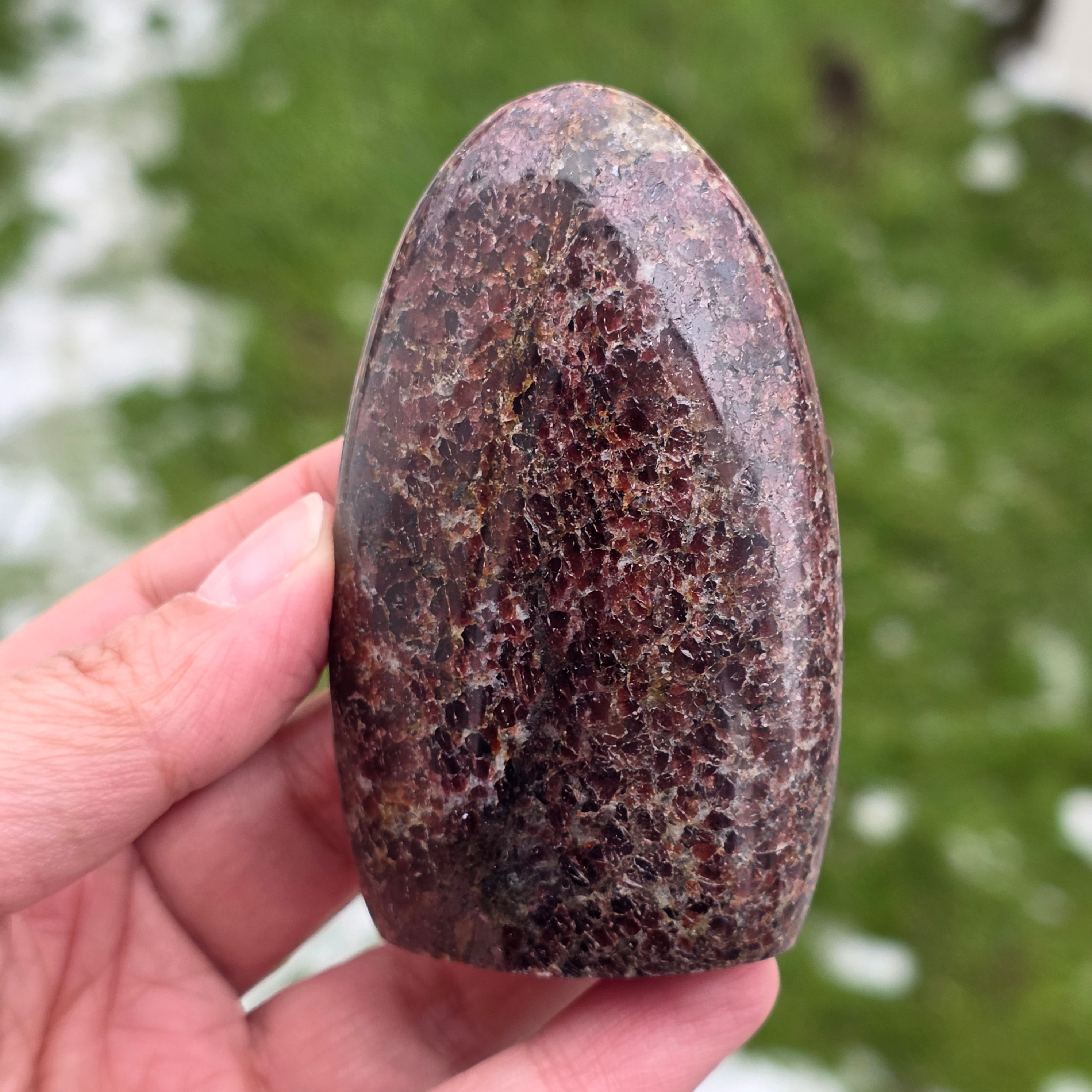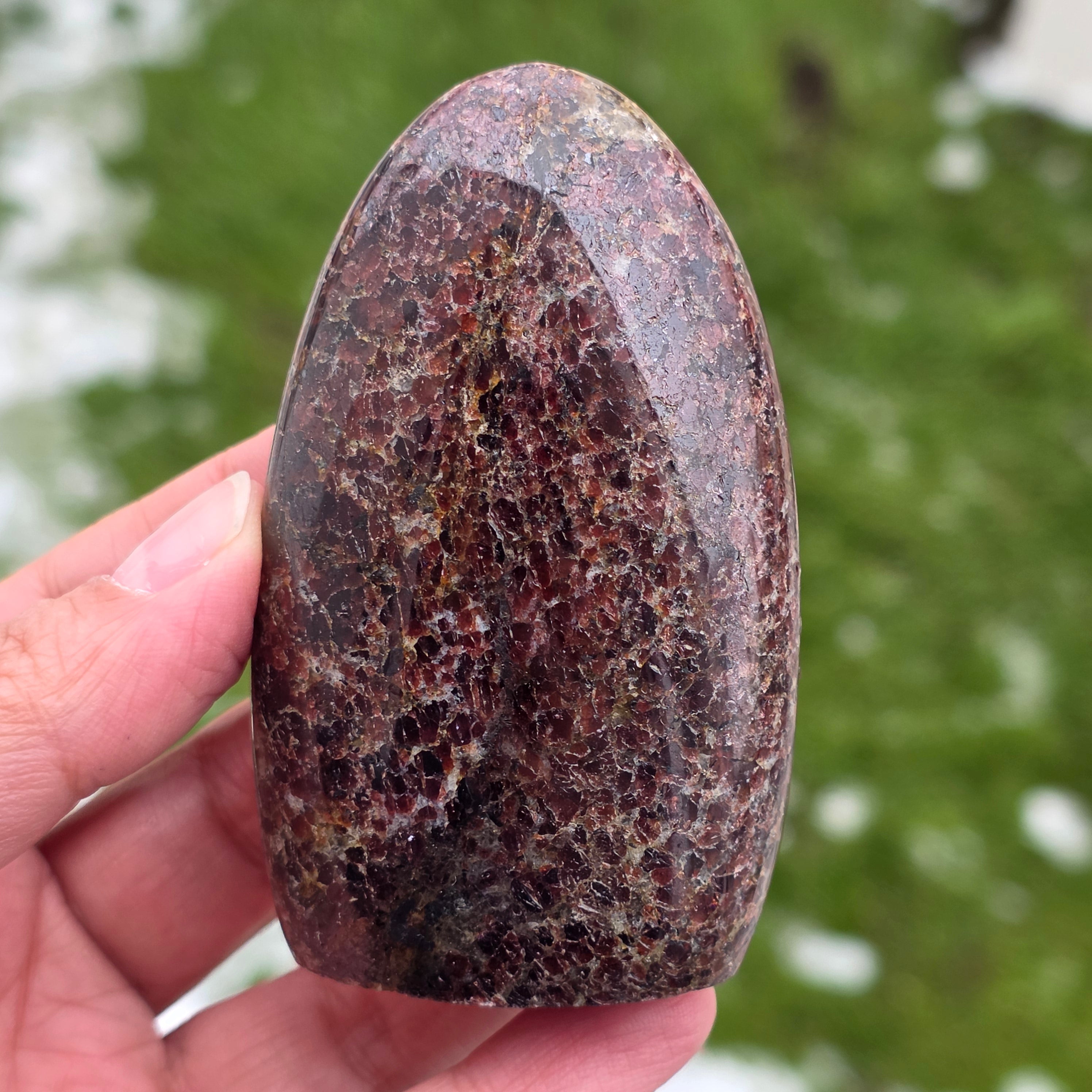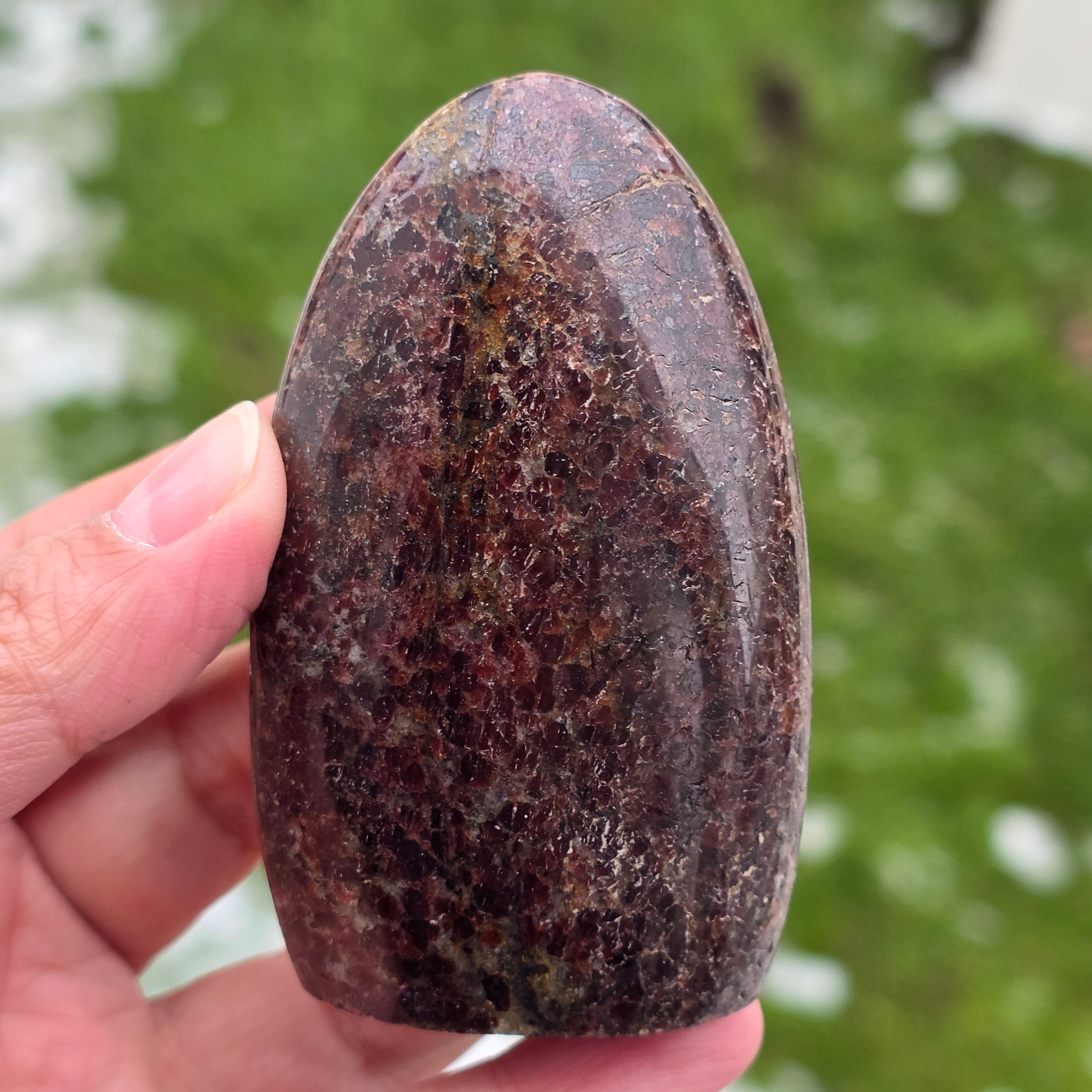 Този натурален гранат от Мадагаскар, с структура в свободна форма, запазва автентичния характер на кристала, подчертавайки баланса между полираните повърхности и естествените зони. Това е подходящо парче за колекция, места за медитация или офис, с мощно и стабилизиращо присъствие. Гранатът се свързва с жизненост, заземяване и вътрешна сила, често се избира за подкрепа на енергията по време на усилия, трансформация и повторно свързване със собствената сила. Свободната форма позволява естествено изразяване на енергията, придавайки на това изделие уникален и автентичен характер. Гранатът също се счита за камък на страстта и сексуалната енергия и често се носи за повишаване на нивото на енергия и жизненост.
