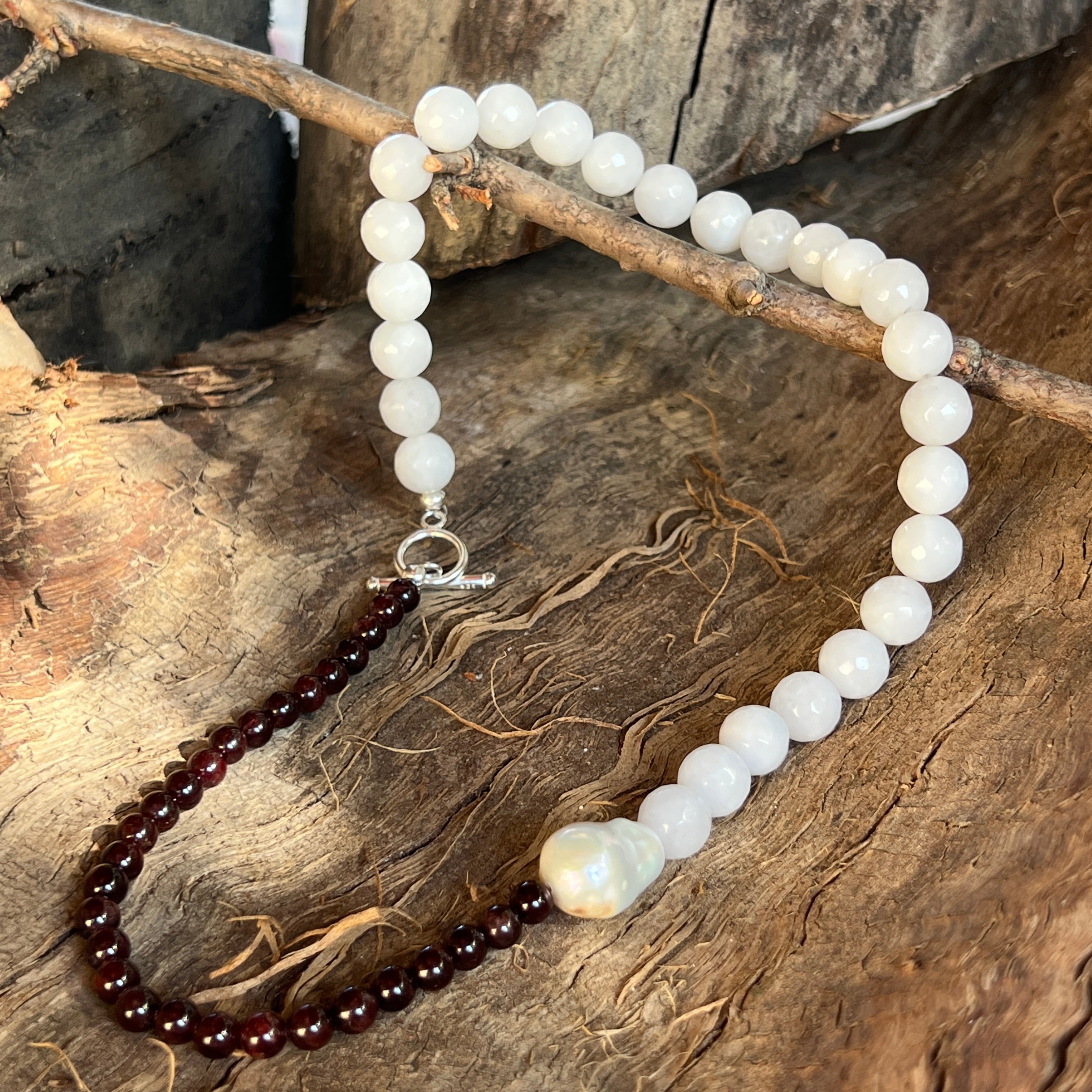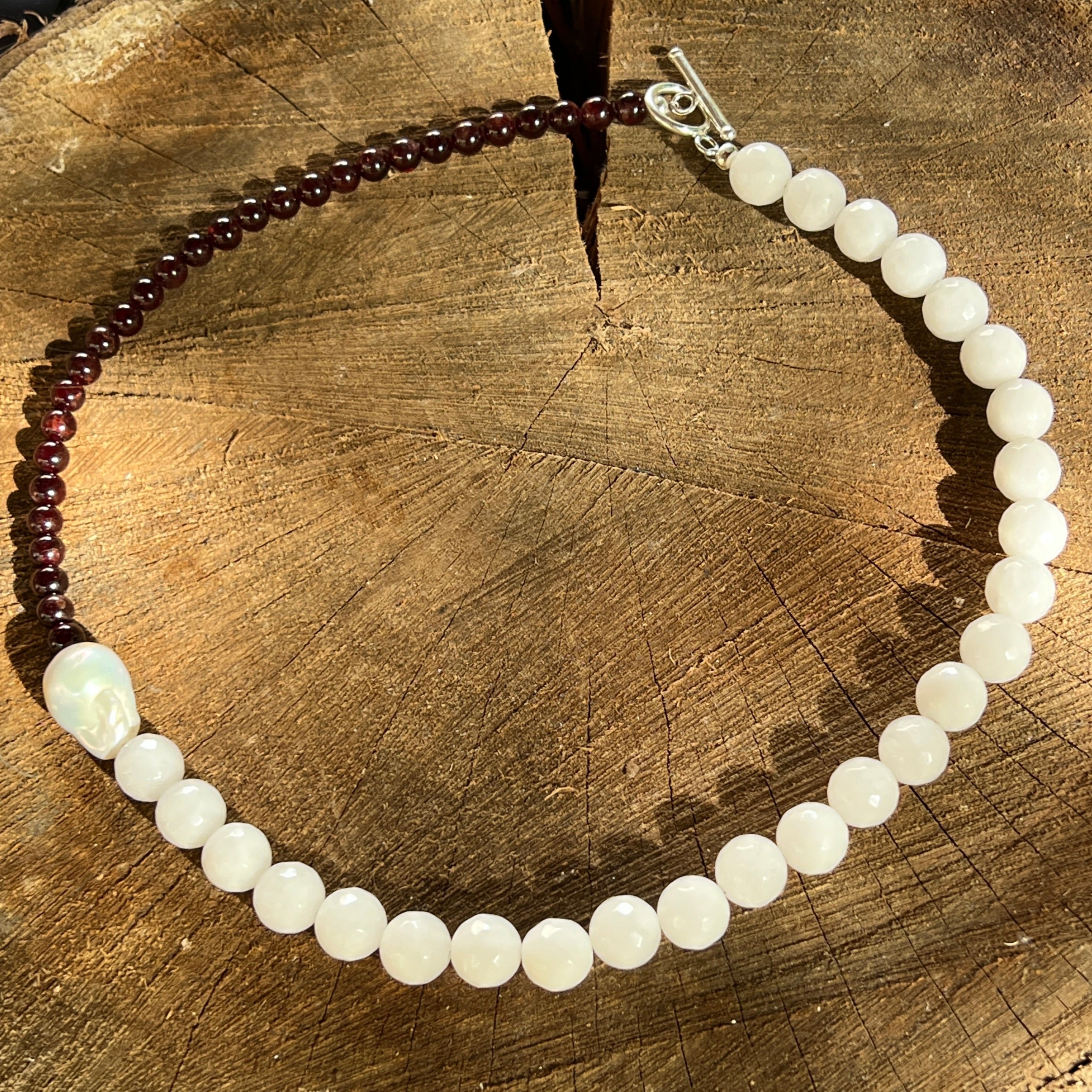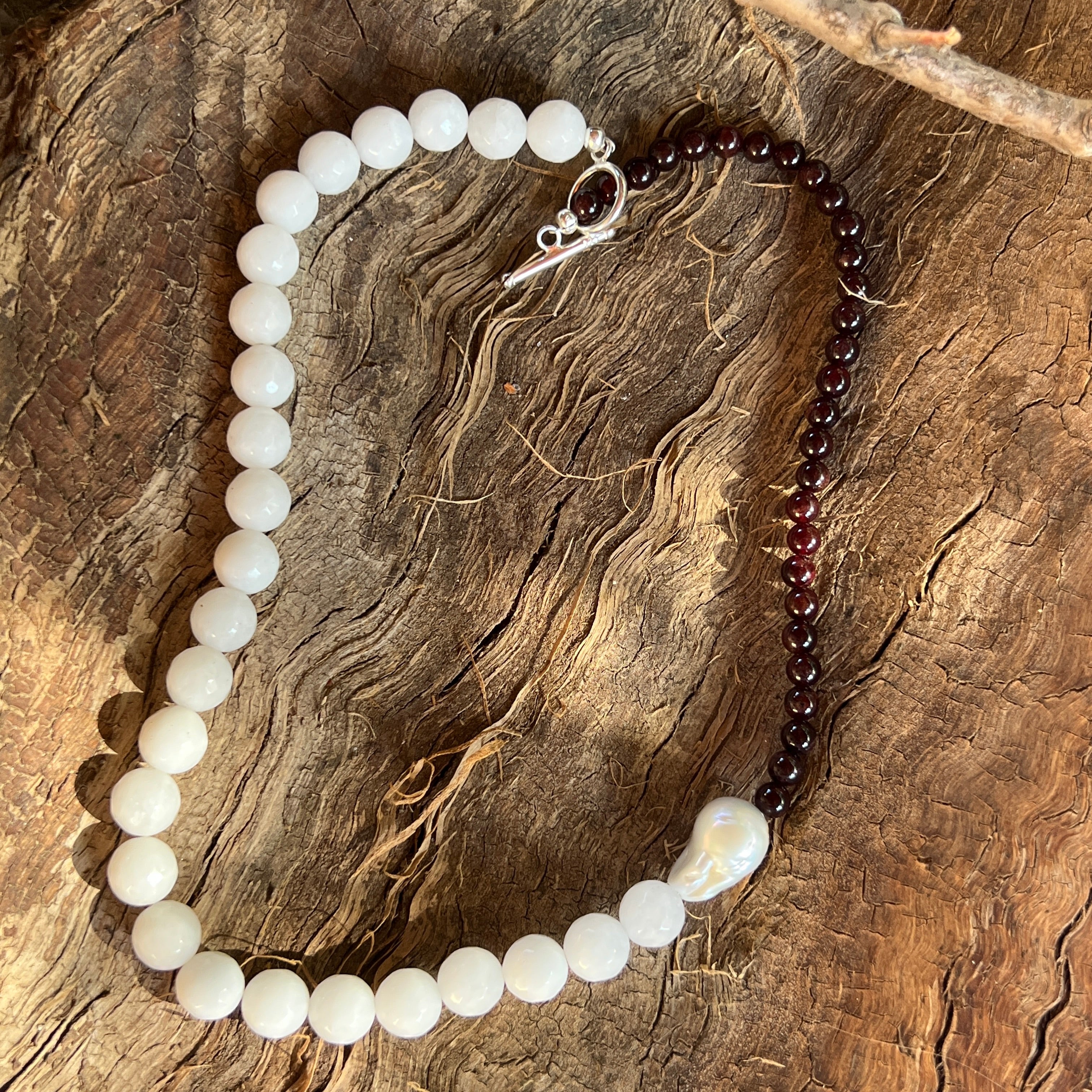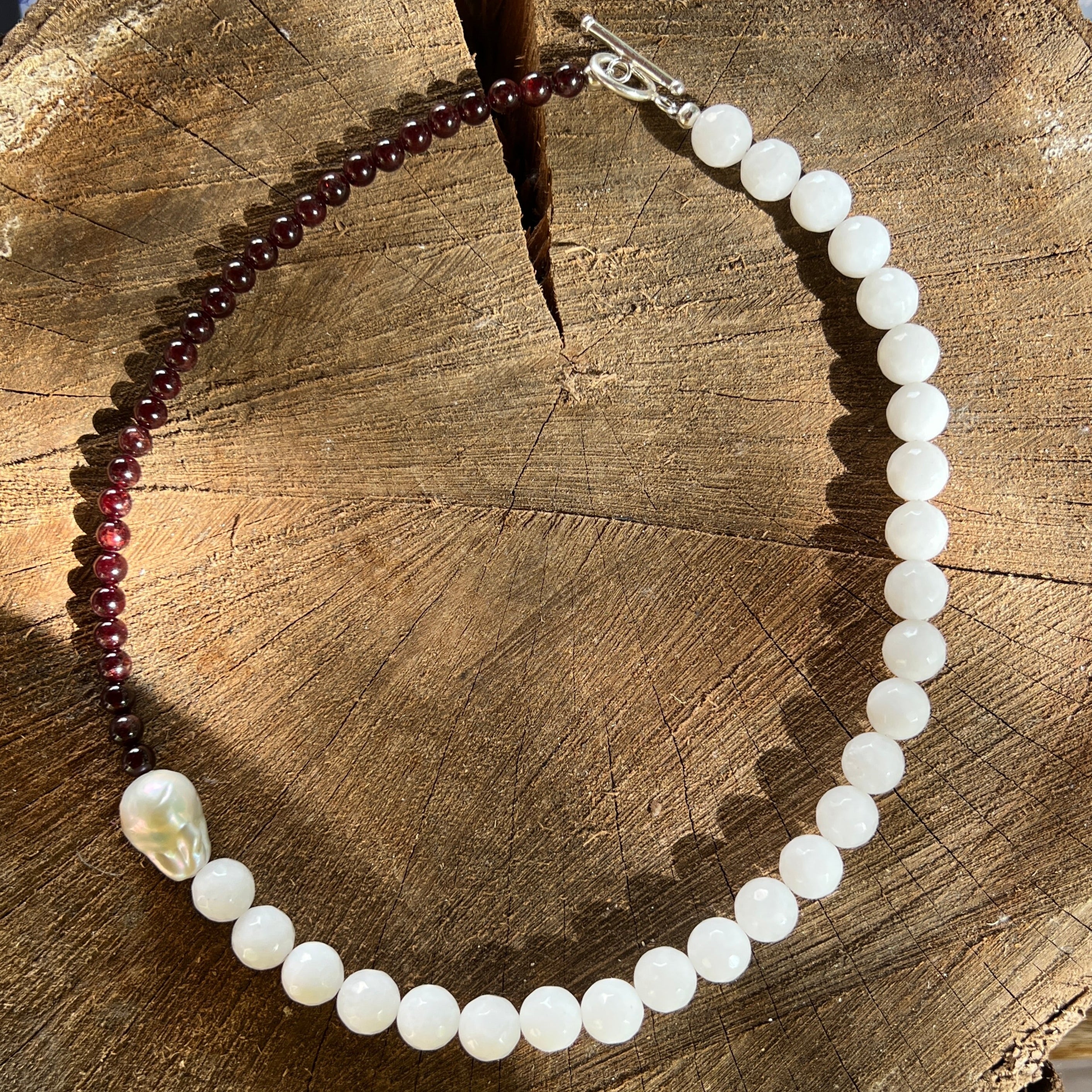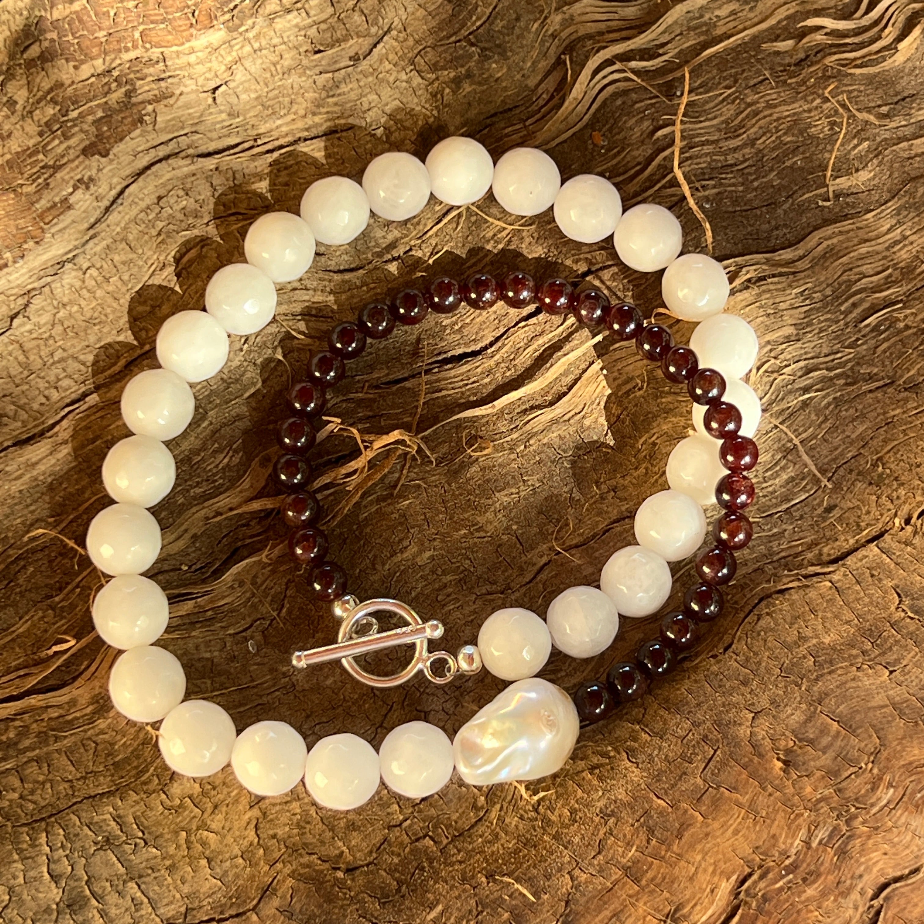 Ревюта – Гривна гранат и бял жад Rubia#9