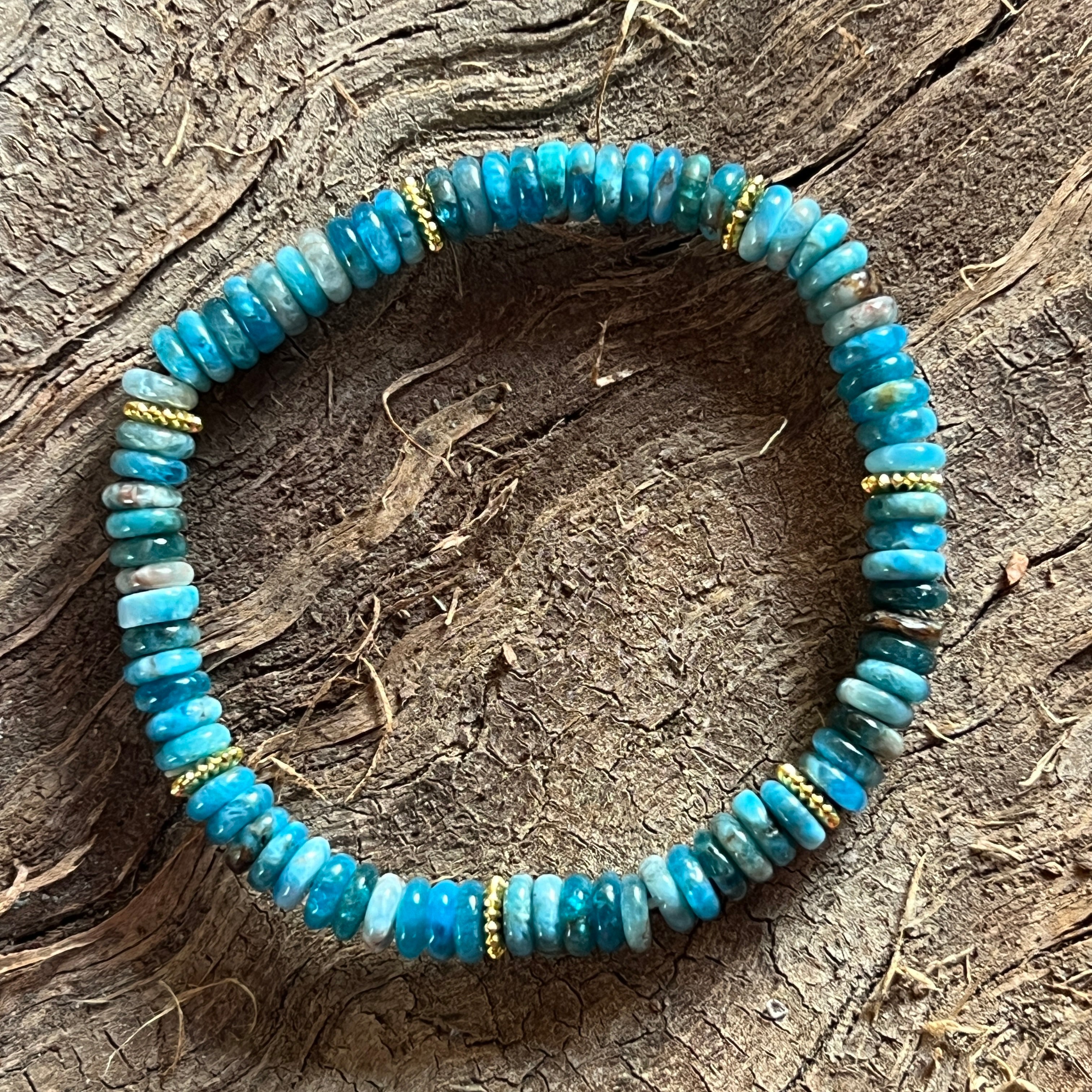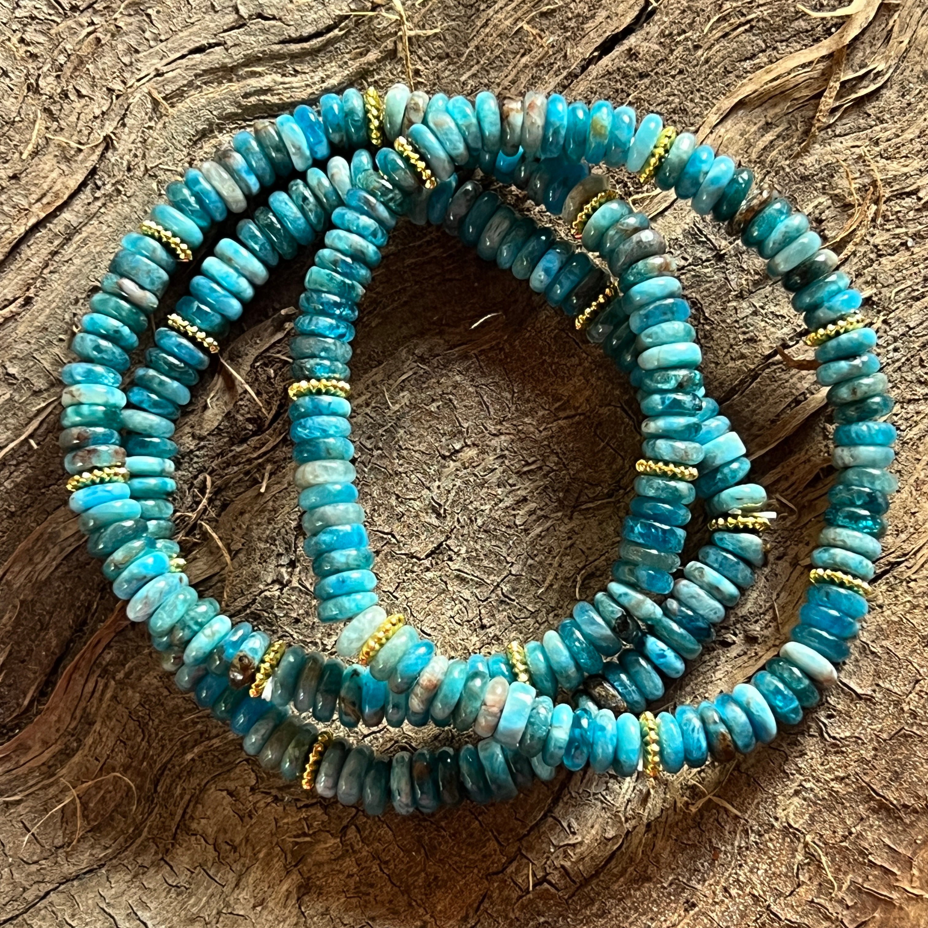 Descriere - Гривна дискути апатит с златисти вложки – 6x2 мм