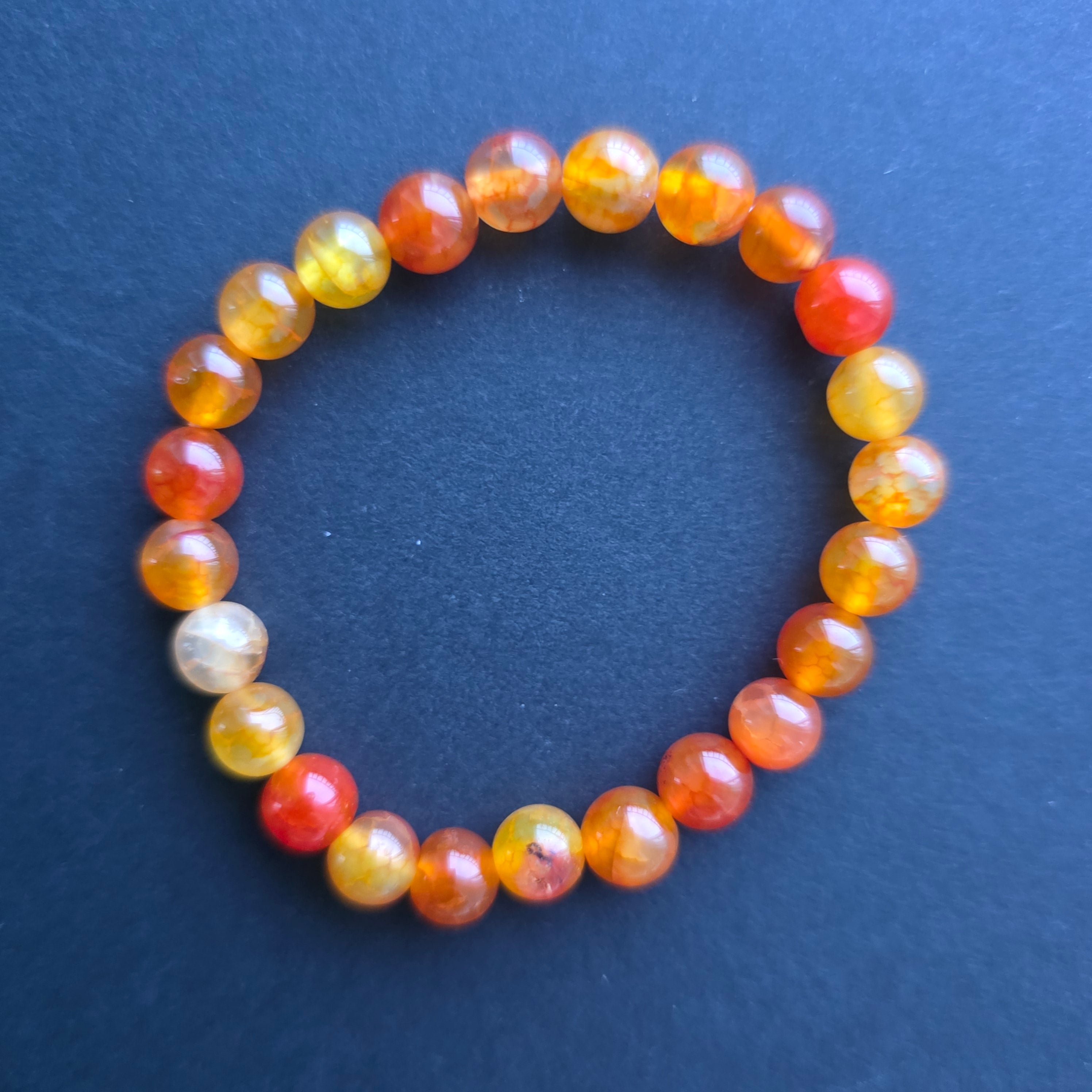• Камък: оранжев ахат (agate fire) – сферични мъниста 8–9 мм