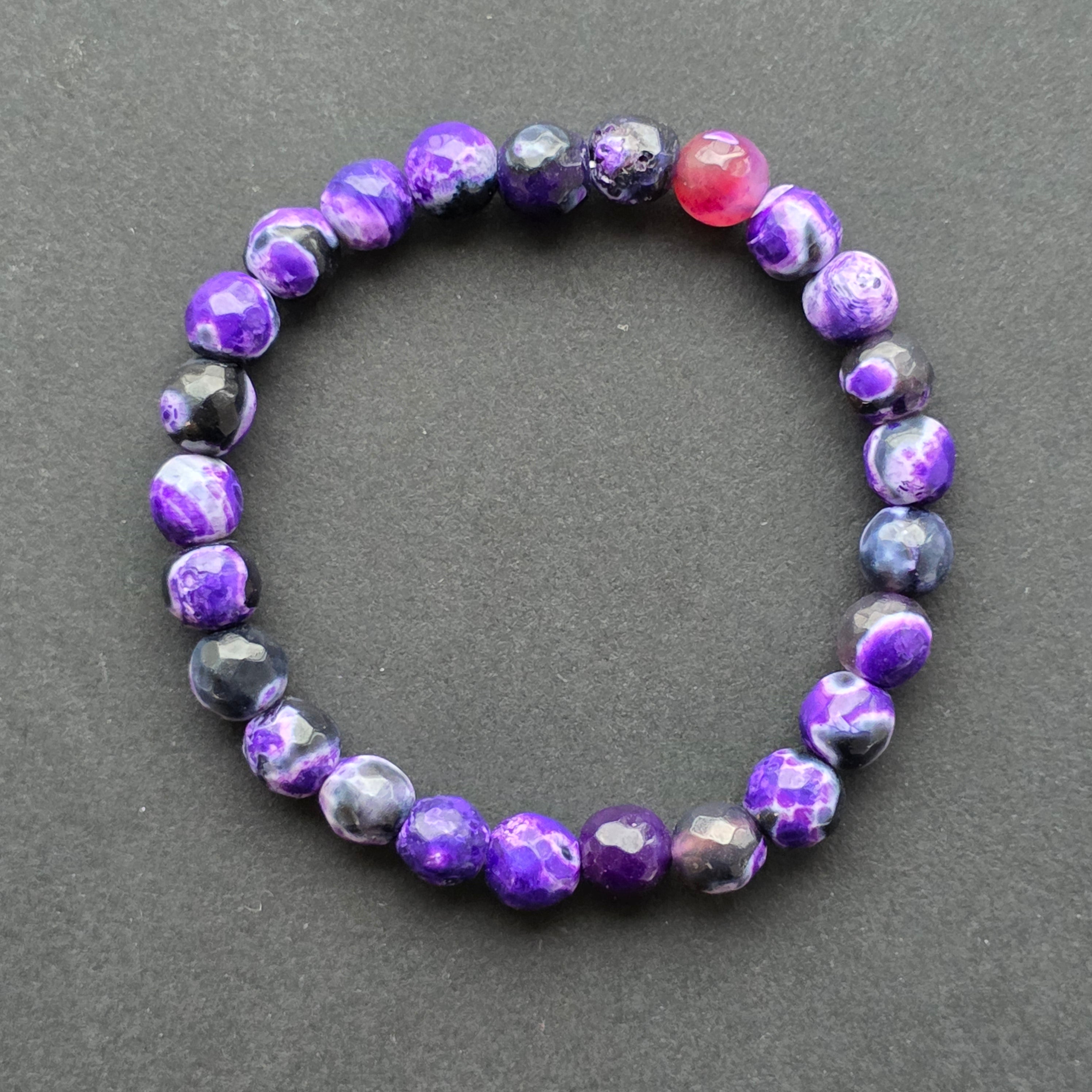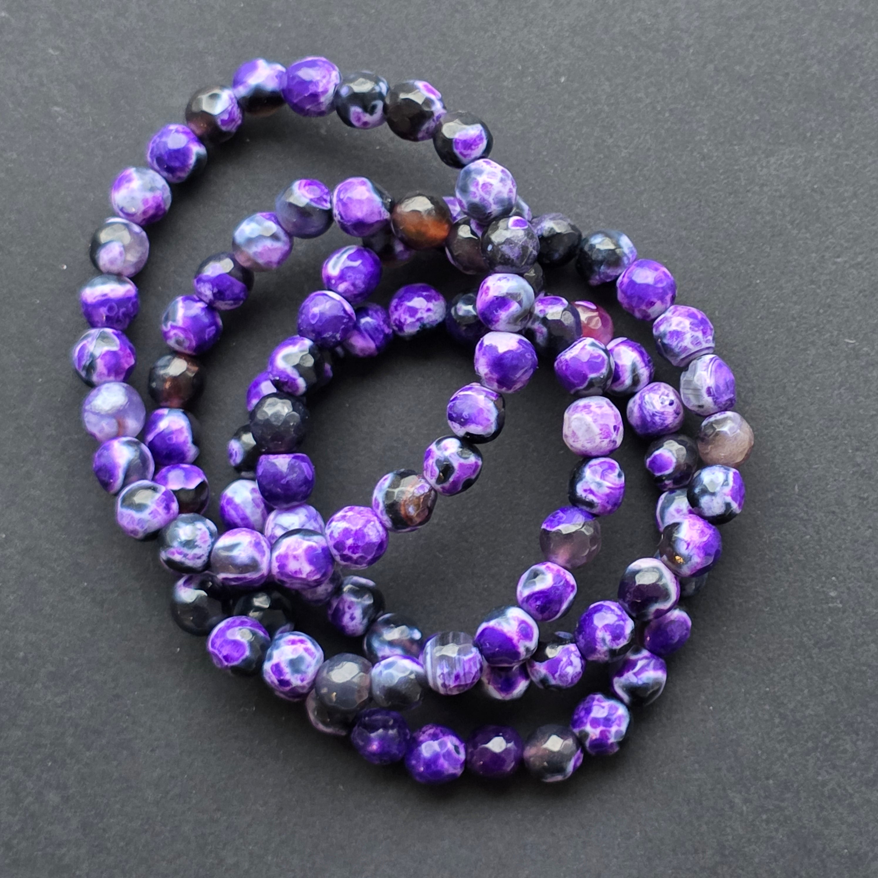 • Камък: лилав ахат (агатено огън, оцветен) – фасетирани сферични мъниста 6 мм