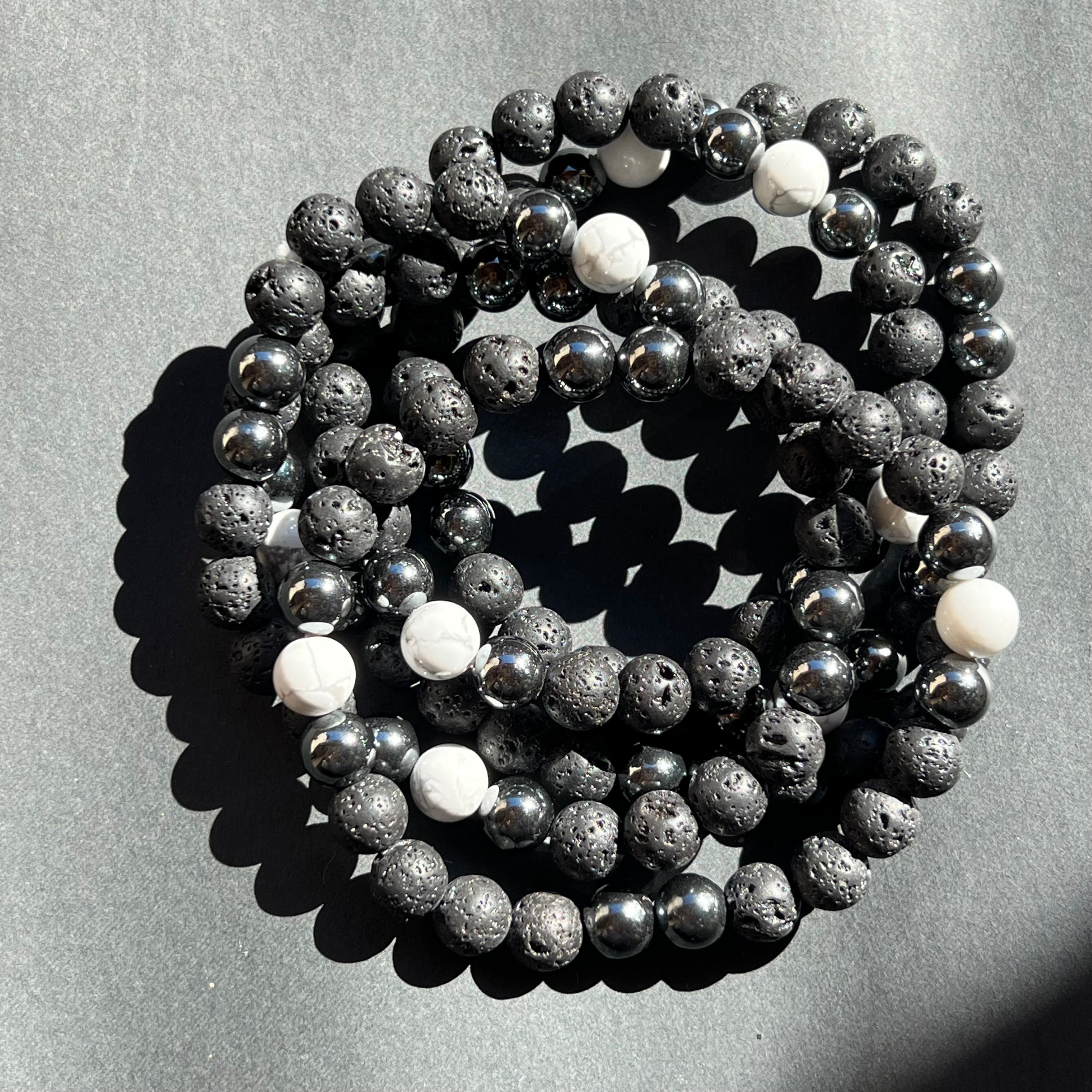 Гривна за мъже от лавови камъни с магнезит 8 мм