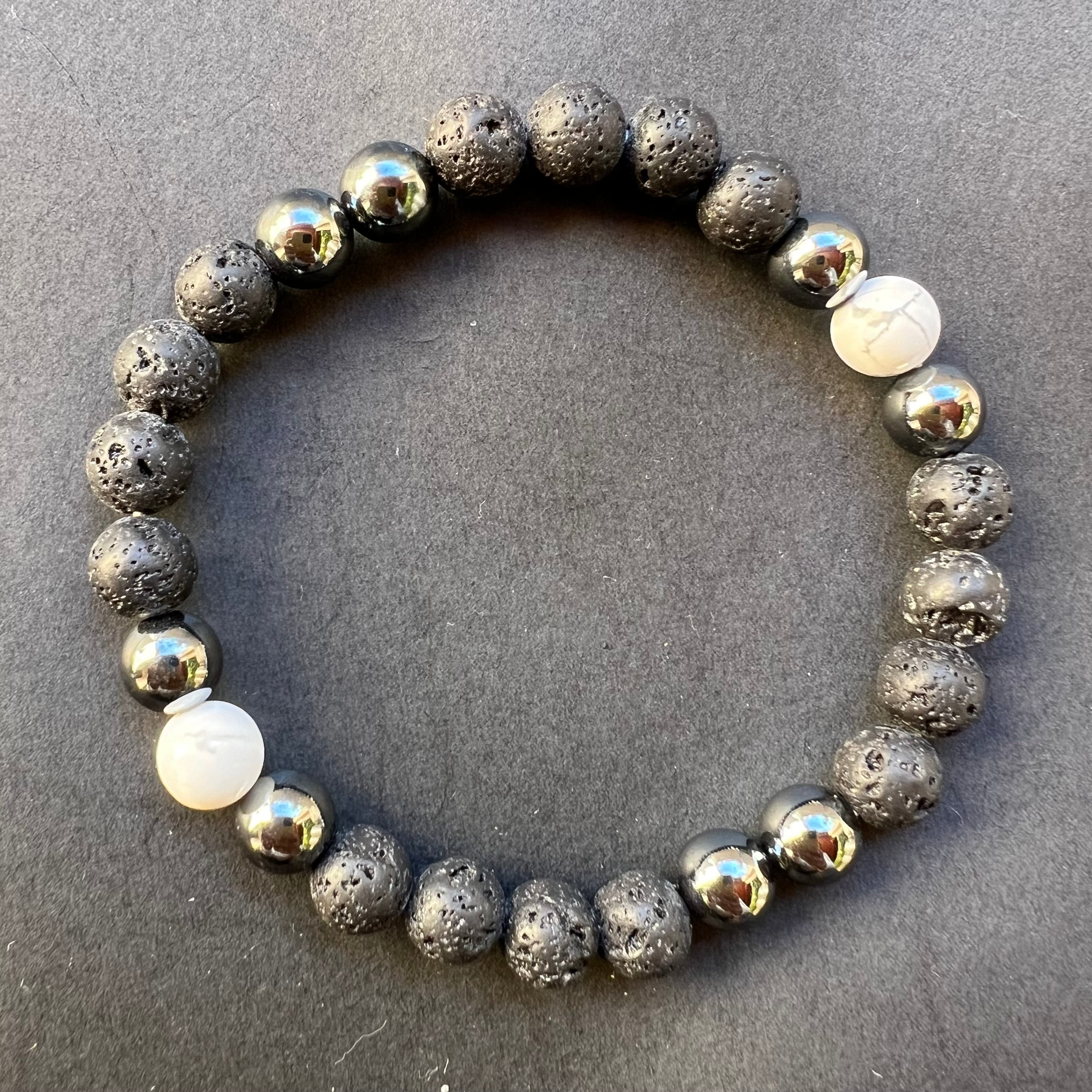 Descriere - Гривна за мъже от лавови камъни с магнезит 8 мм