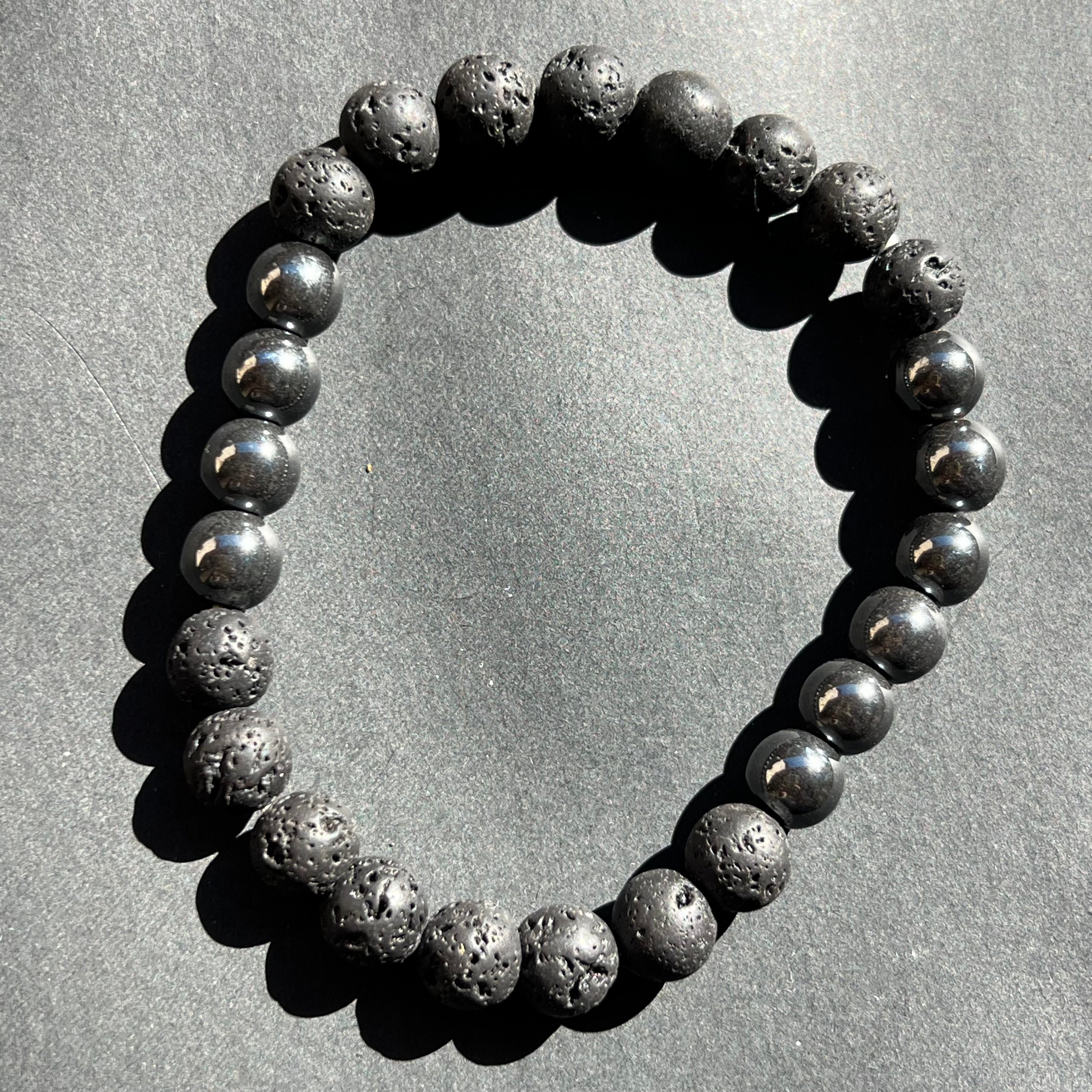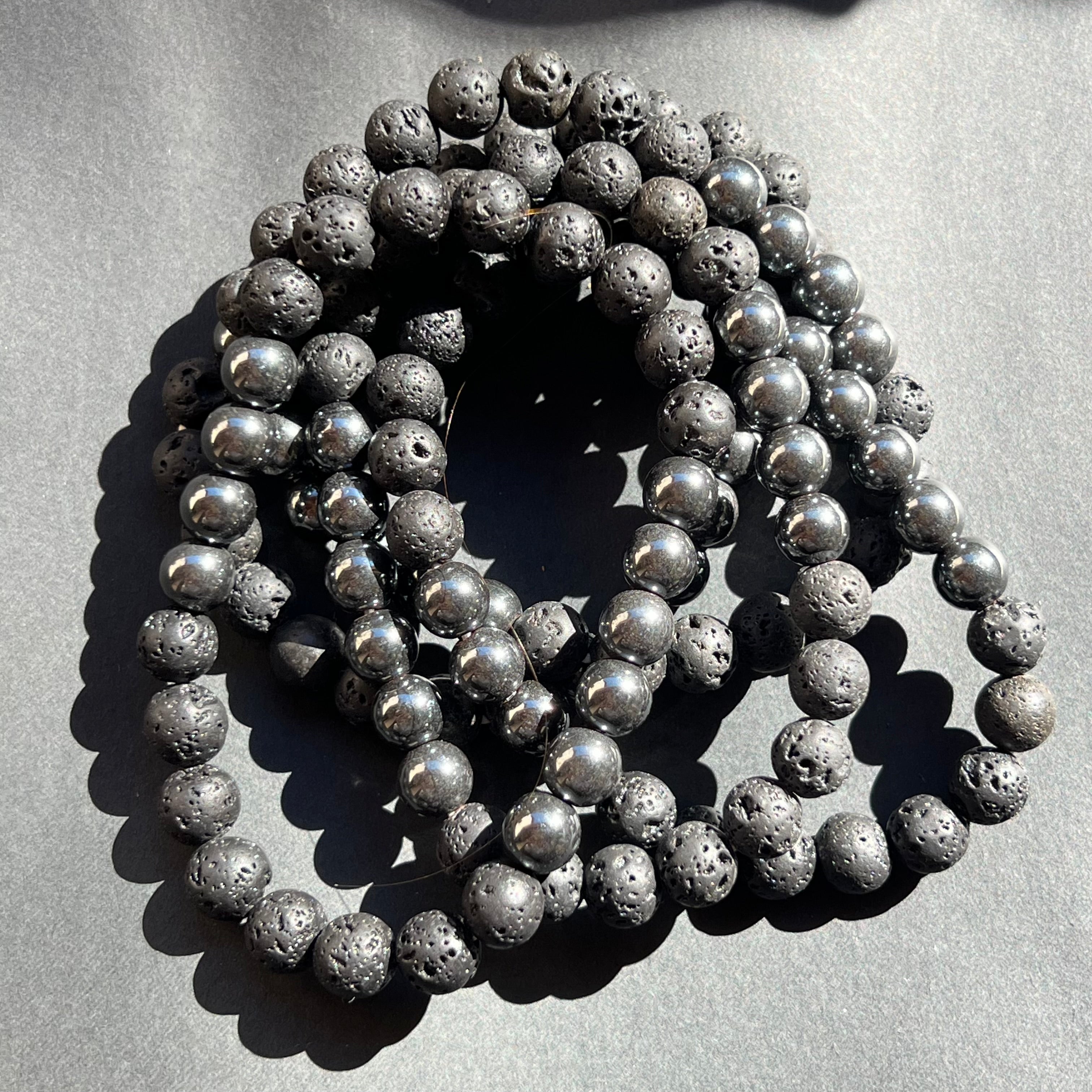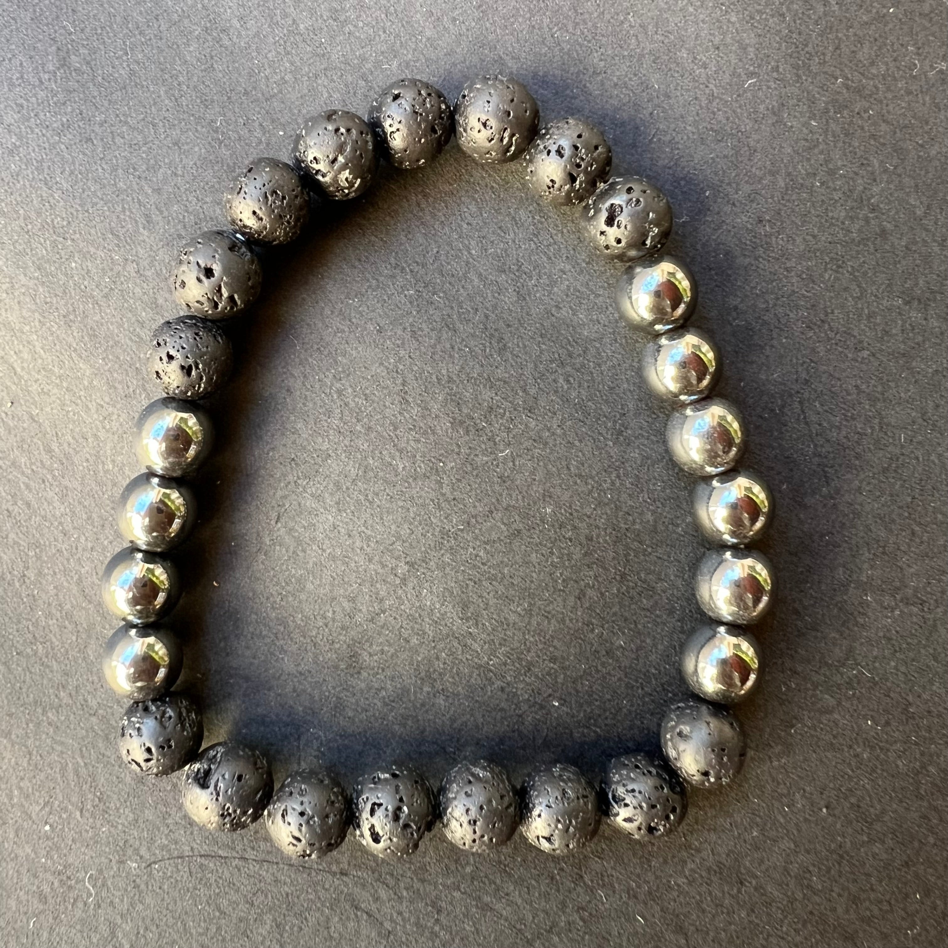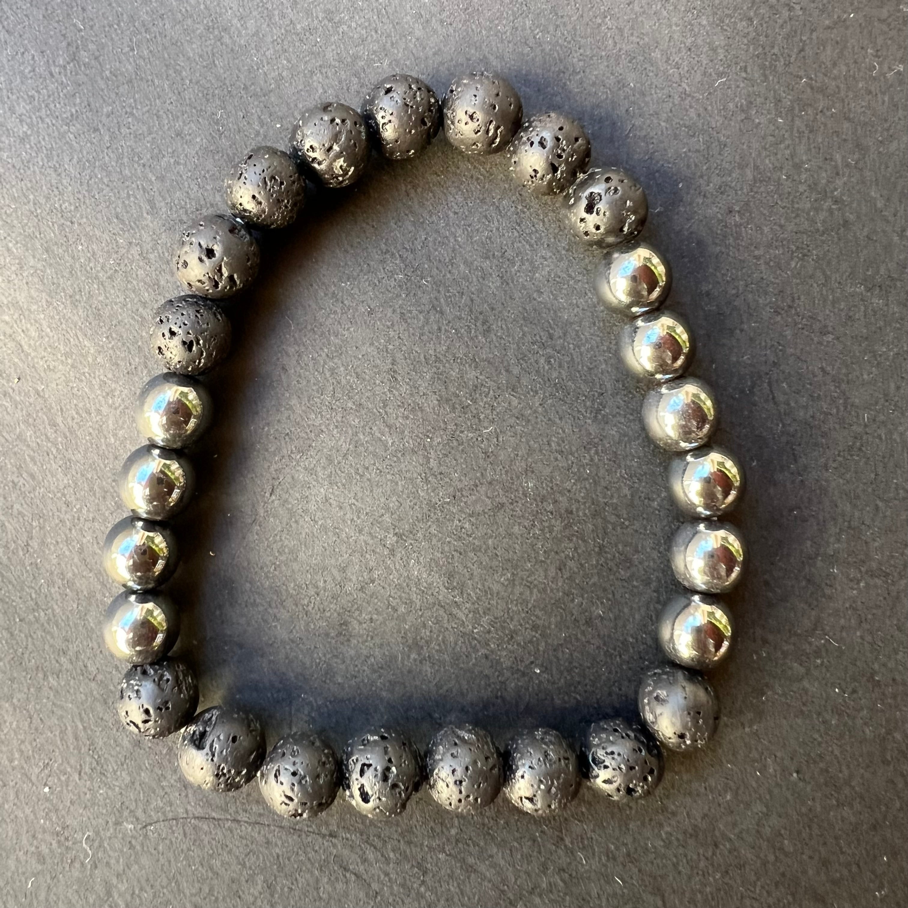 Descriere - Гривна за мъже от лавови камъни с хематит 8 мм