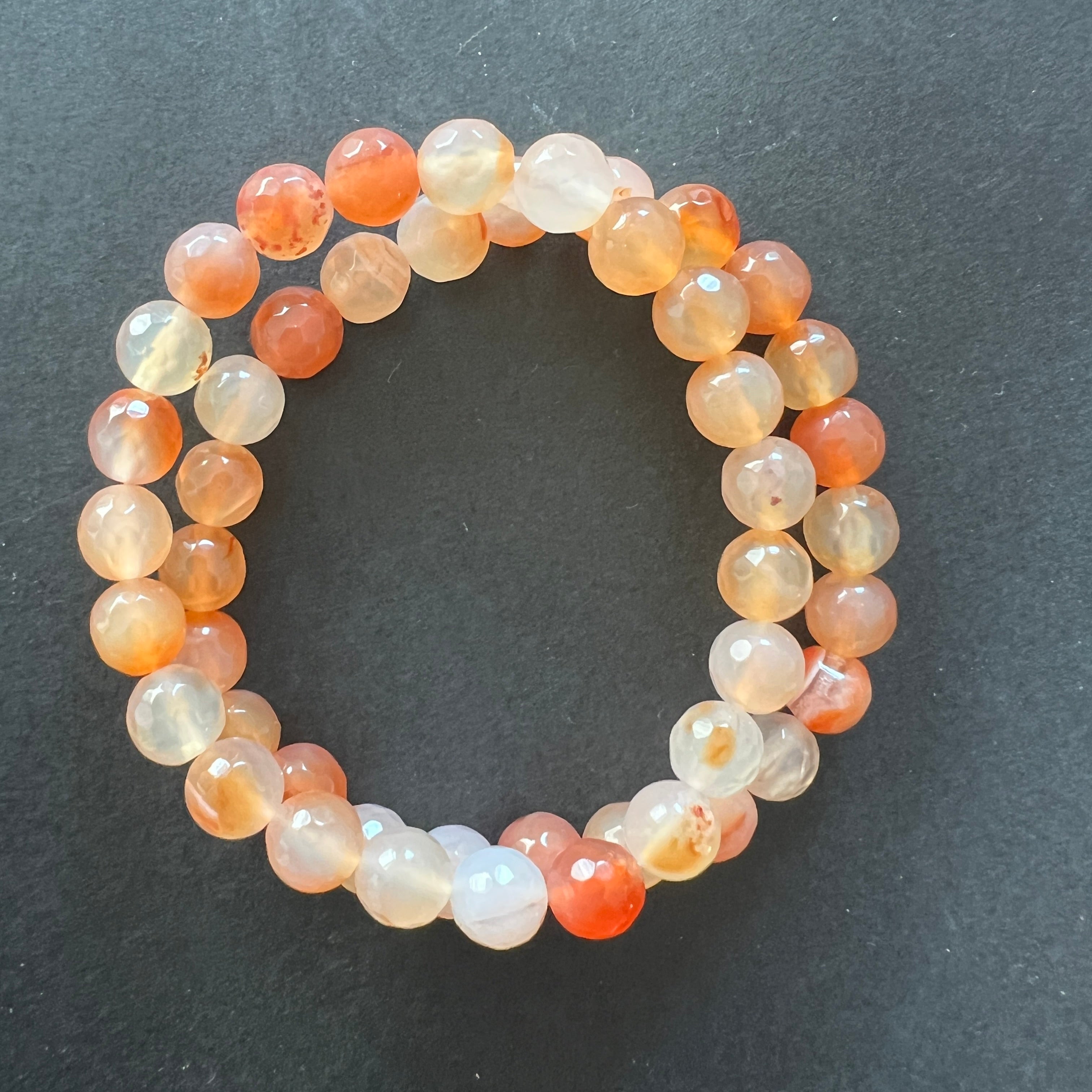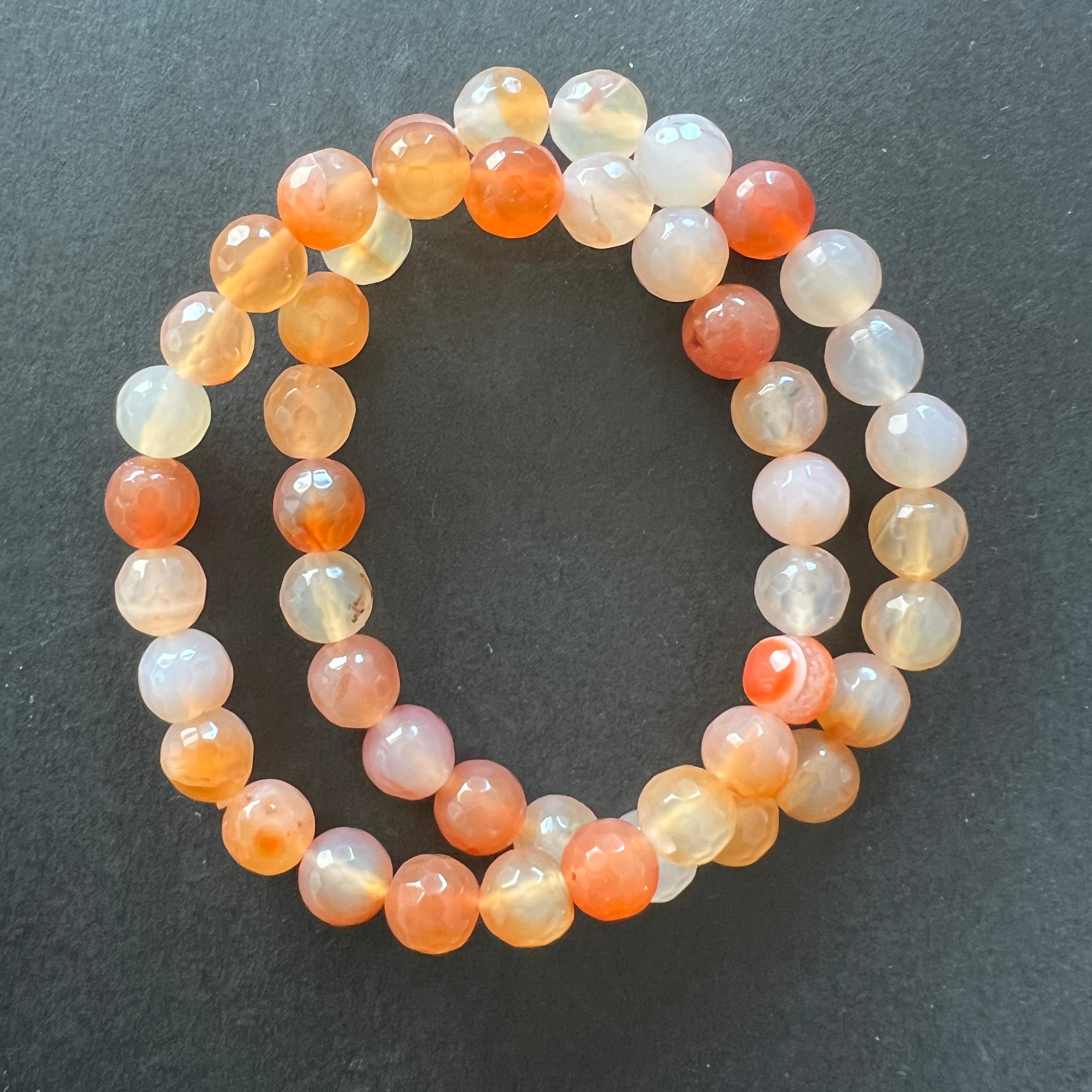 Гривна карнеол, фасетирани сфери 8 мм, дължина на гривната