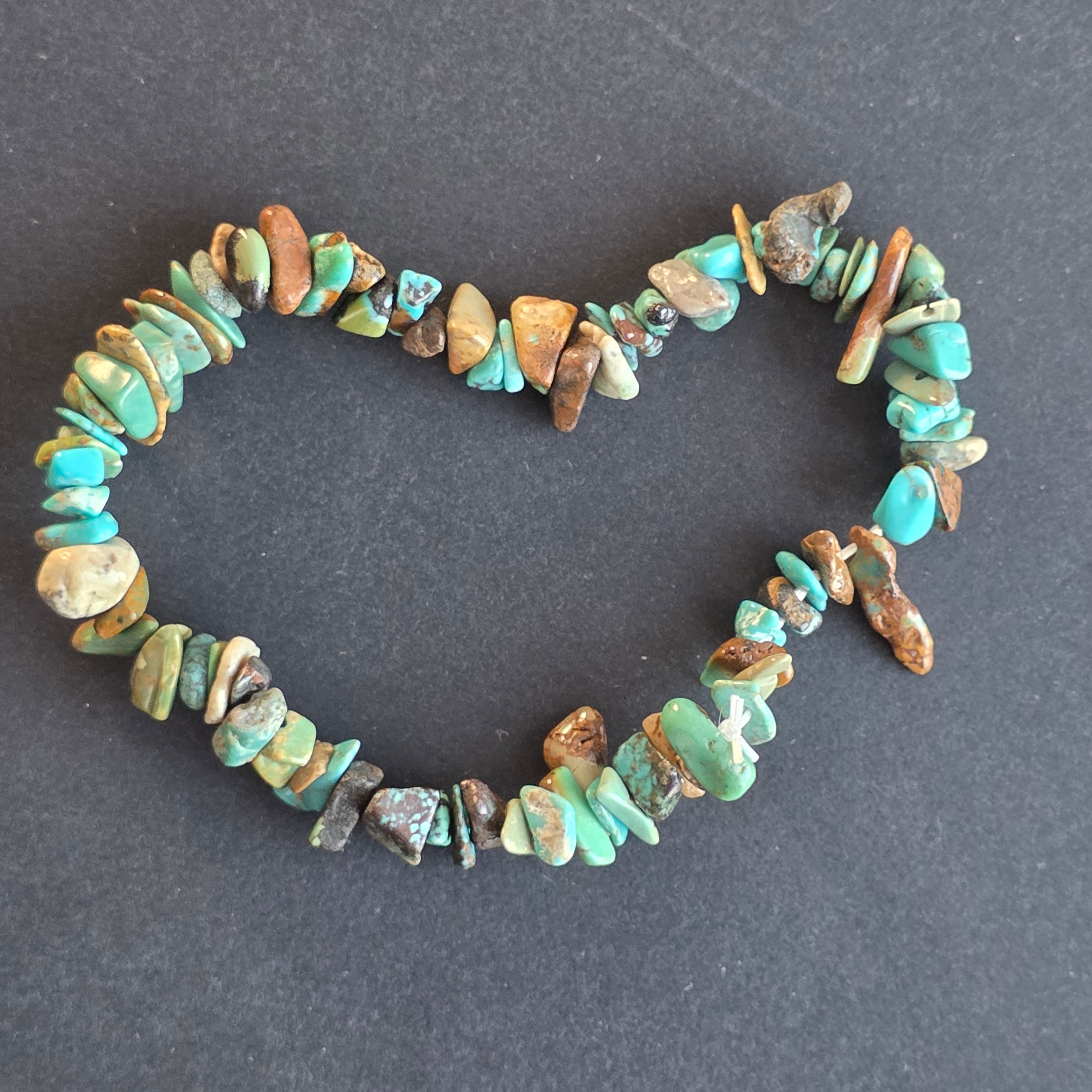 • Камък: африкански тюркоаз (African Turquoise) – неправилни чипсове, ръчно шлифовани