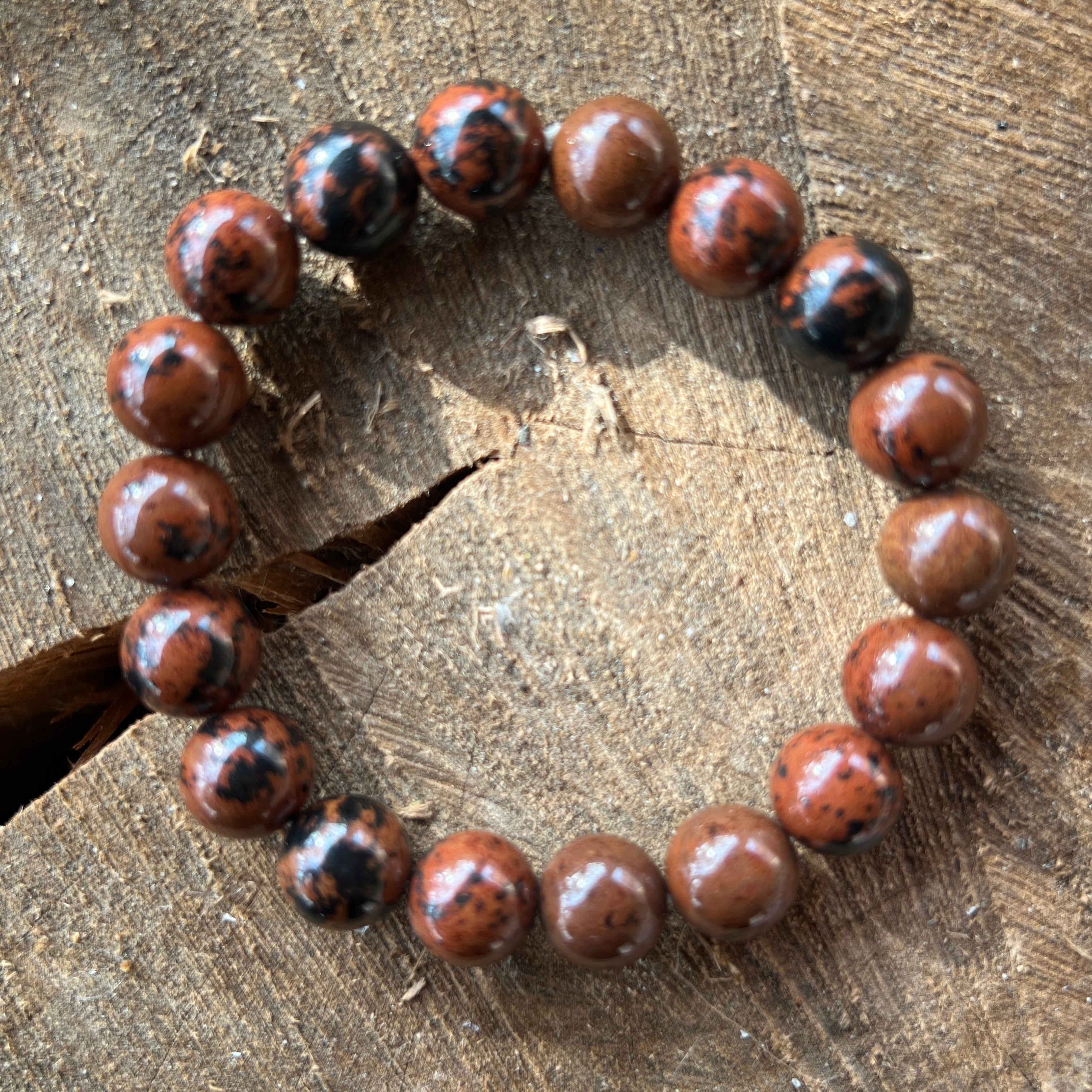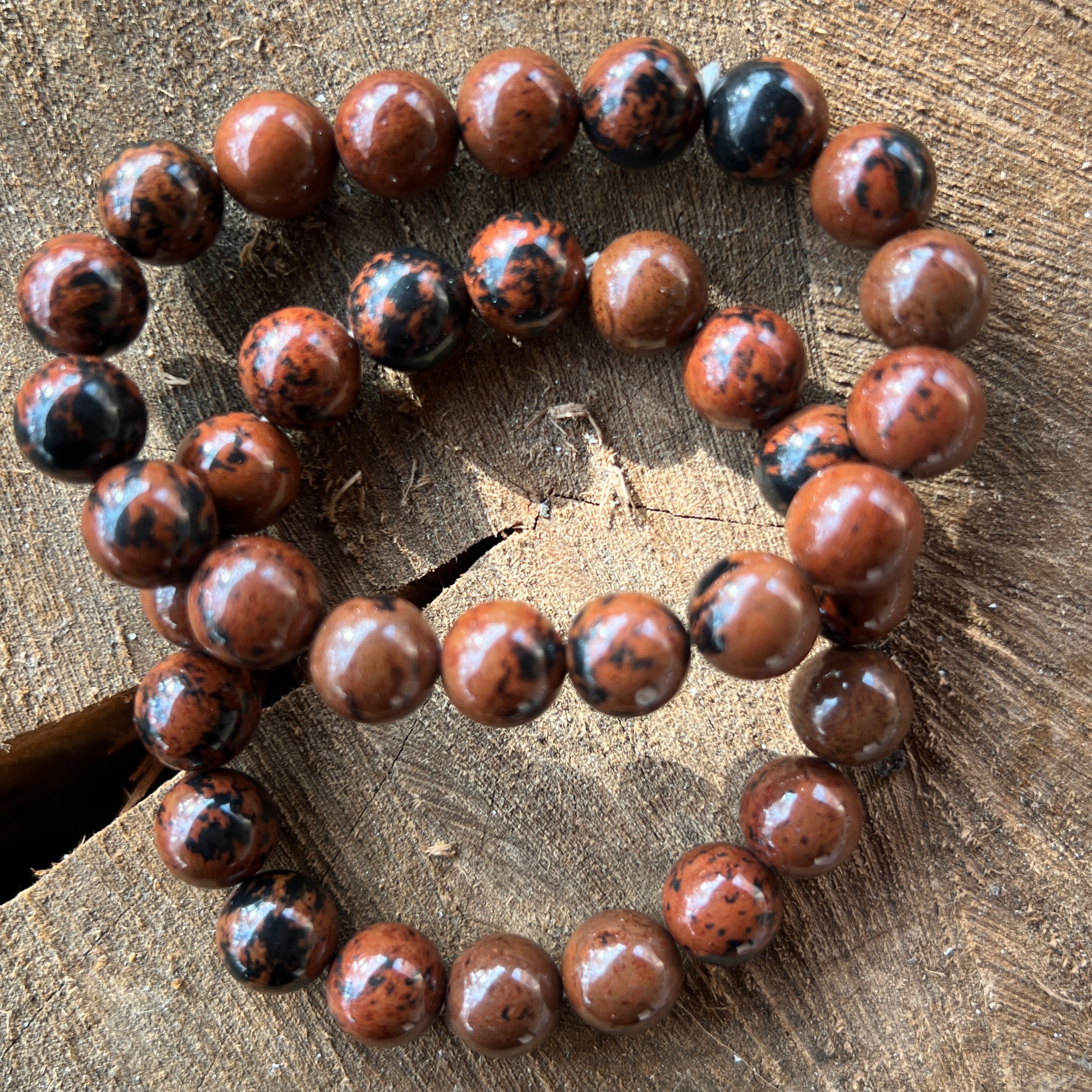 Махагоновият обсидиан се счита за камък, който активира трите долни чакри. Той стимулира креативността, страстта, сексуалността, като също така има защитна функция.