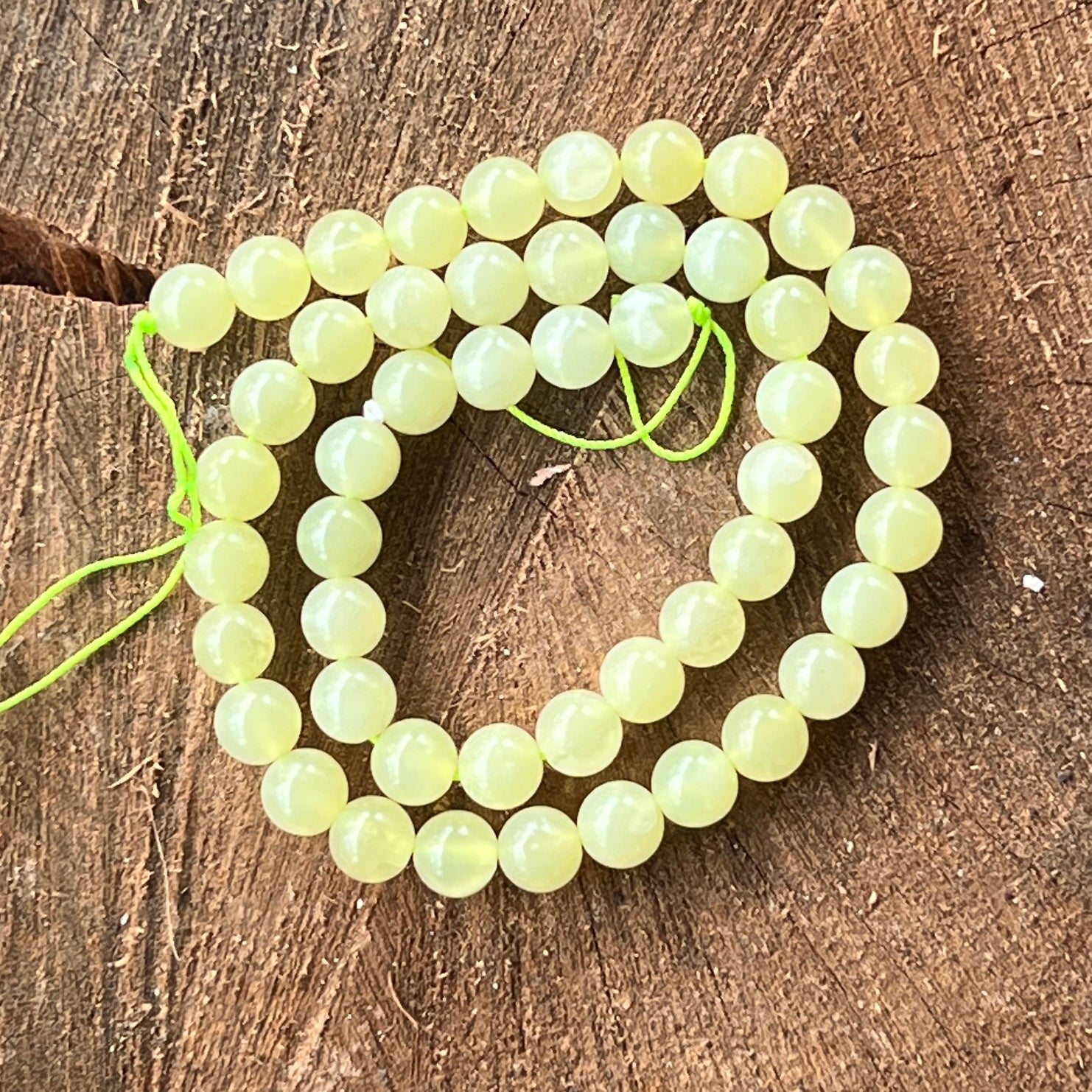 Наниз от ЗЕЛЕН ЯСПИС "NEW JADE",съставен от естествени сферични мъниста,идеален за колиета, гривни или други ръчно изработени бижута.