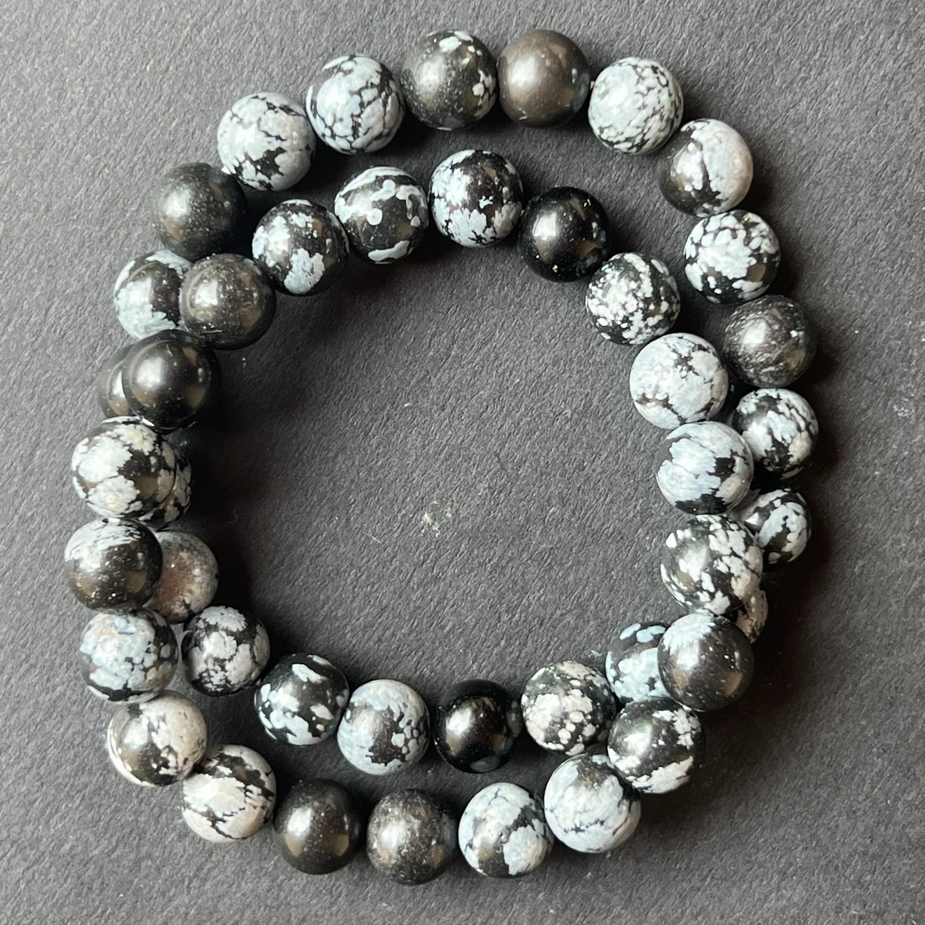 Descriere - Гривна от обсидиан снежинка 8 мм
