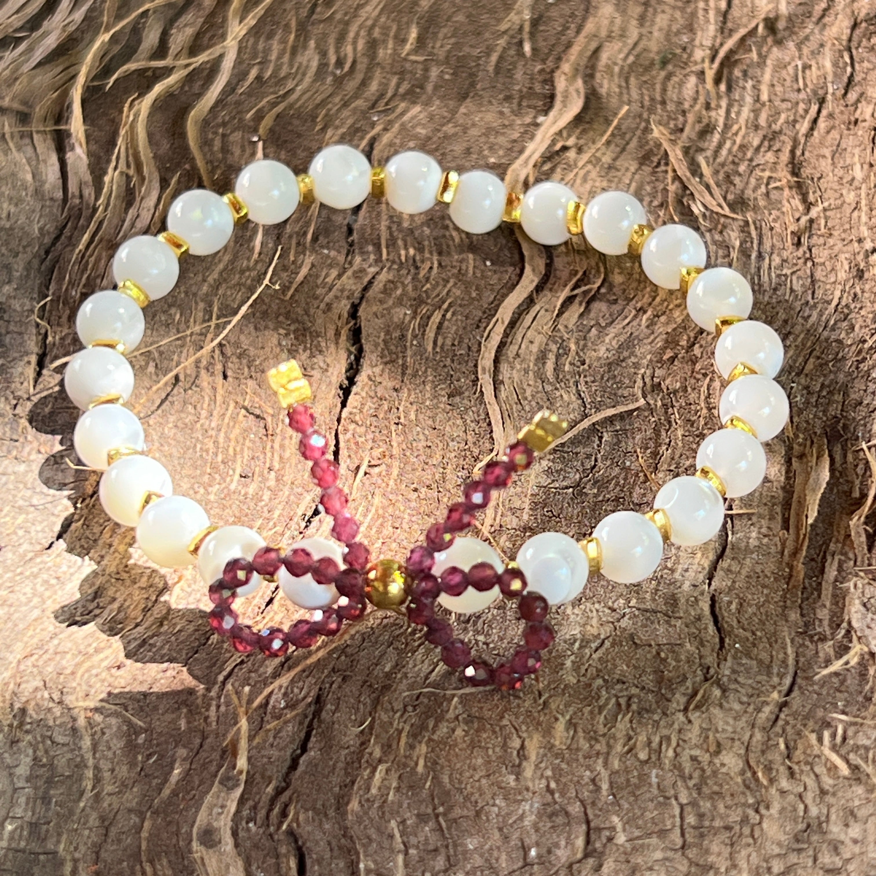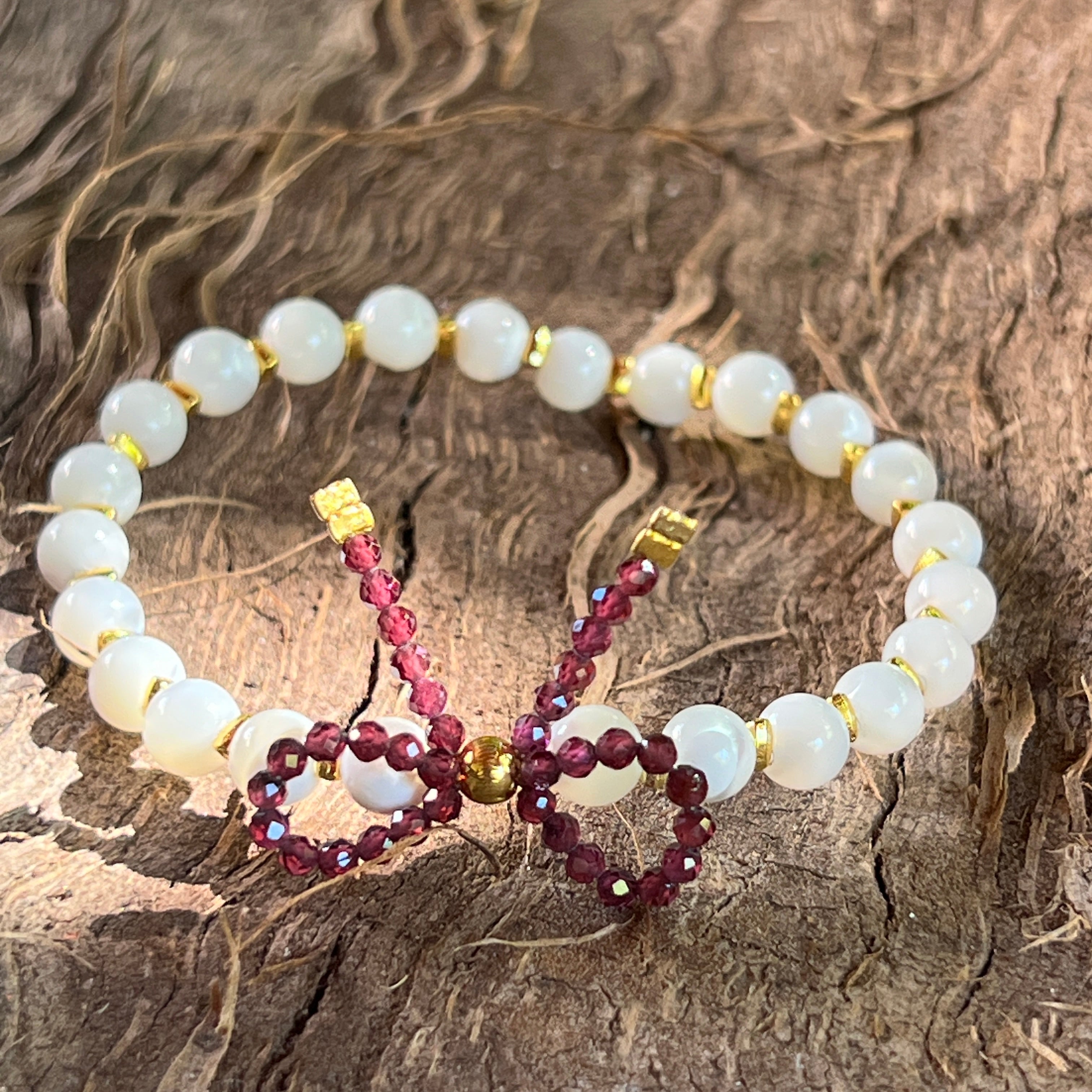 Descriere - Гривна от перла с декоративен гранатов възел – 6 мм сферични мъниста