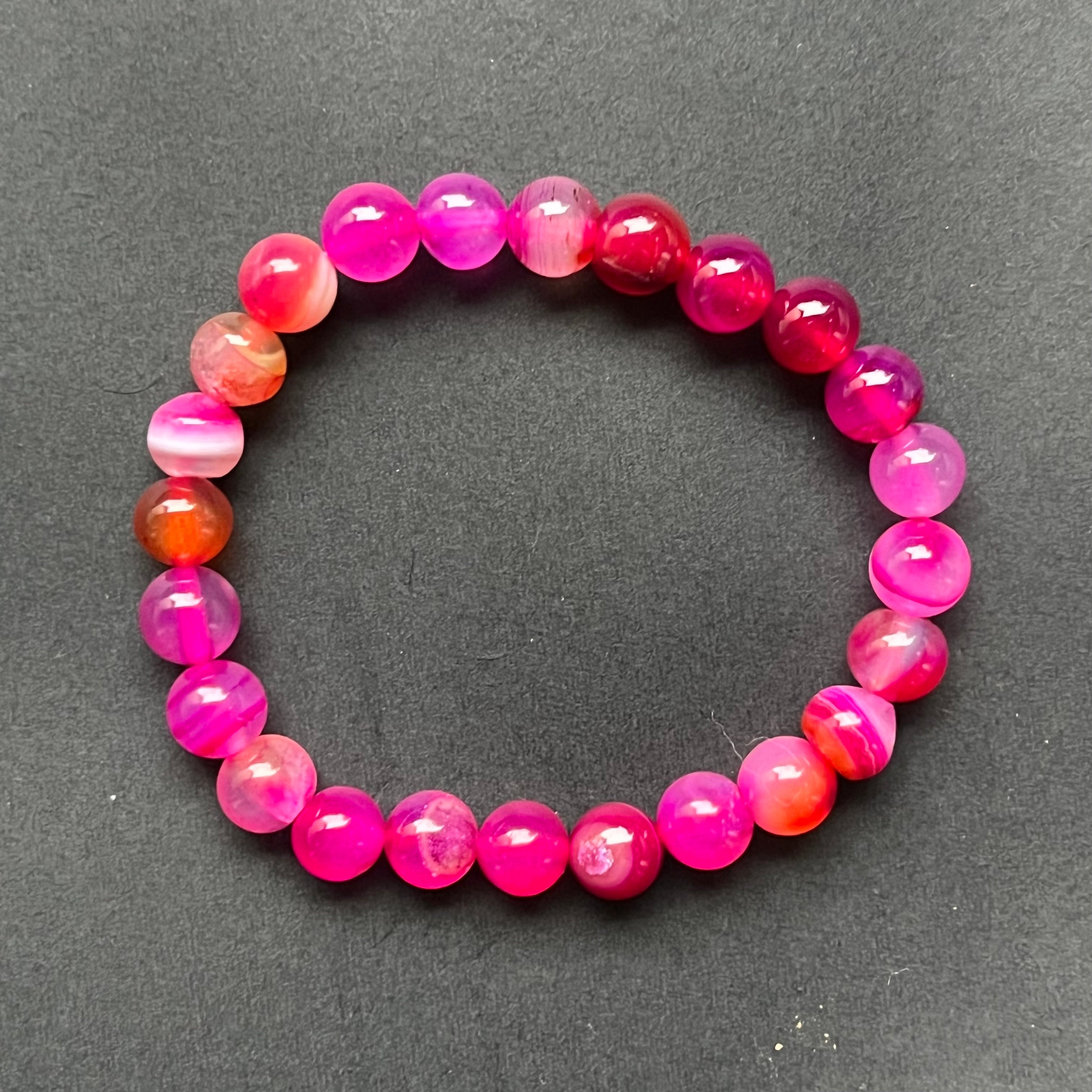 Розовият ахат е основно свързан с чакрата на сърцето. Казва се, че този полускъпоценен камък е полезен за отваряне и балансиране на чакрата на сърцето, като подпомага стимулирането на любовта към себе си, състраданието и емоционалния баланс. Може да се използва за хармонизиране и балансиране на енергията в тази област на енергийното тяло.