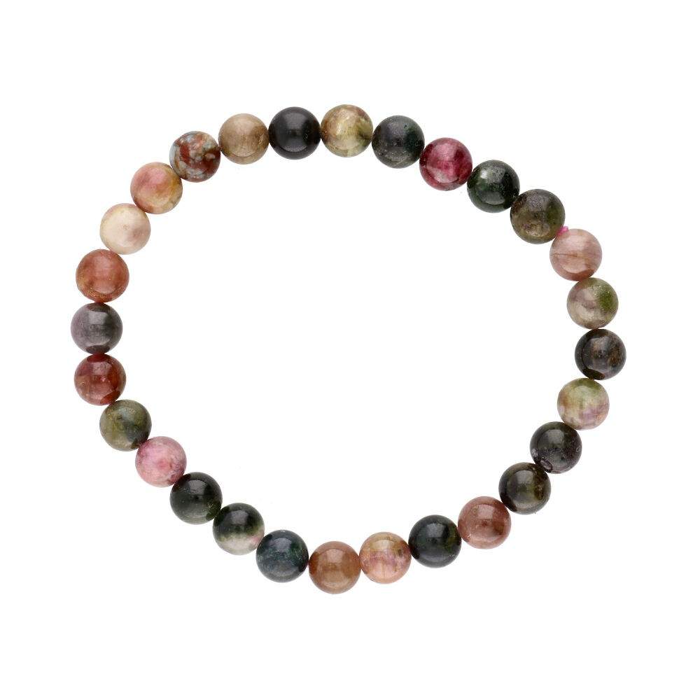 Гривната от смесен турмалин събира палитра от естествени цветове – от розово и зелено до интензивно черно, като всяко мънисто носи своята уникална енергия.