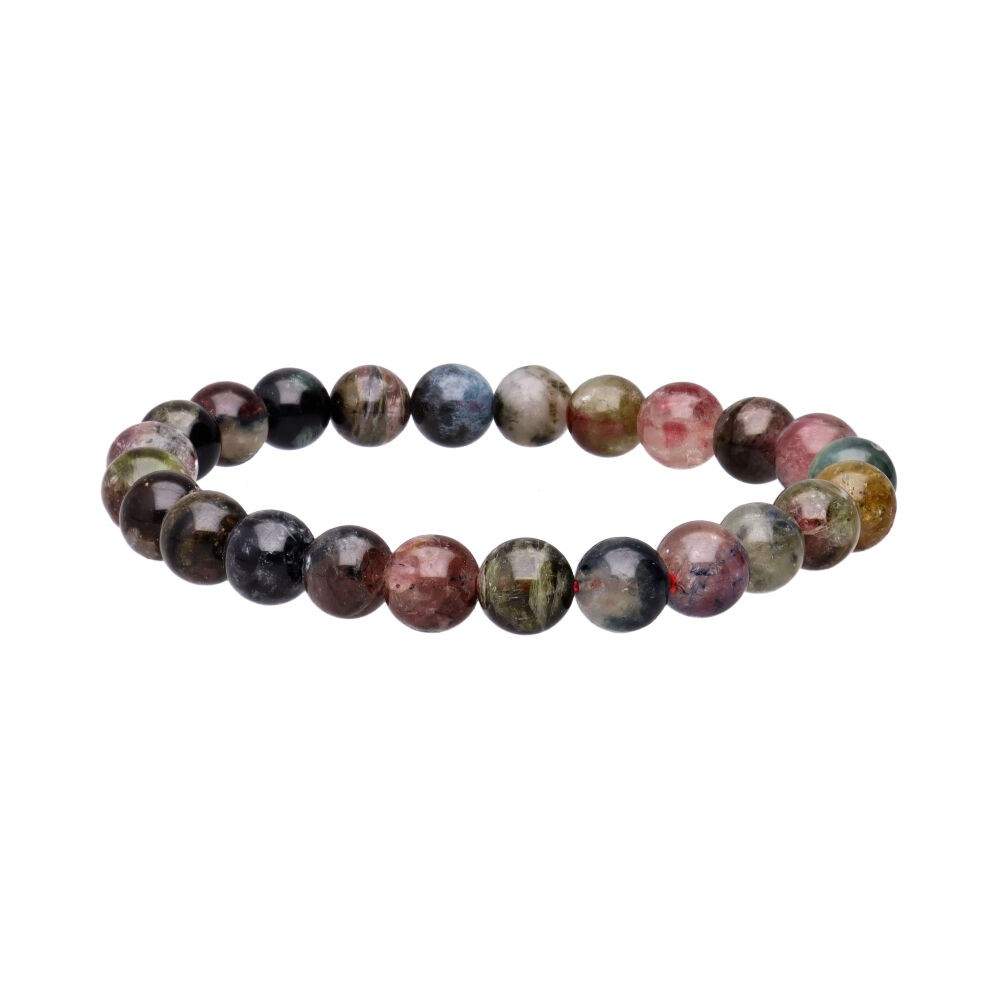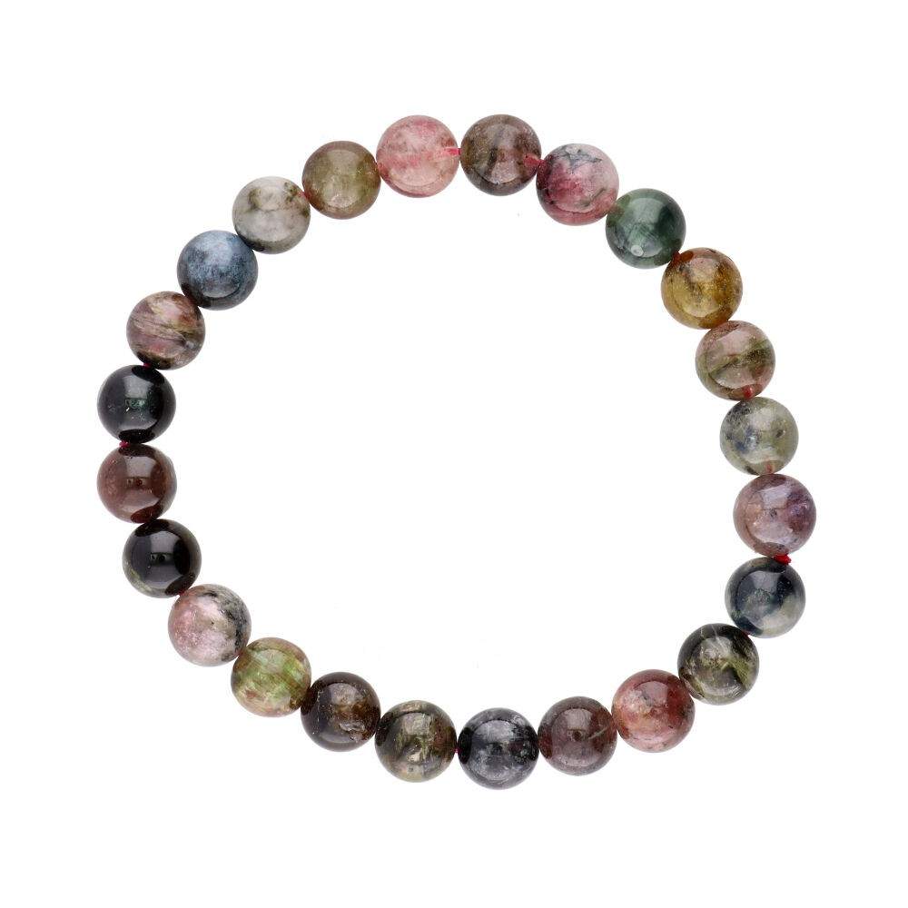 Гривната от смесен турмалин събира палитра от естествени цветове – от розово и зелено до интензивно черно, като всяко мънисто носи своята уникална енергия.