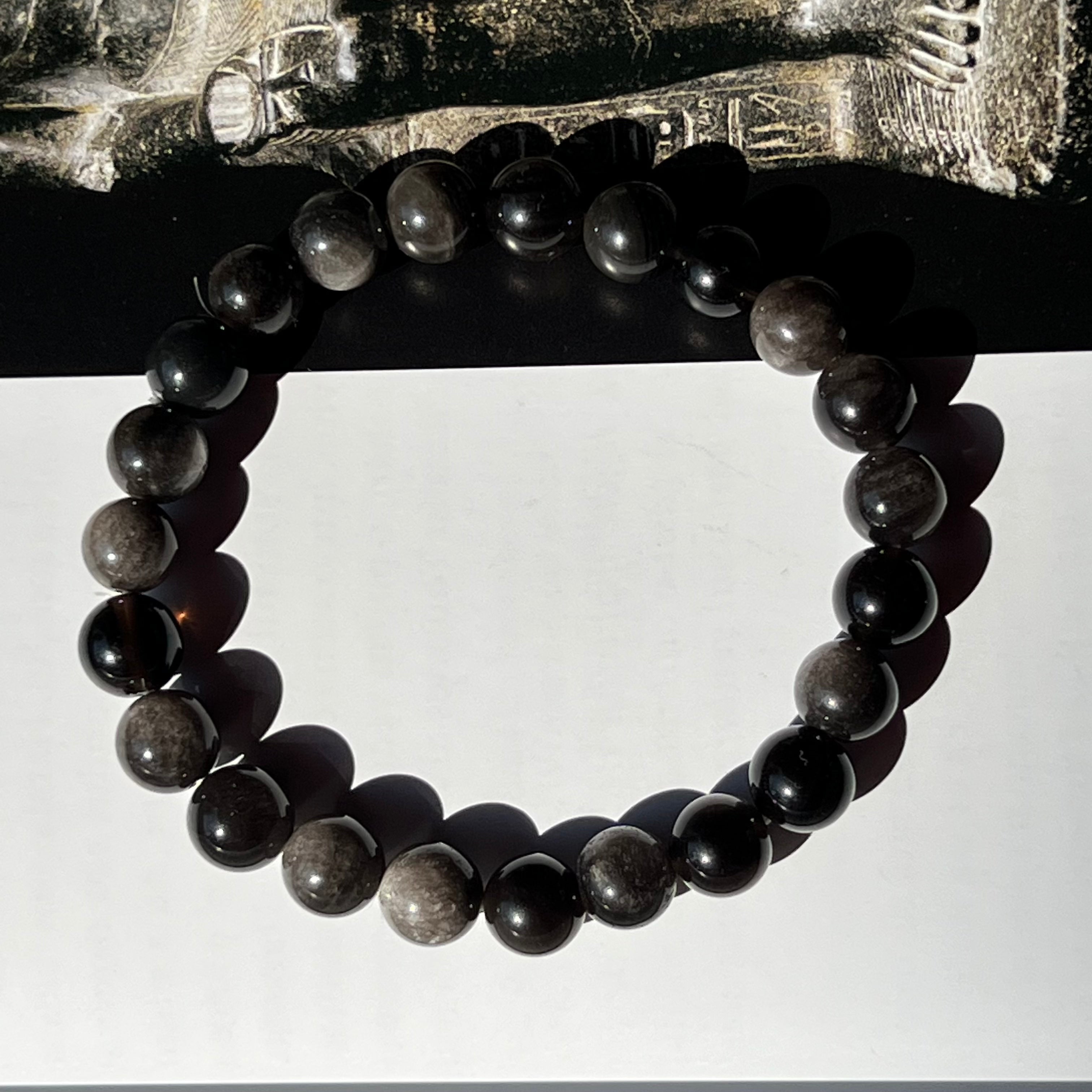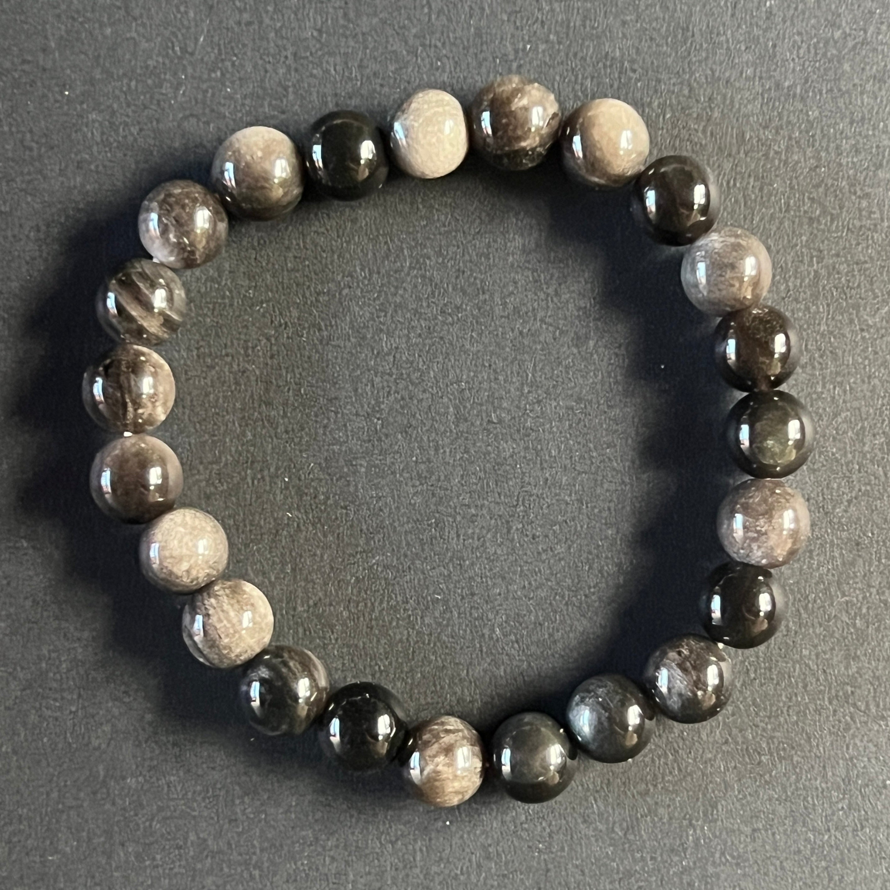 Отзиви - Гривна от сребърен дъговиден обсидиан 8 мм