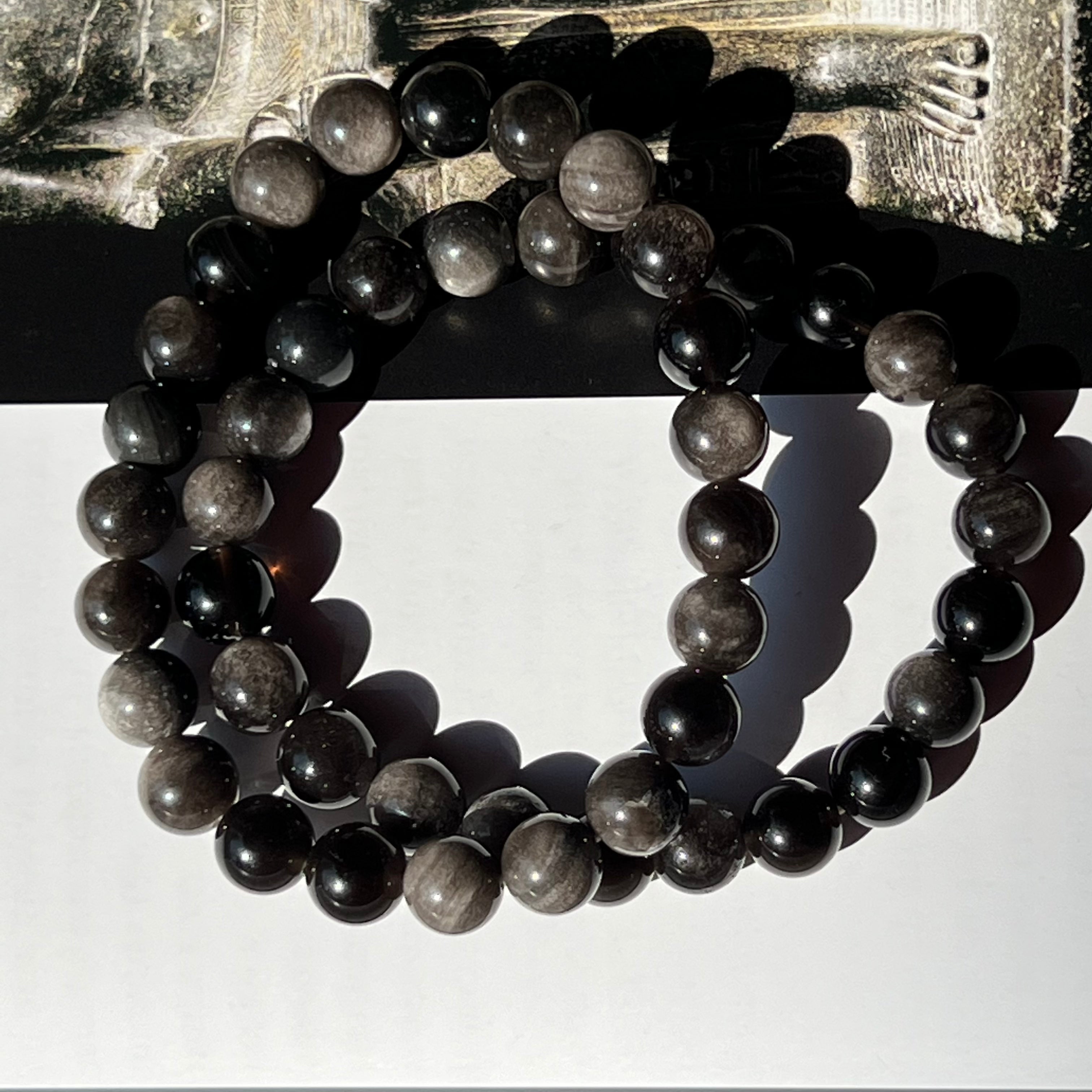 Гривна от дъговиден обсидиан 8 мм