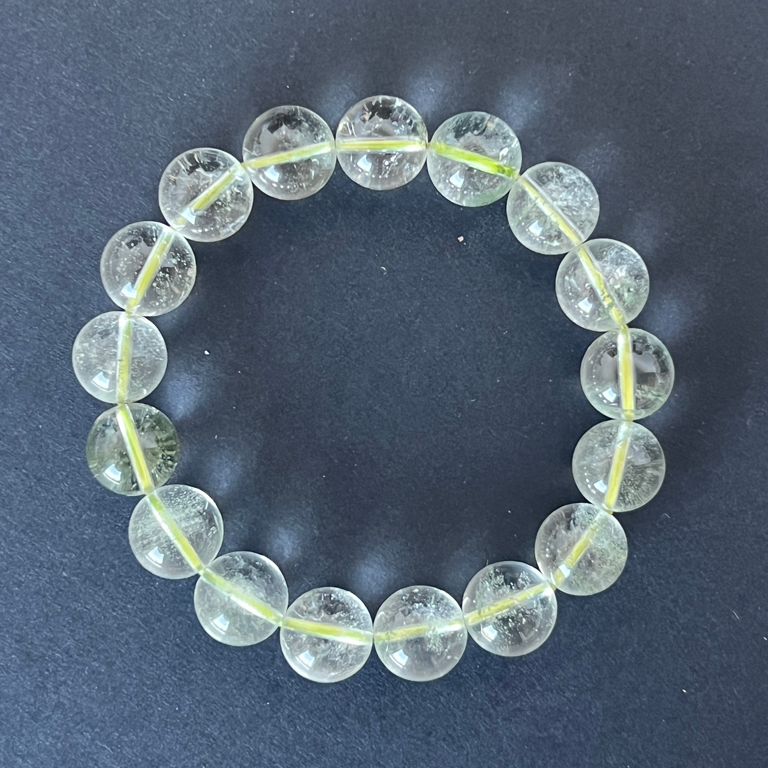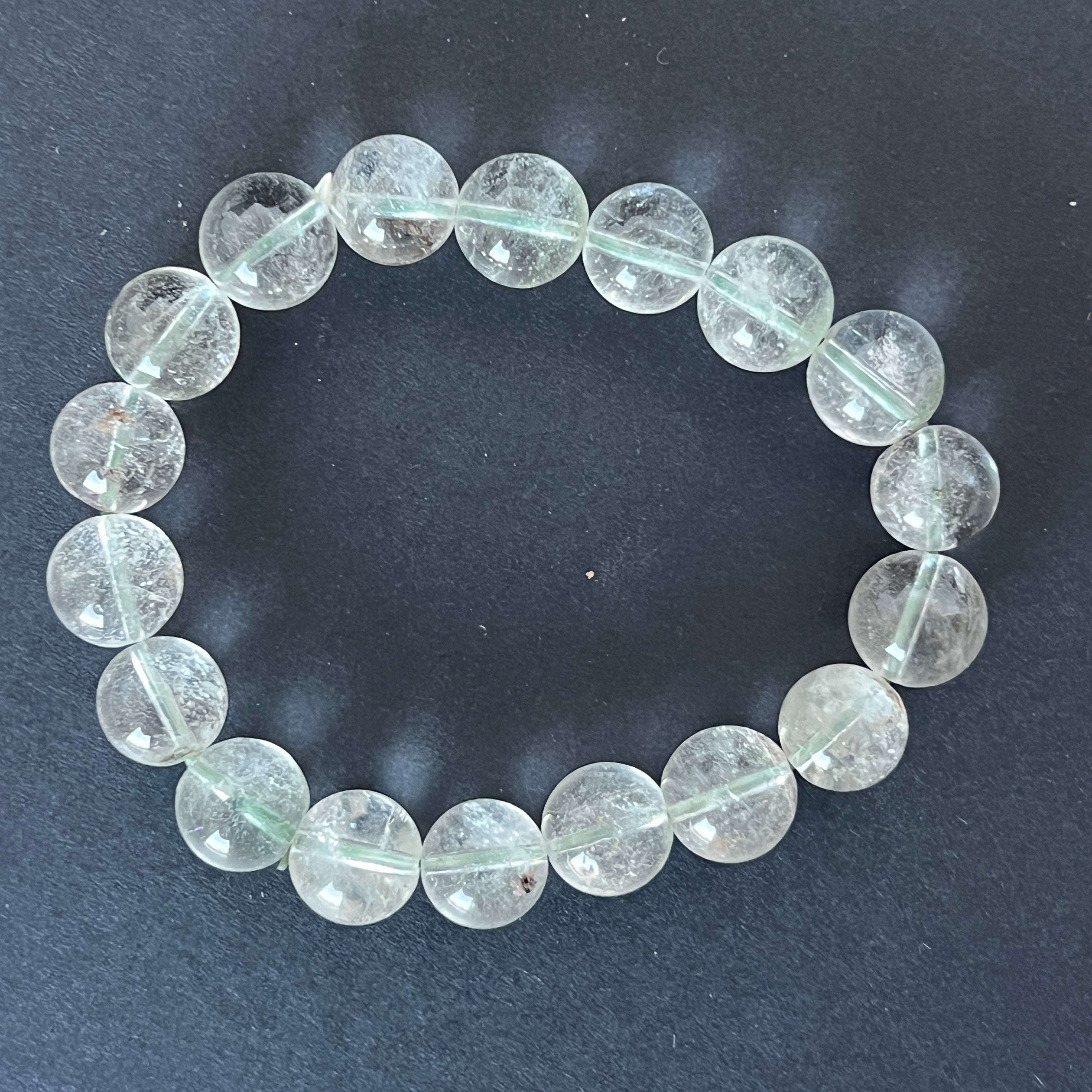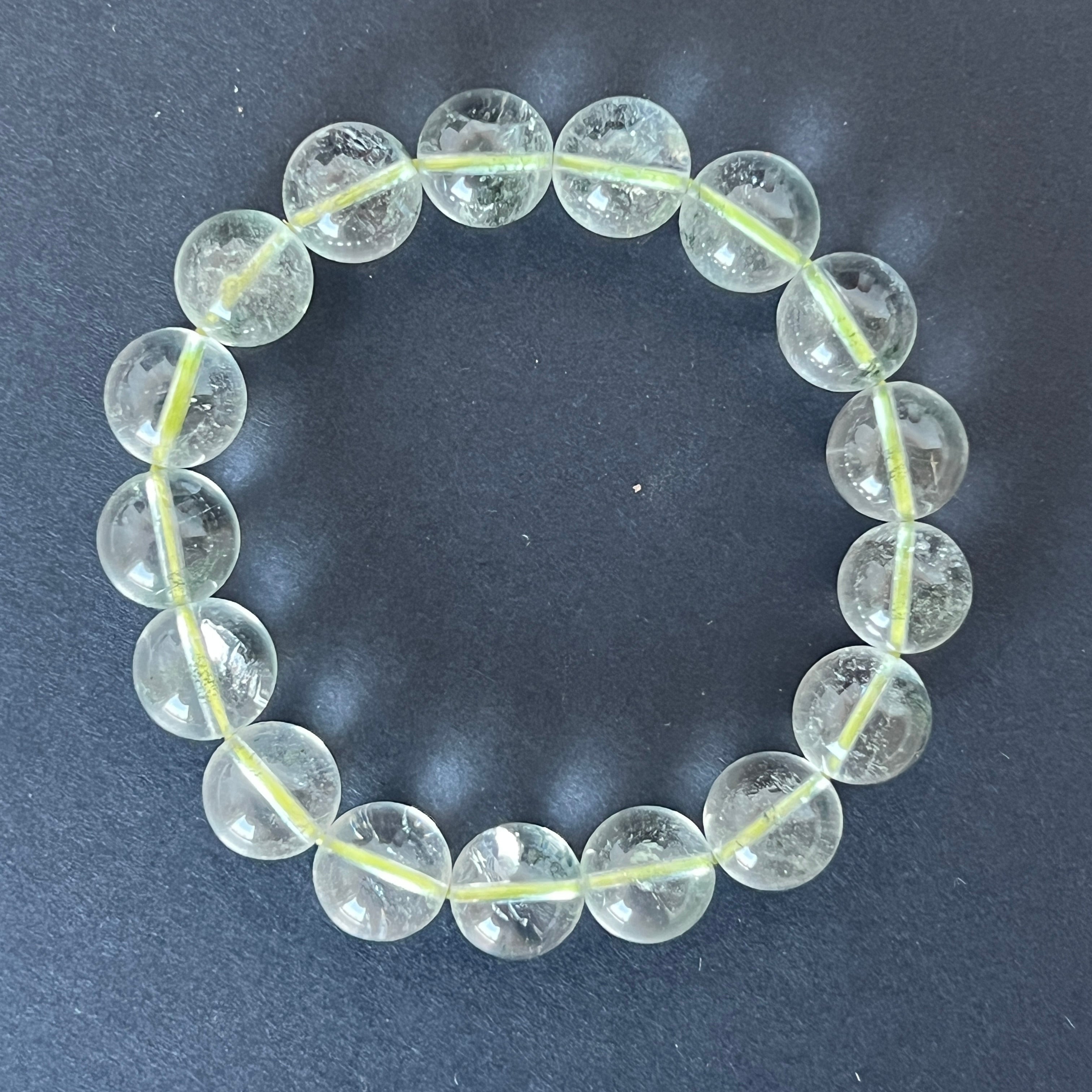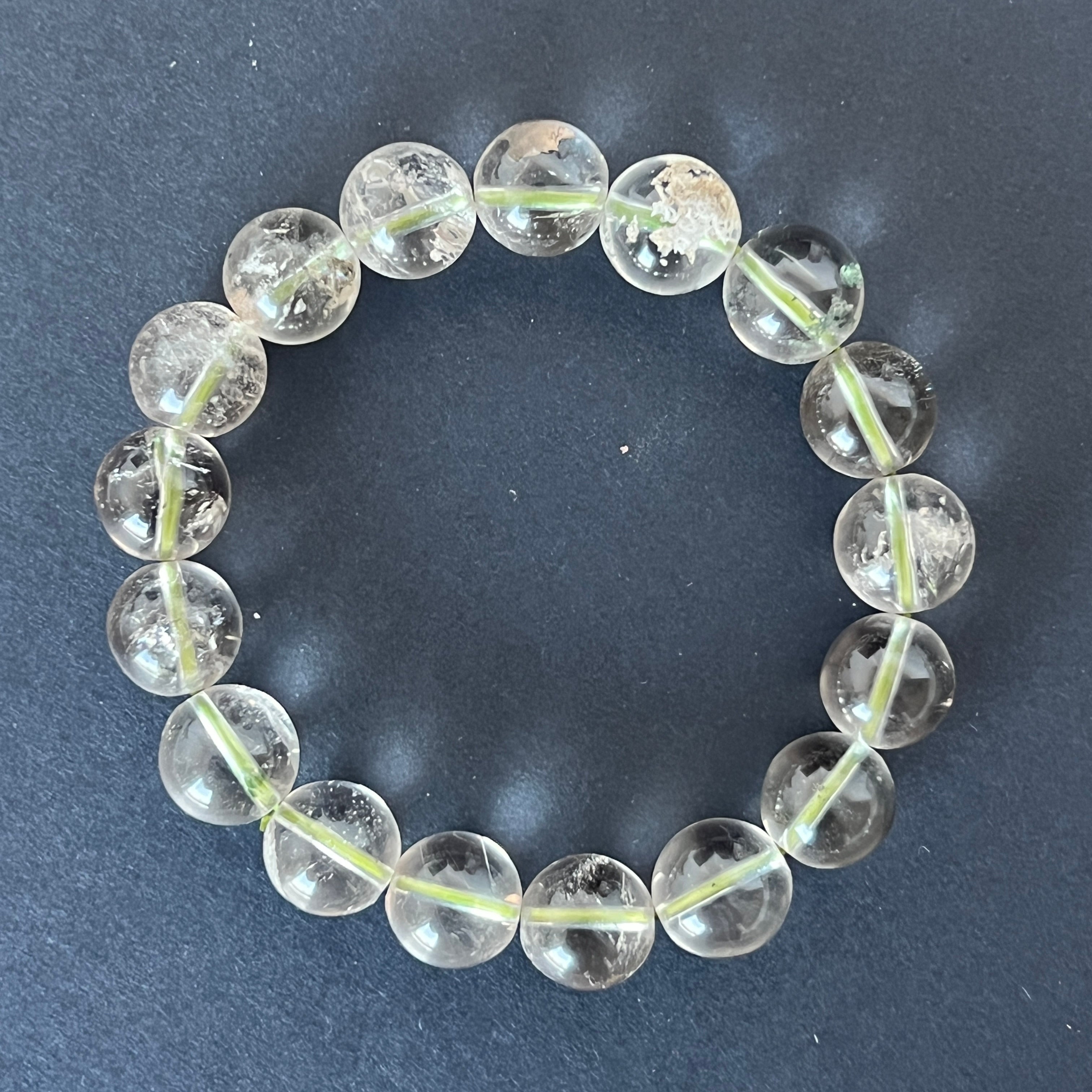 Тази гривна от тибетски кварц, съставена от сферични мъниста 11–12 мм, е специално бижу, изпълнено с мистерия и дълбочина. Тибетският кварц е известен със своите естествени включвания, които създават очарователна игра на форми и нюанси, правейки всяка гривна уникална.