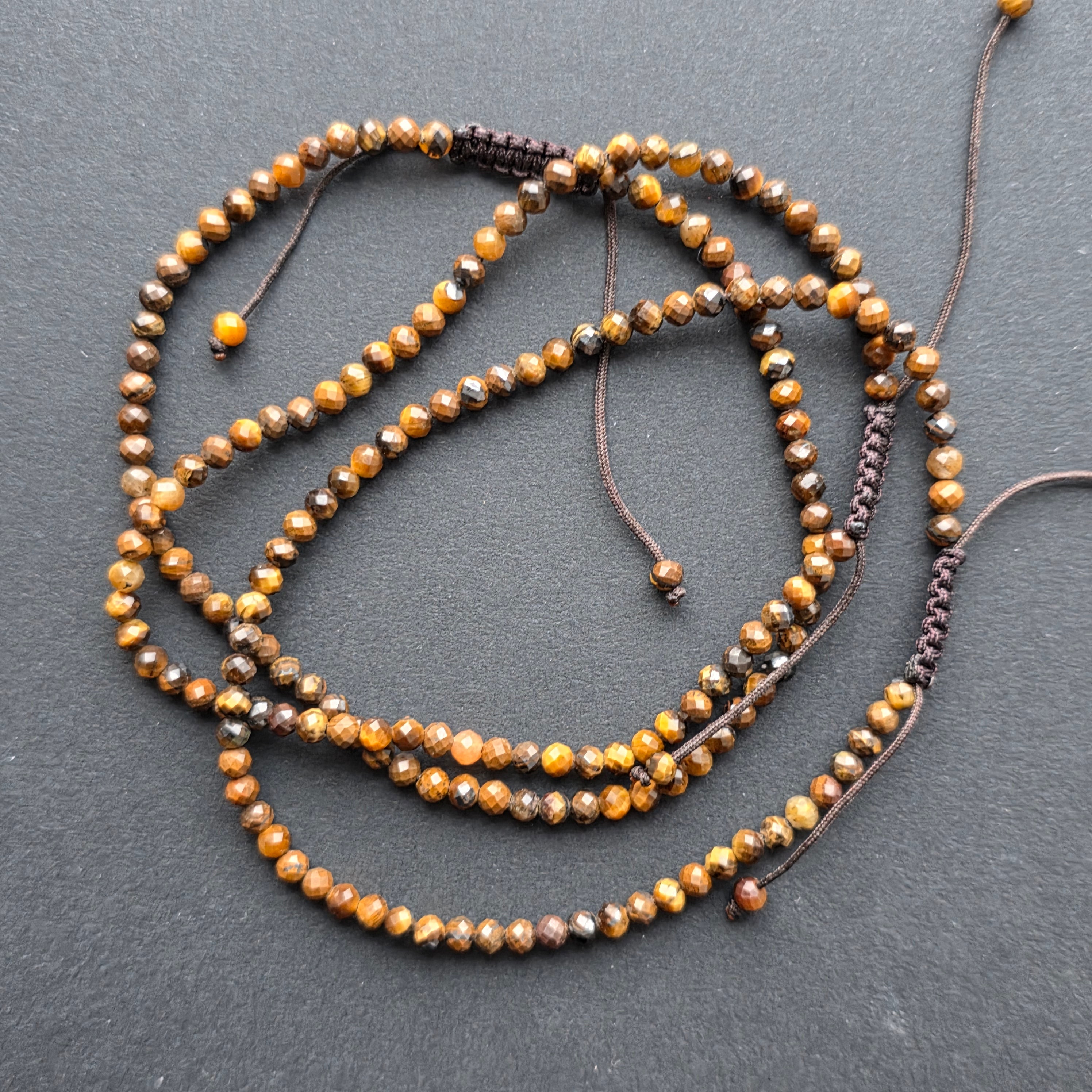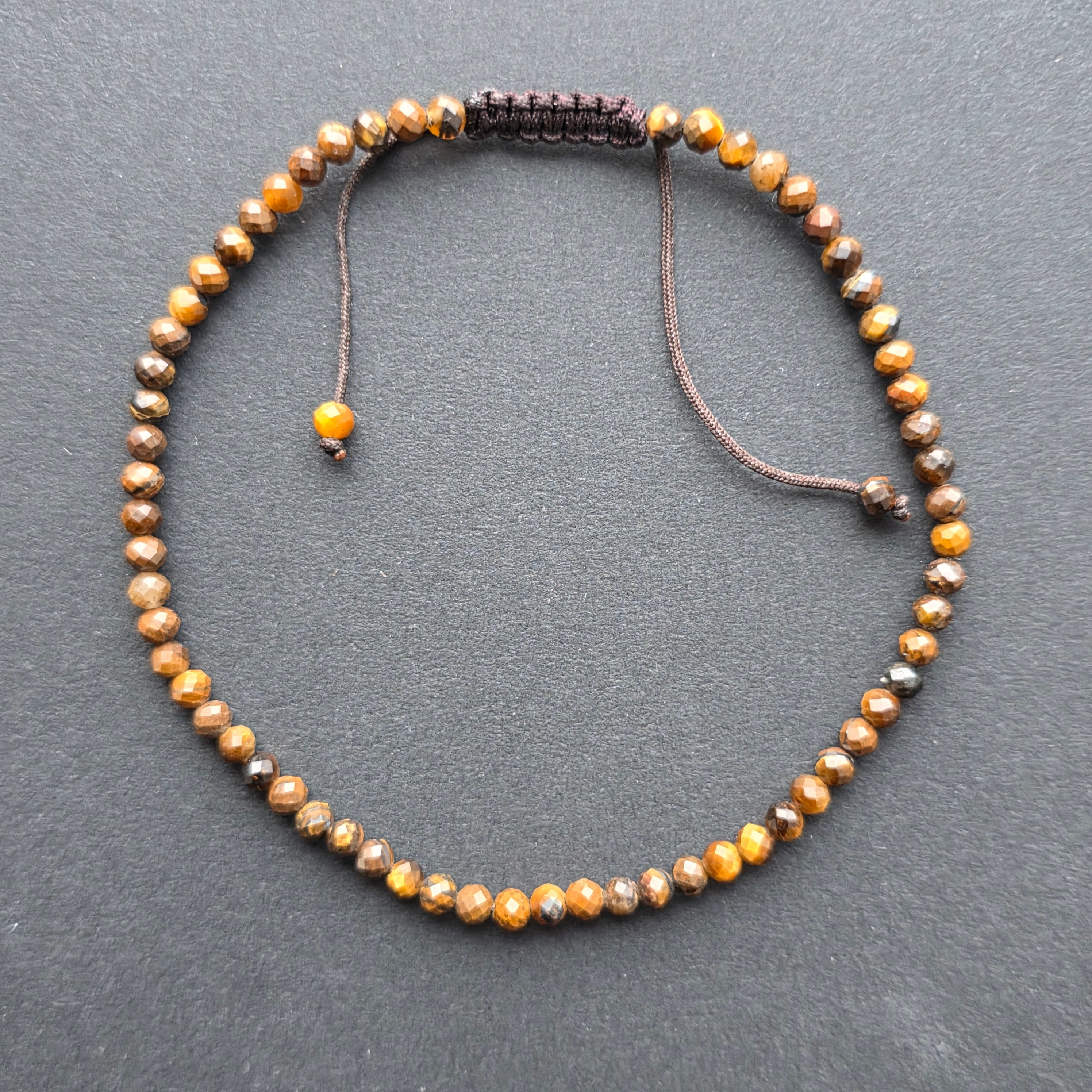 Гривна от тигрово око с фасетирани мъниста 3 мм, регулируем шнур