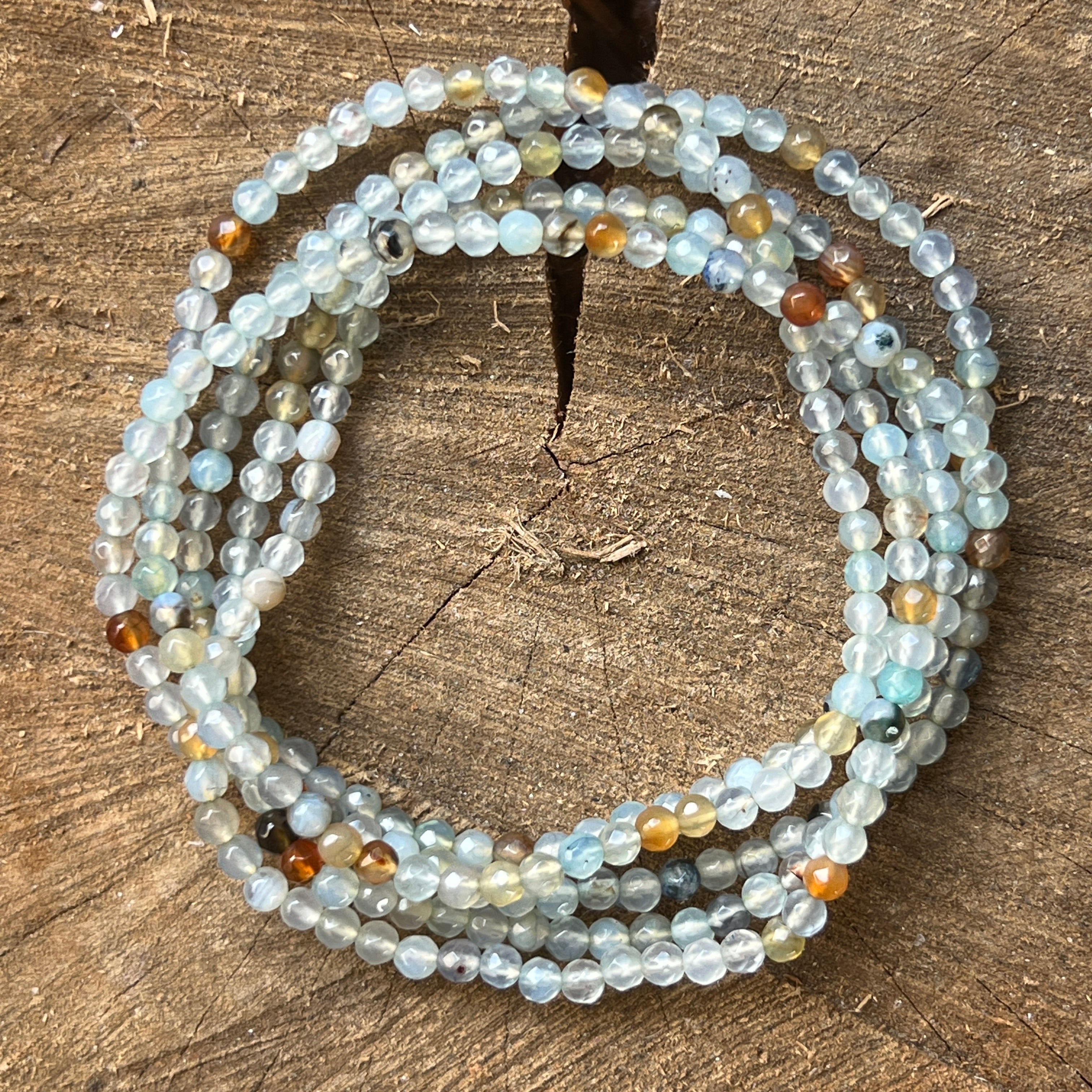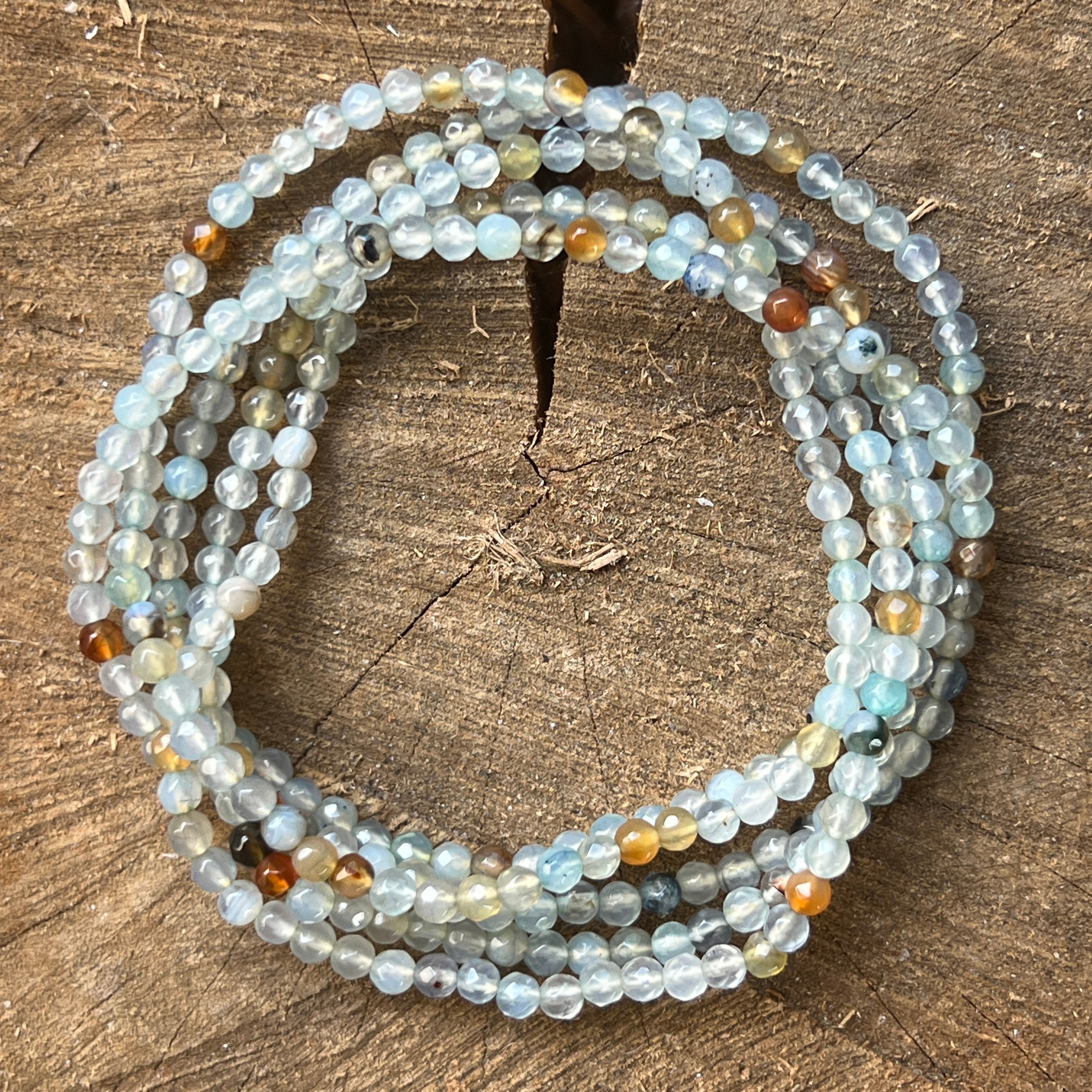 Гривна от фасетиран синьо жадеит 4 мм