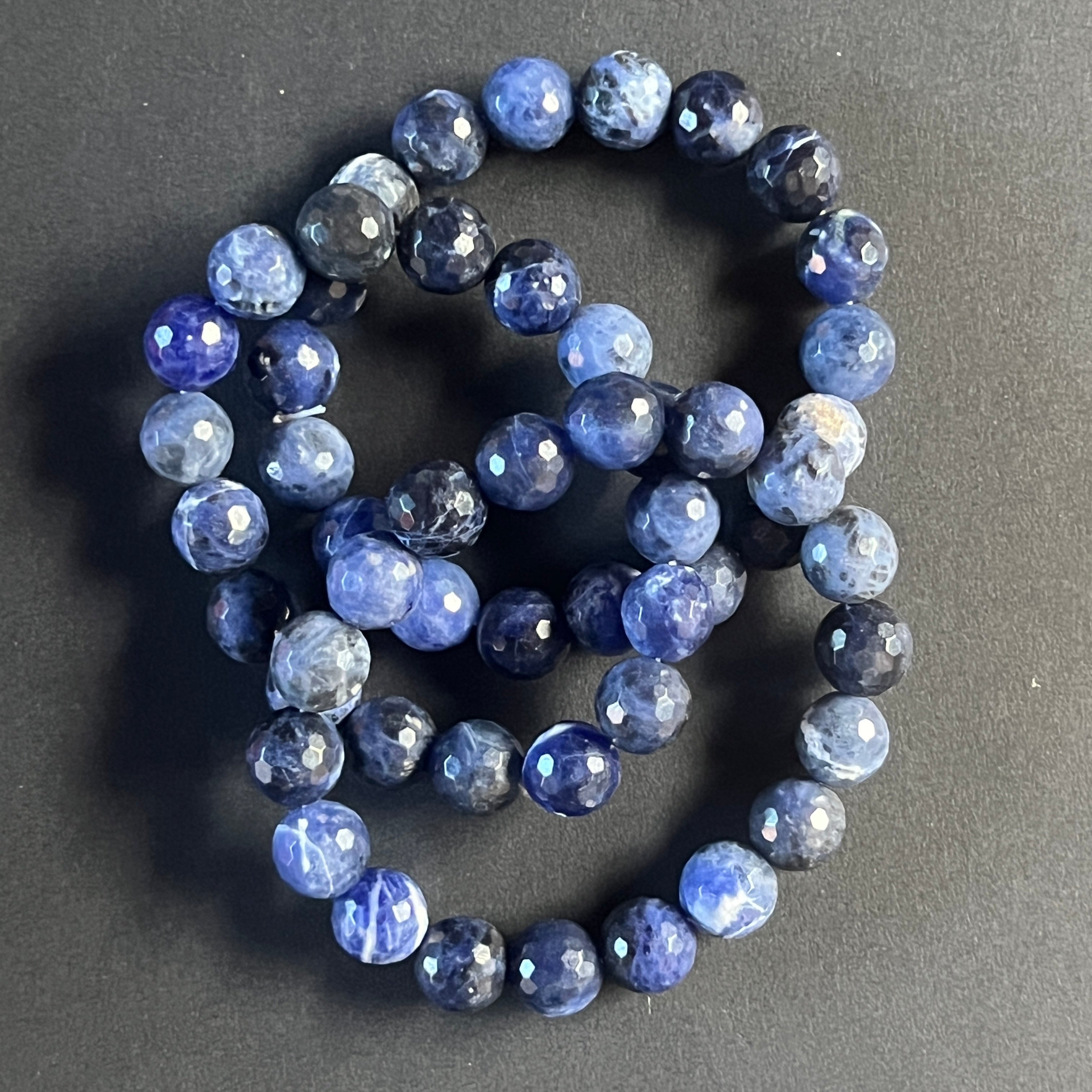 Descriere - Гривна от фасетиран содалит 10 мм
