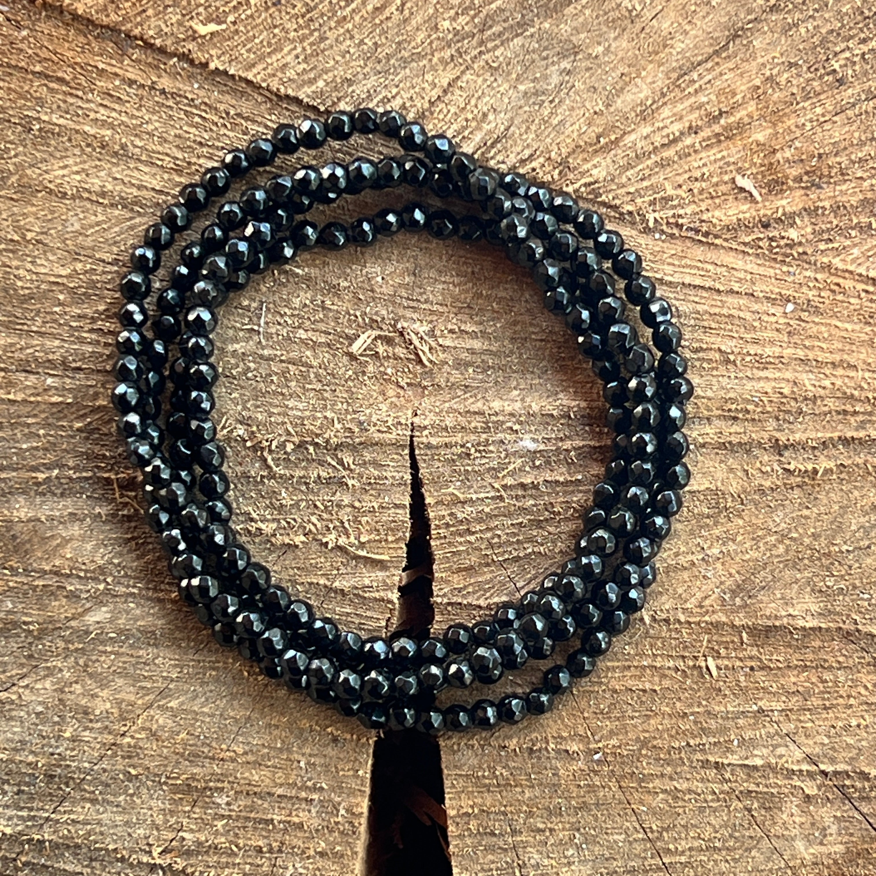 Ревюта – Гривна от фасетиран черен ахат 3 мм