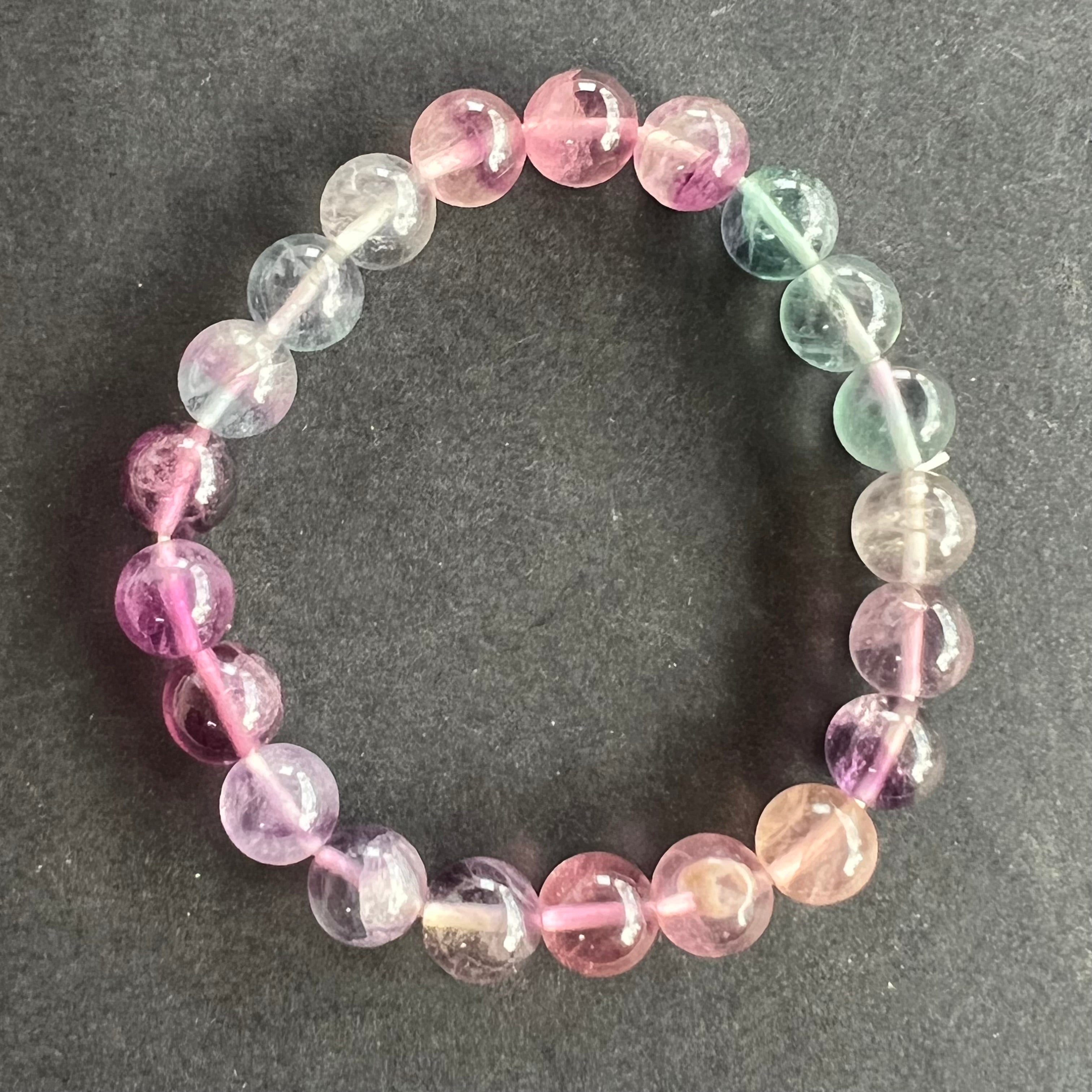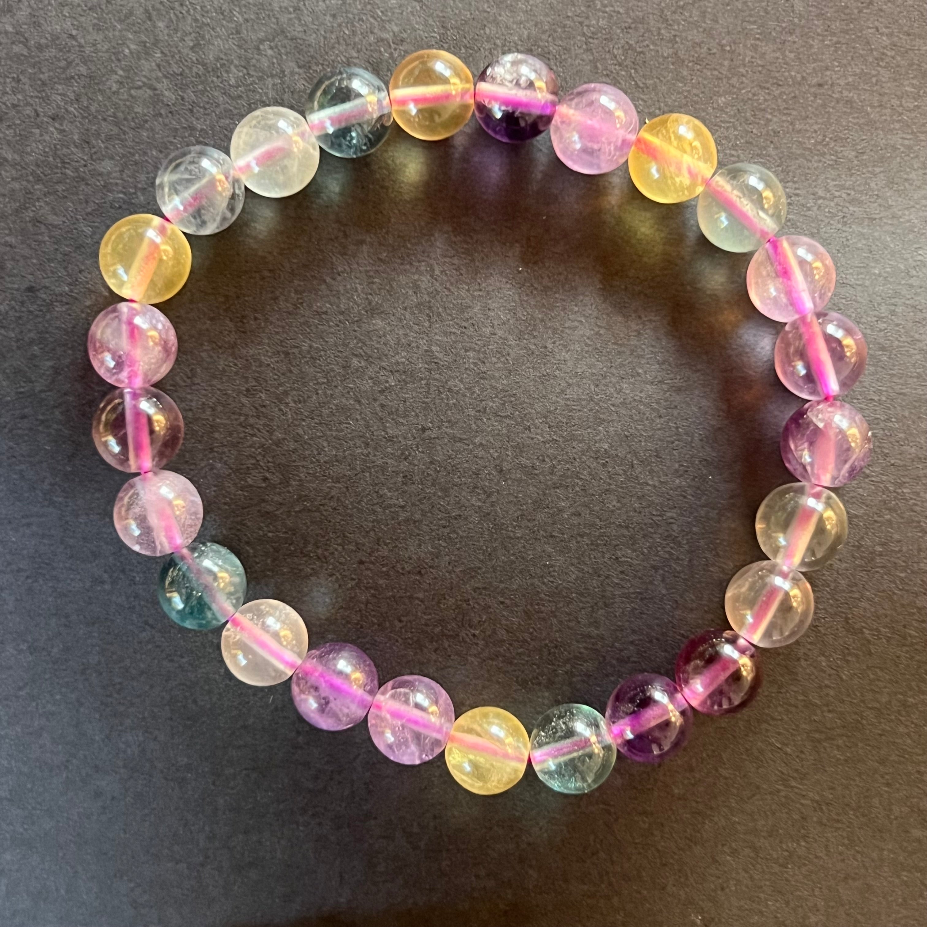 Дъговият флуорит помага за балансиране и хармонизиране на околната енергия и често се използва, за да видим ситуации от различни ъгли и да разширим нашите перспективи.