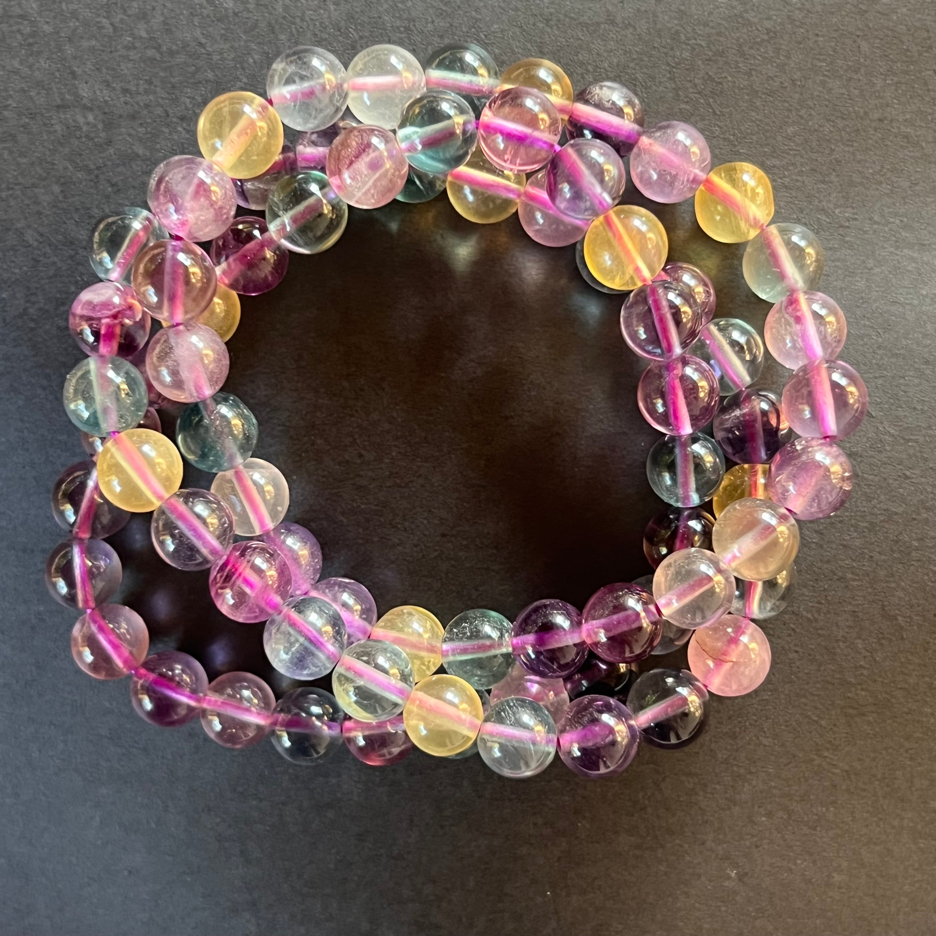 Descriere - Гривна от флуорит Rainbow 8 мм модел 2