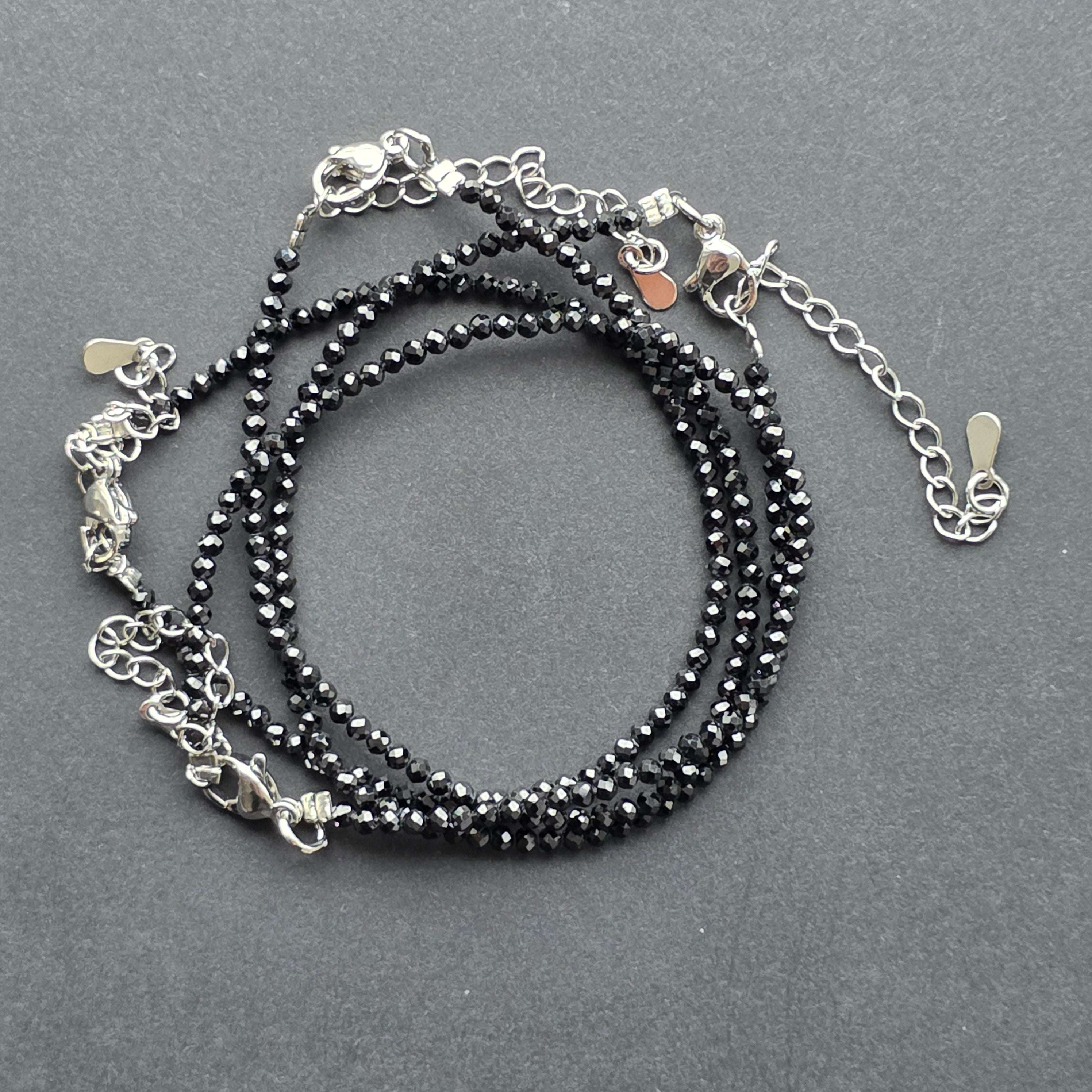 Описание - Гривна от черен обсидиан 2 мм регулируема