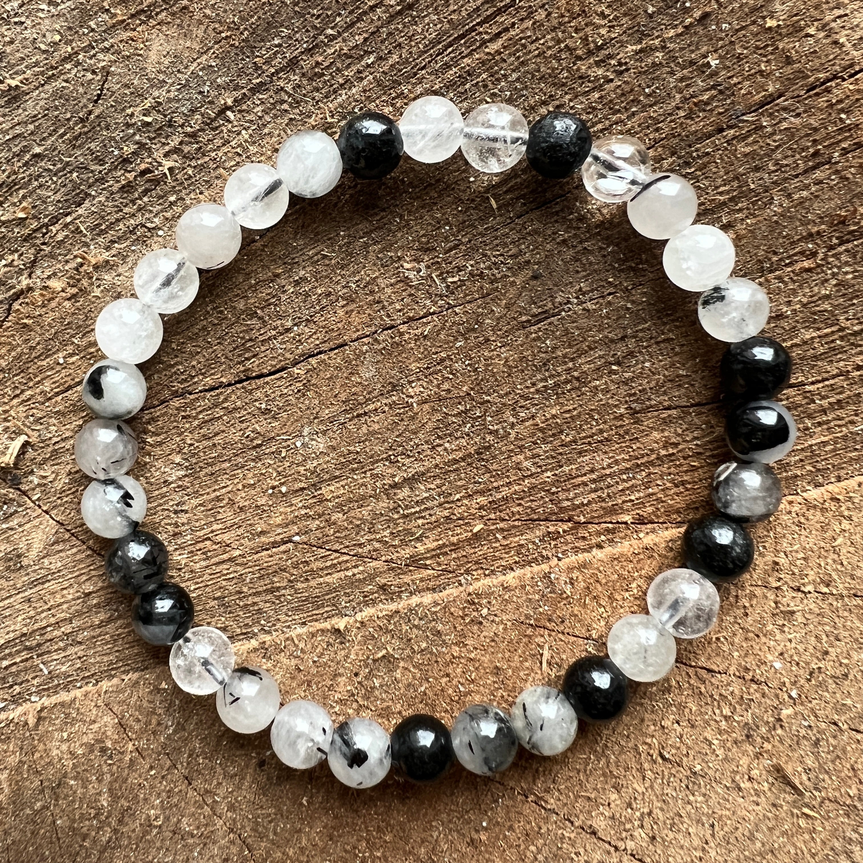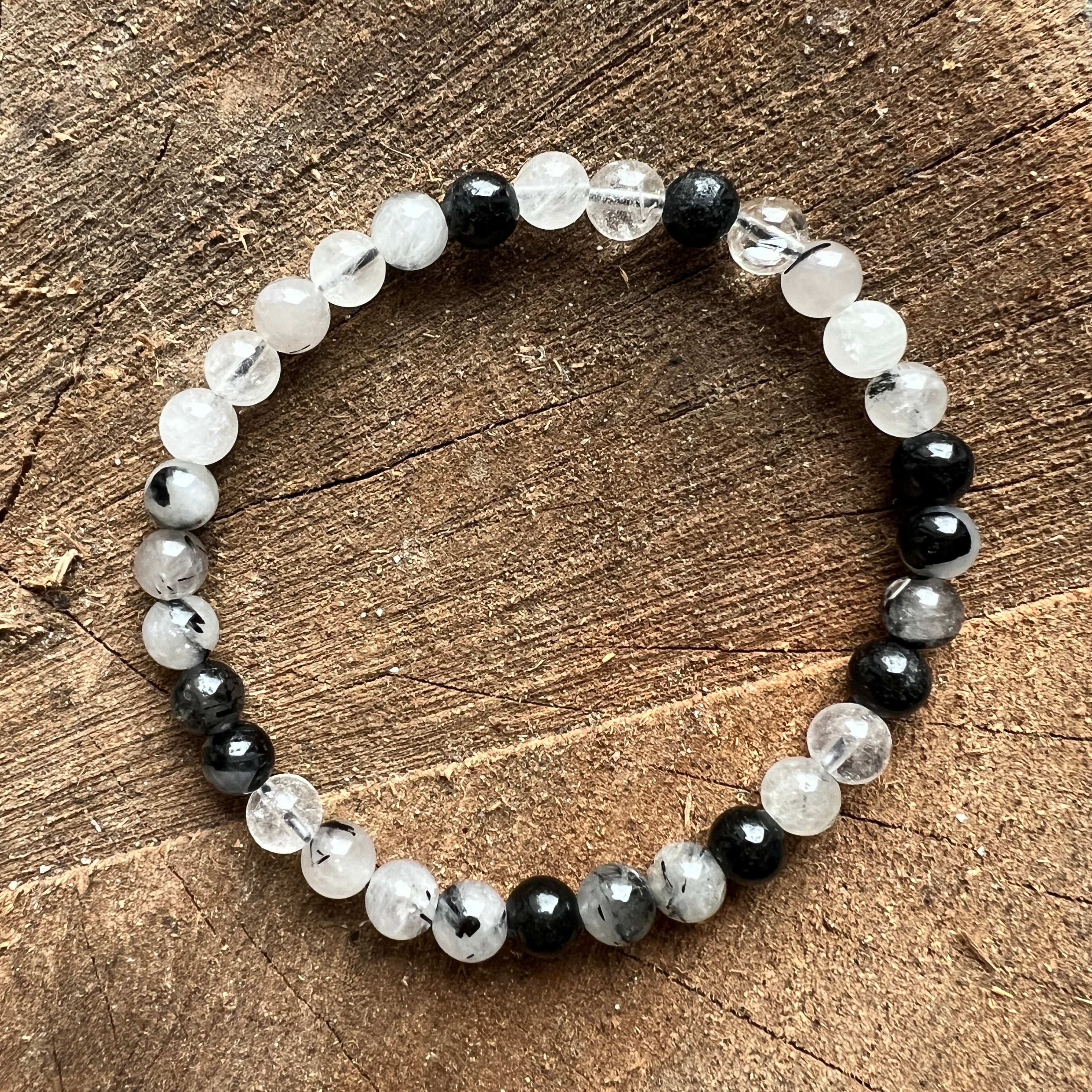 Черният турмалин, известен също като шорл, се състои от сложна смес от боросиликати и се среща в различни кристални форми. Това е много твърд минерал, който има голяма устойчивост на надраскване и износване.