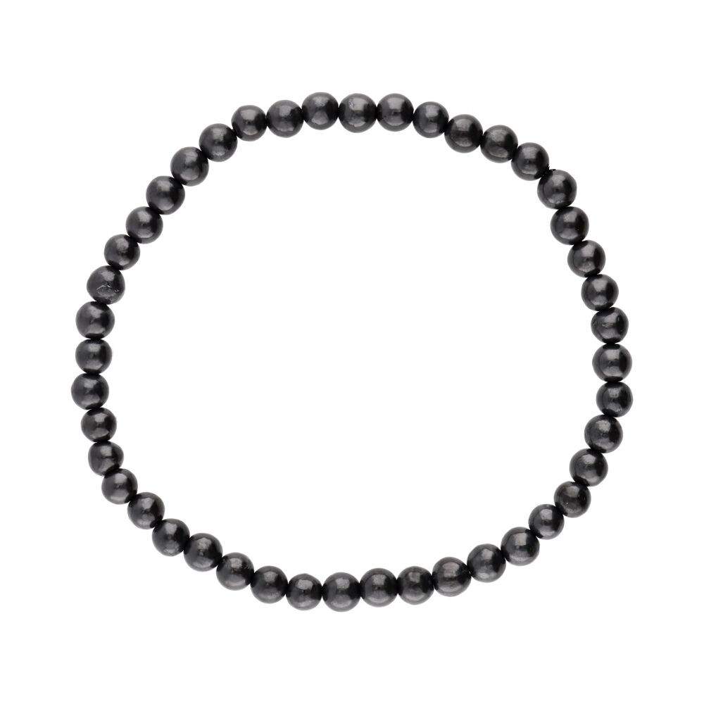 Гривната от шунгит 4 мм е елегантен и дискретен аксесоар, изработен от черни мъниста с кадифен блясък.