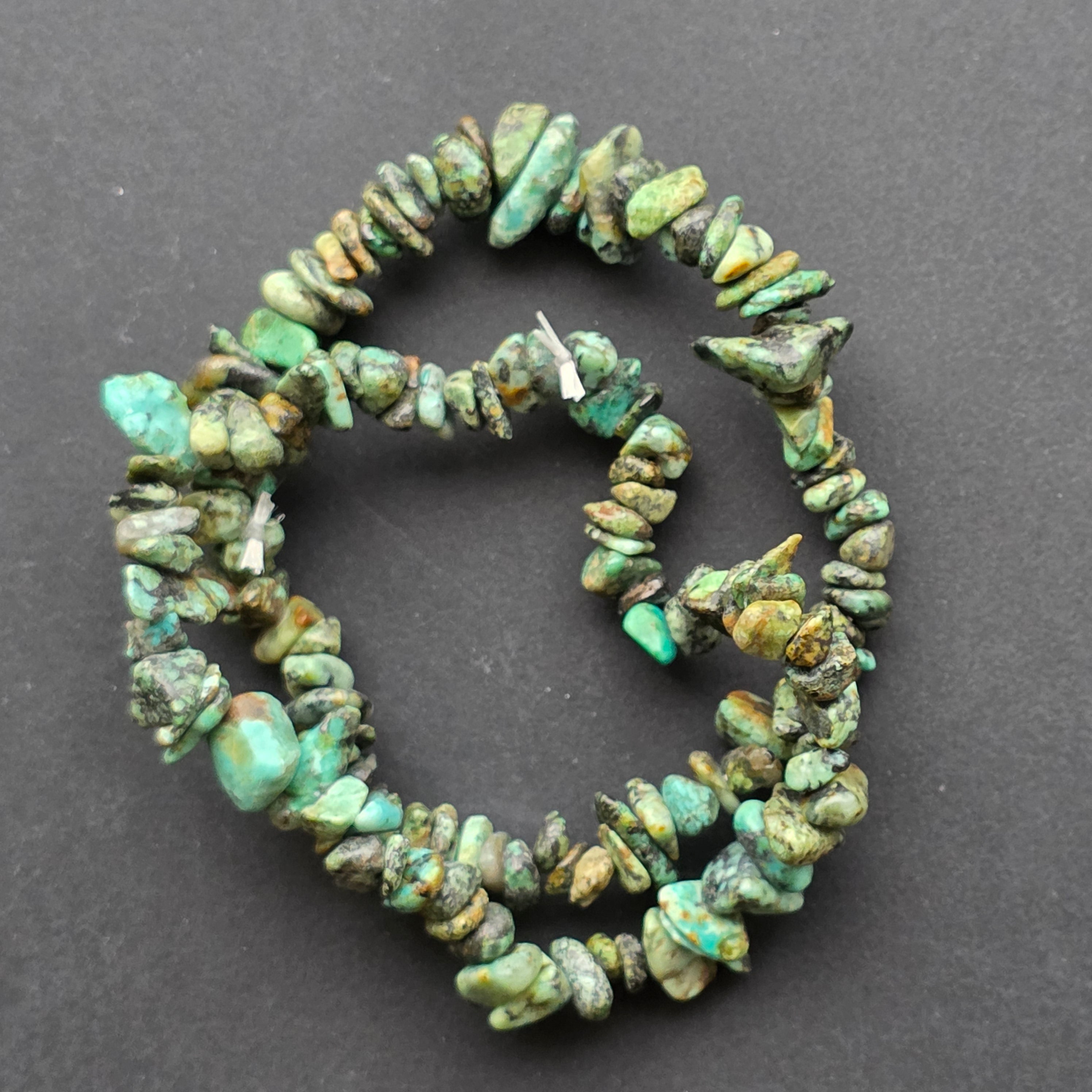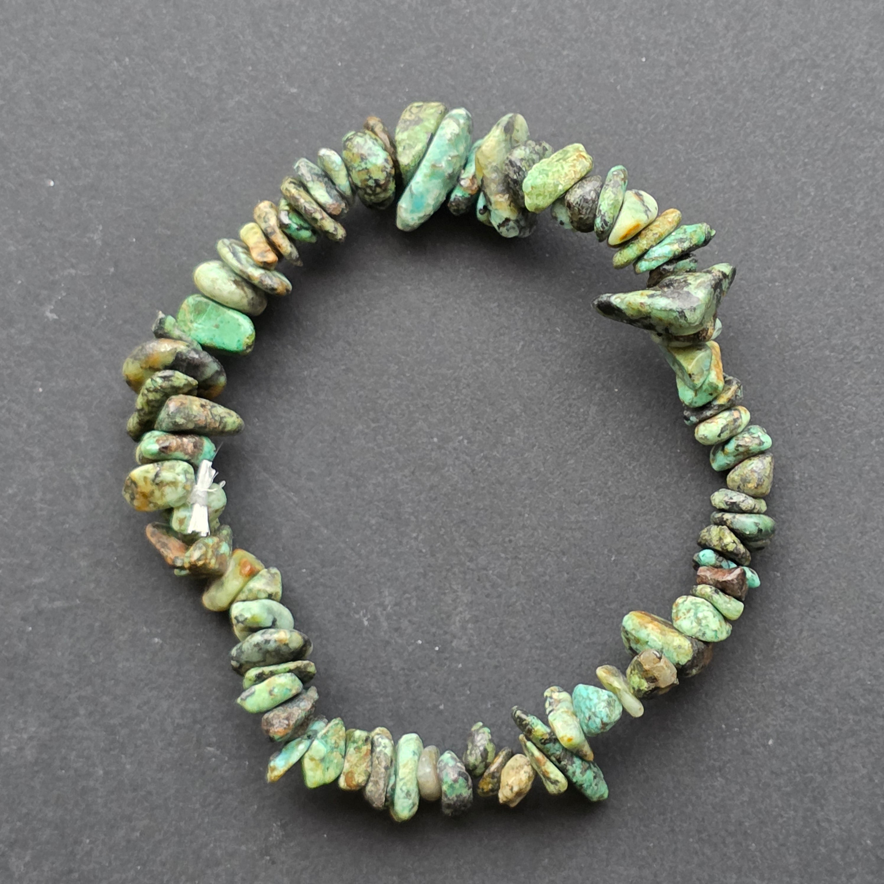 • Камък: африкански тюркоаз (African Turquoise) – неправилни чипове, ръчно шлифовани
