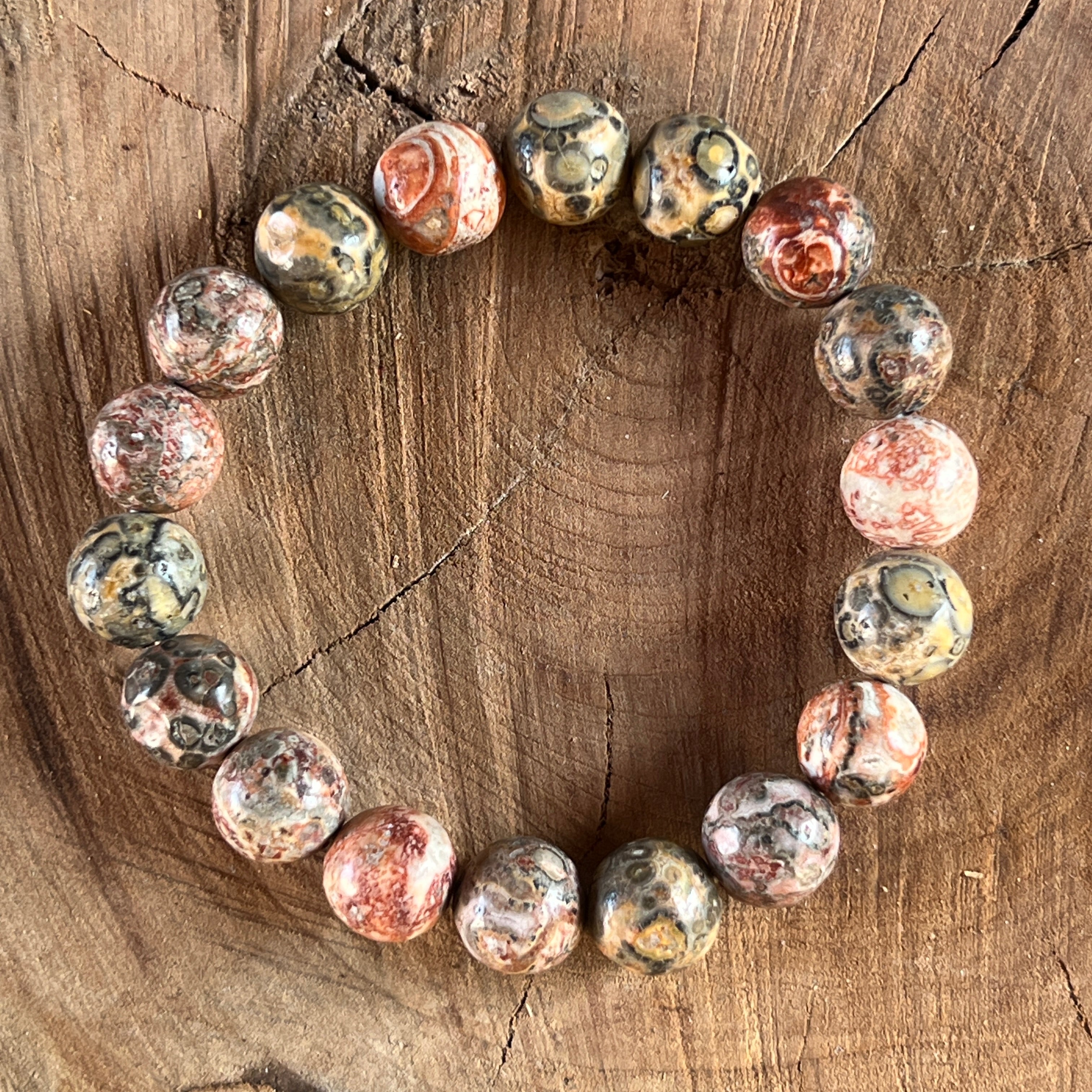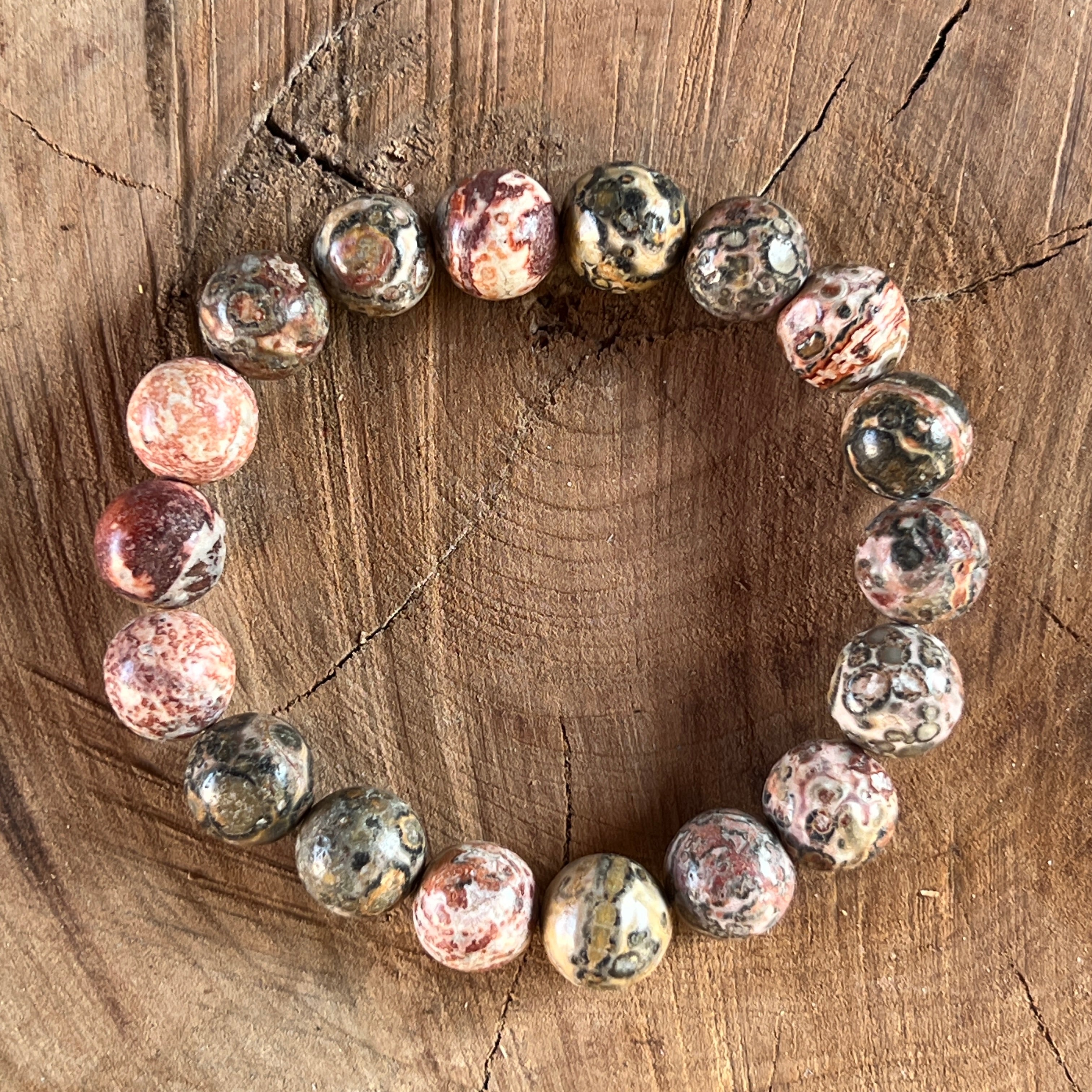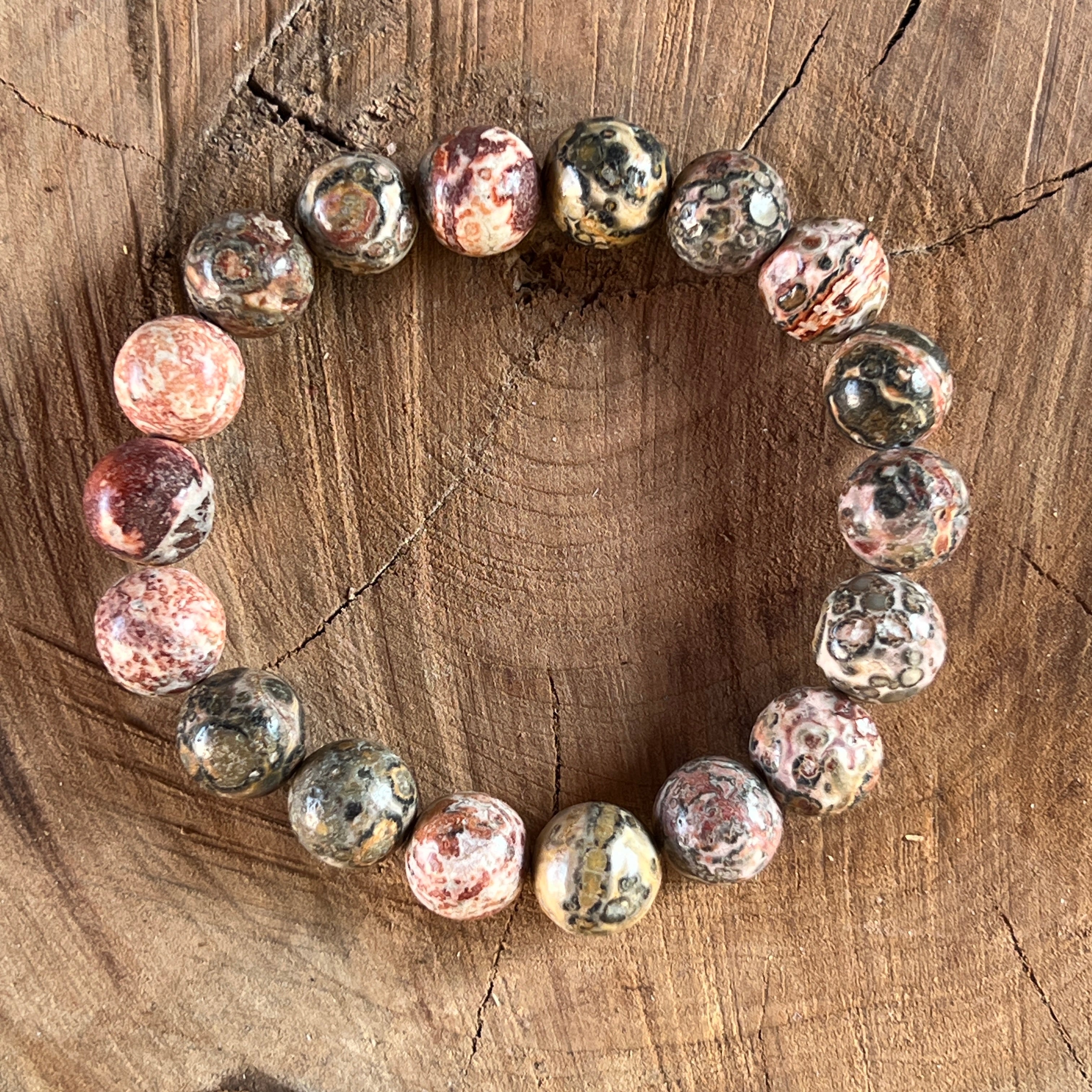Леопардовият яспис се свързва с енергията на земята, насърчавайки връзката с природата и вдъхвайки търпение и решителност.