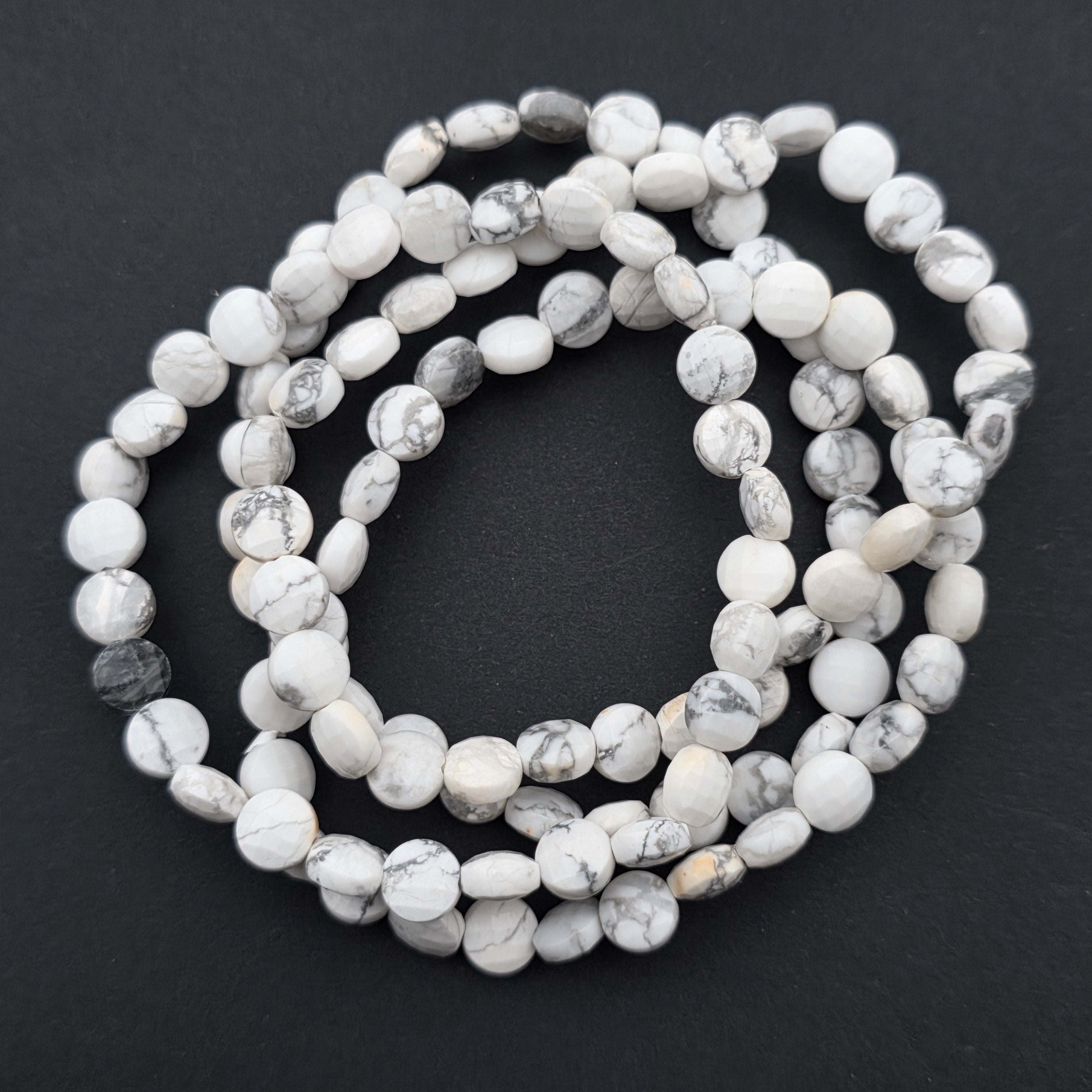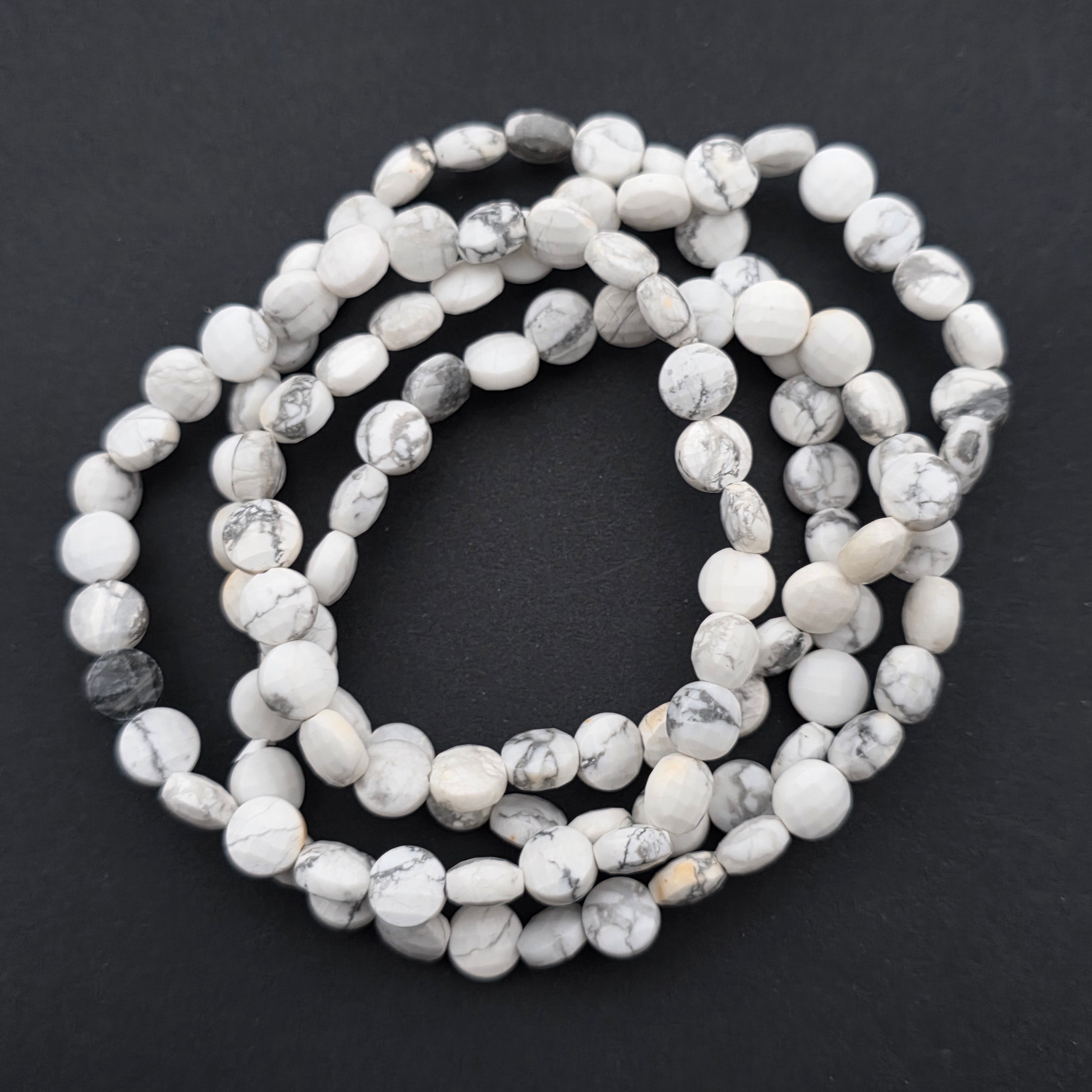 Descriere - Гривна с овални фасетирани дискове от бял хауолит 6x4 мм