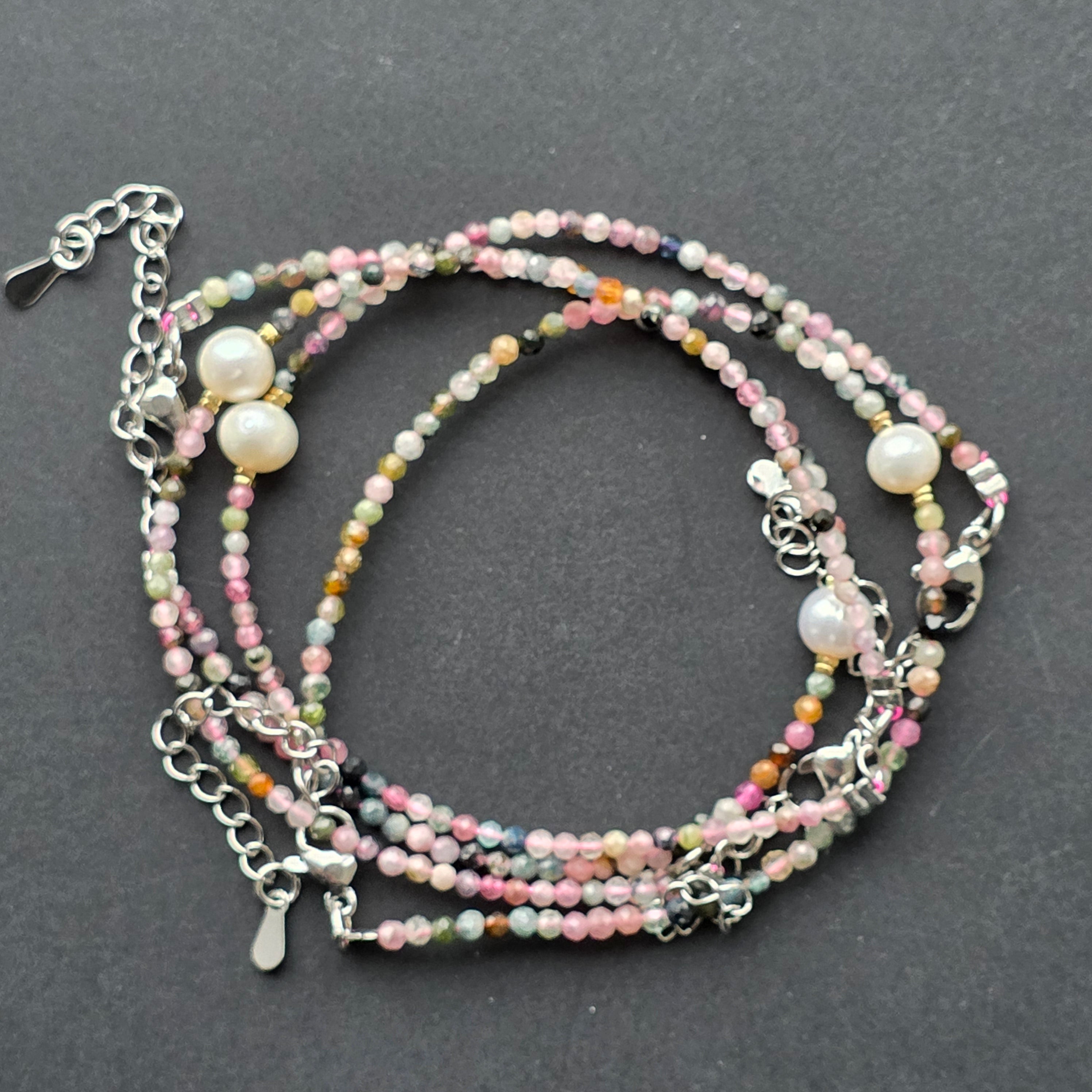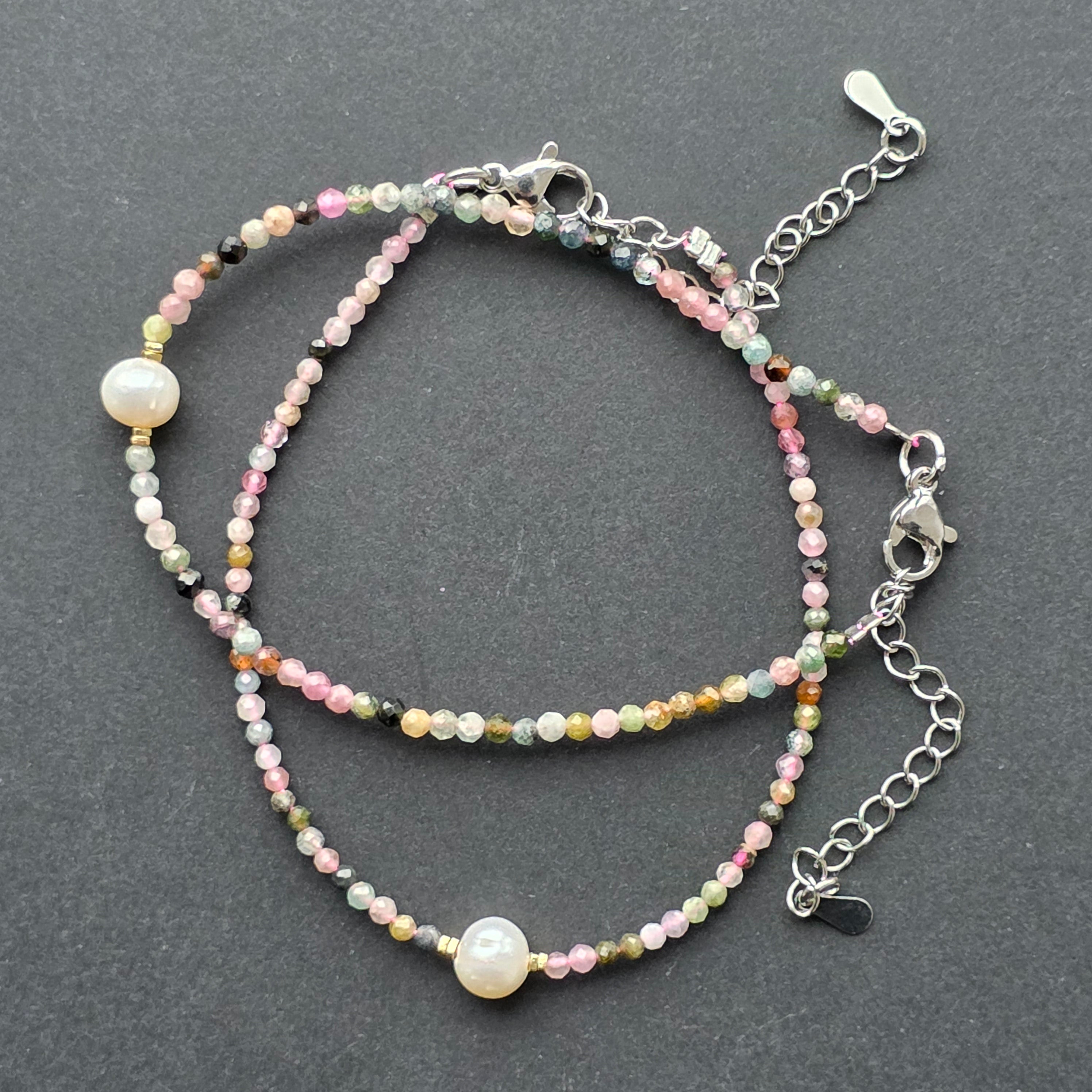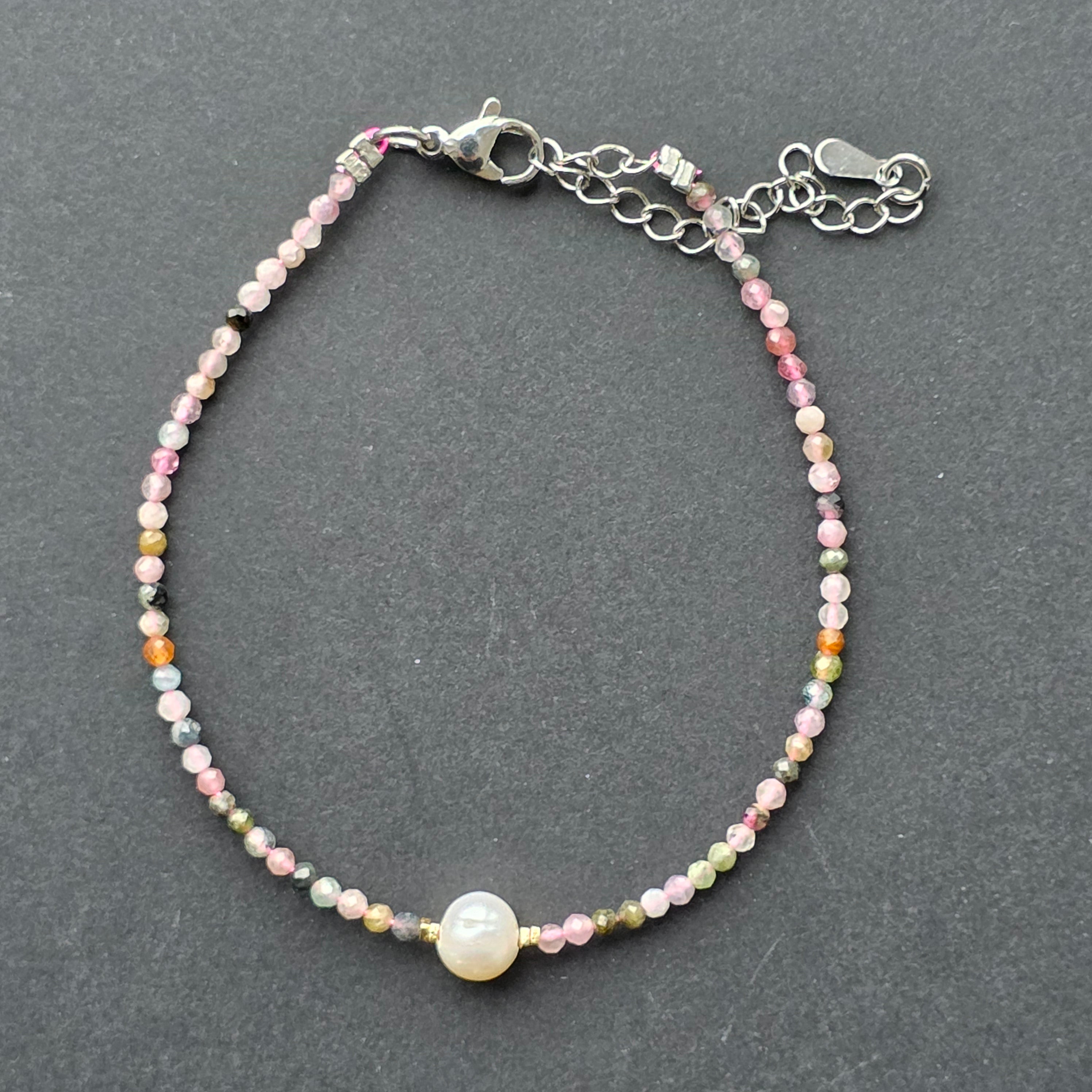 • Камък: натурален турмалин, смес от цветове и акцент с перла