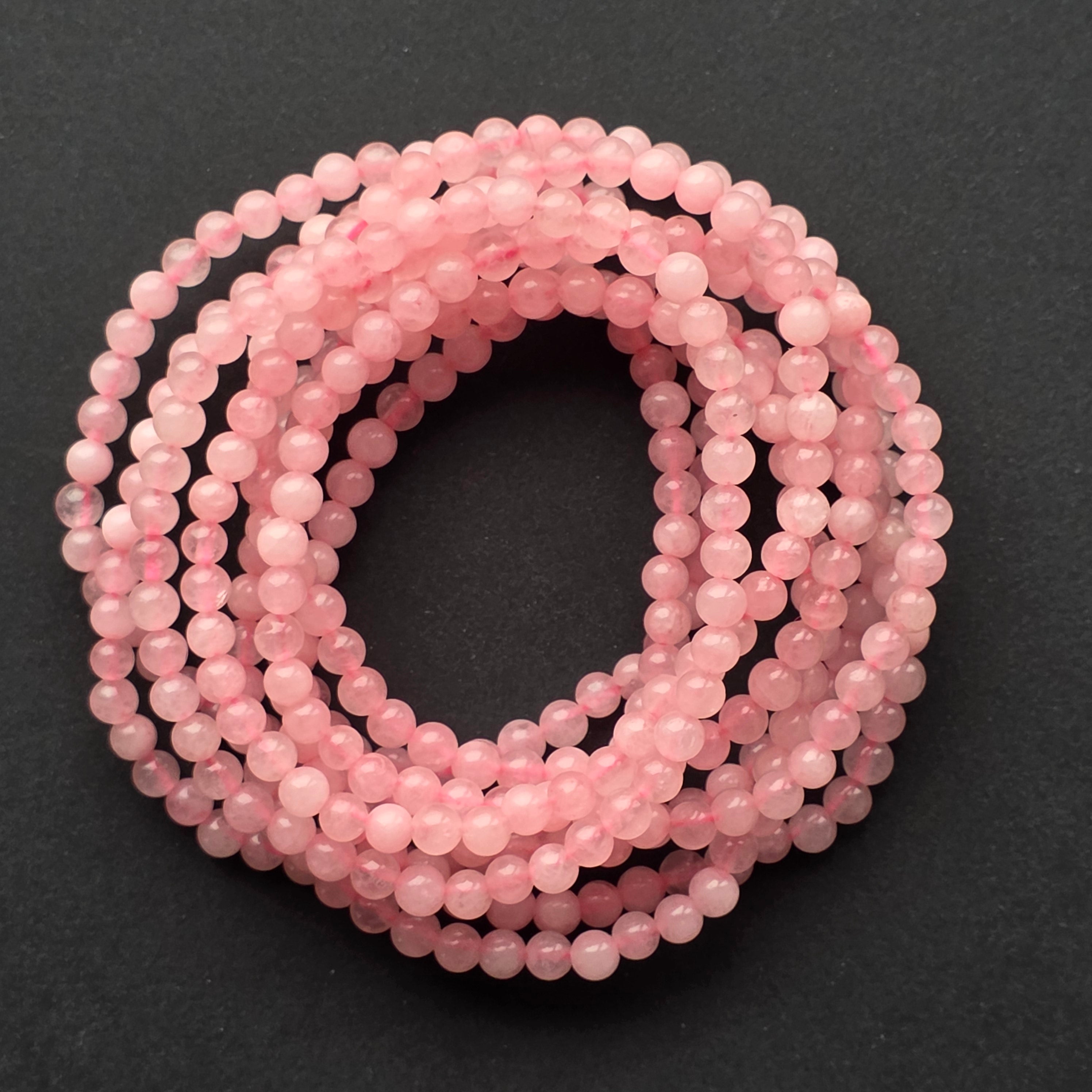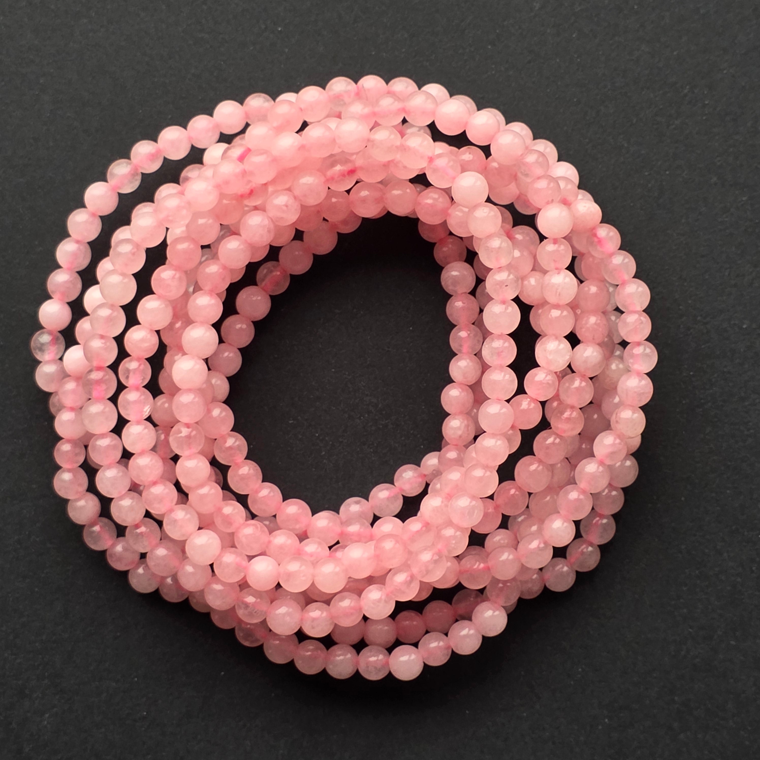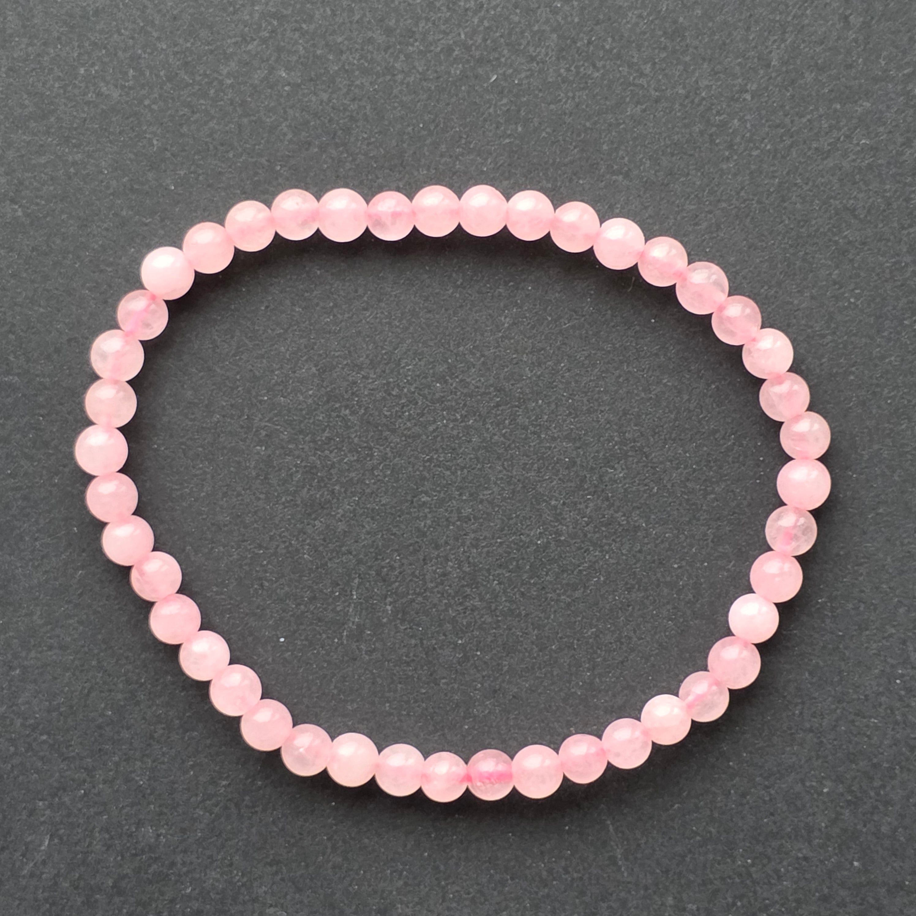 - Тази гривна от естествен розов кварц с дребни мъниста от 4 мм е деликатен и пълен със символика аксесоар. Розовият кварц е известен като камък на любовта и хармонията, свързван с отваряне на сърцето, емоционален баланс и вътрешна нежност.