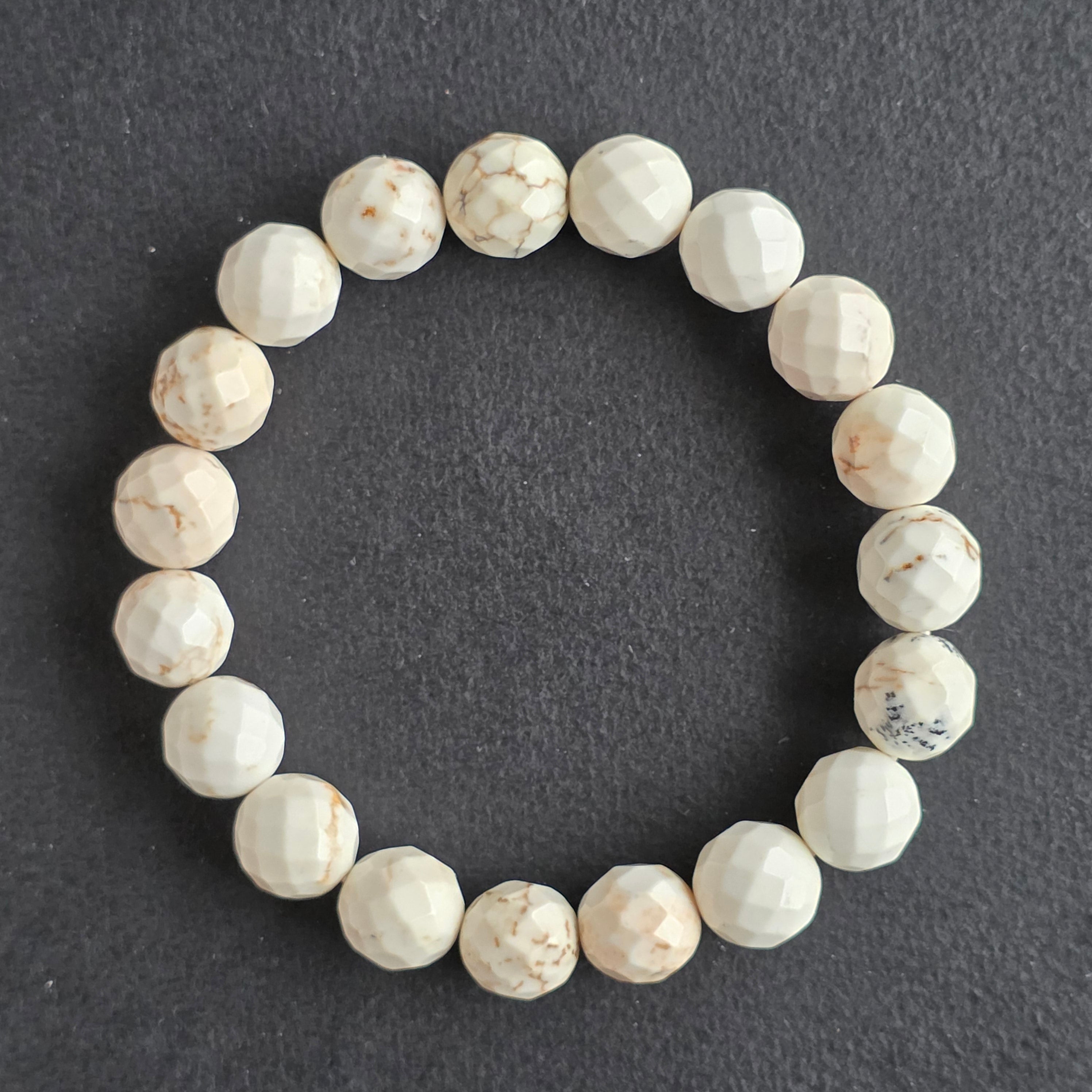 Descriere - Гривна с фасетирани бели хауолитови мъниста 9-10 мм