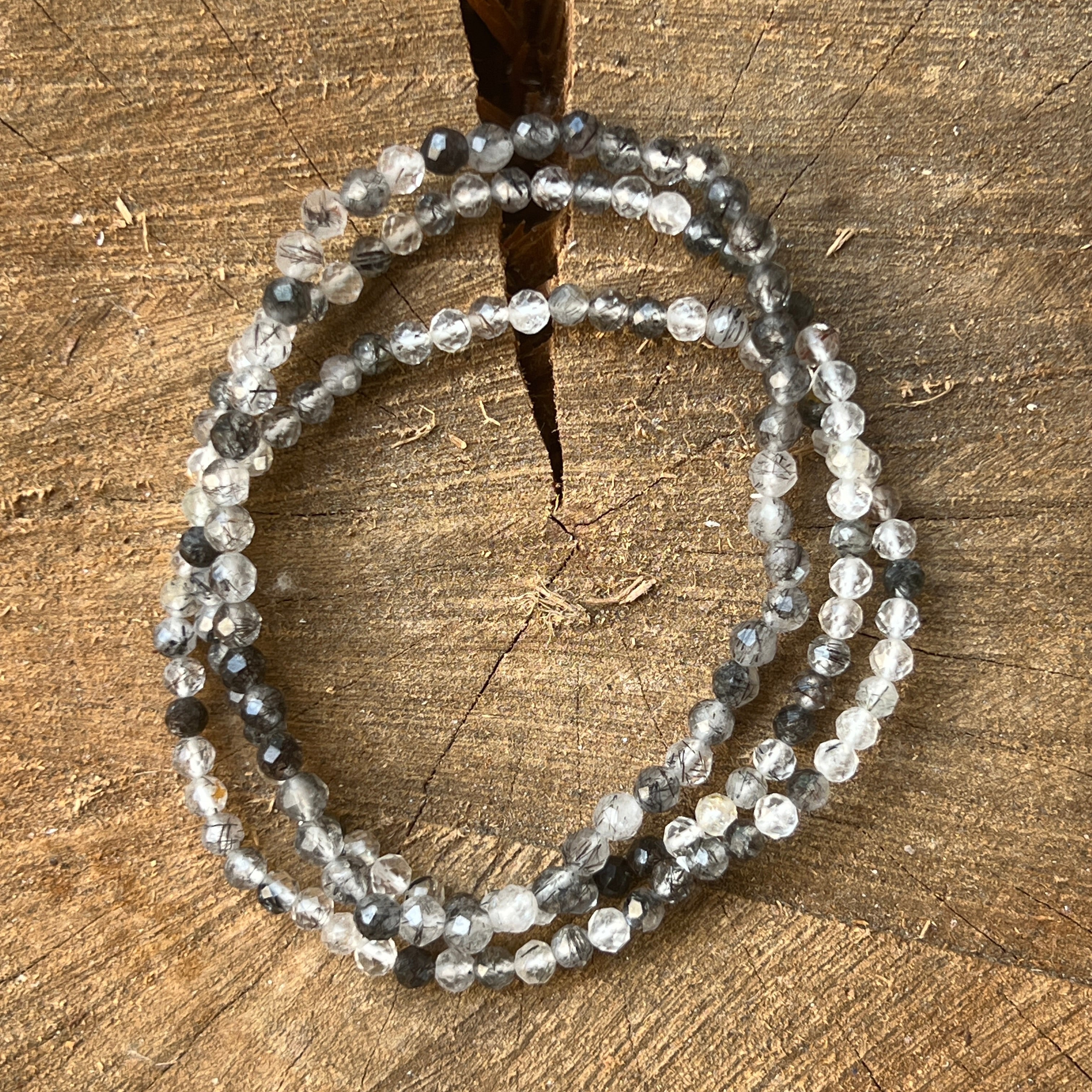 Гривна с фасетирани черен кварц, турмалин 4 мм