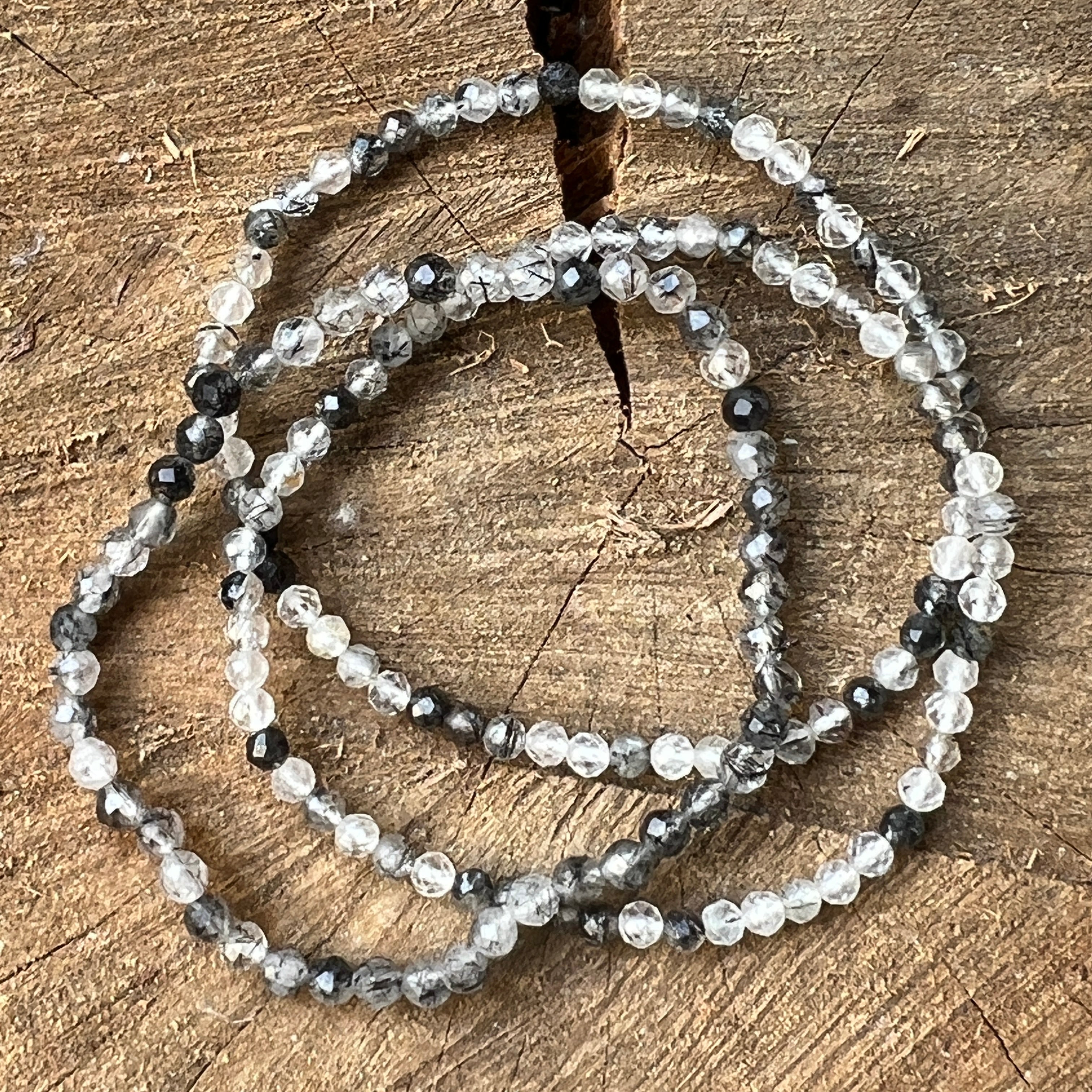 Descriere - Гривна с фасетирани черен кварц, турмалин 4 мм