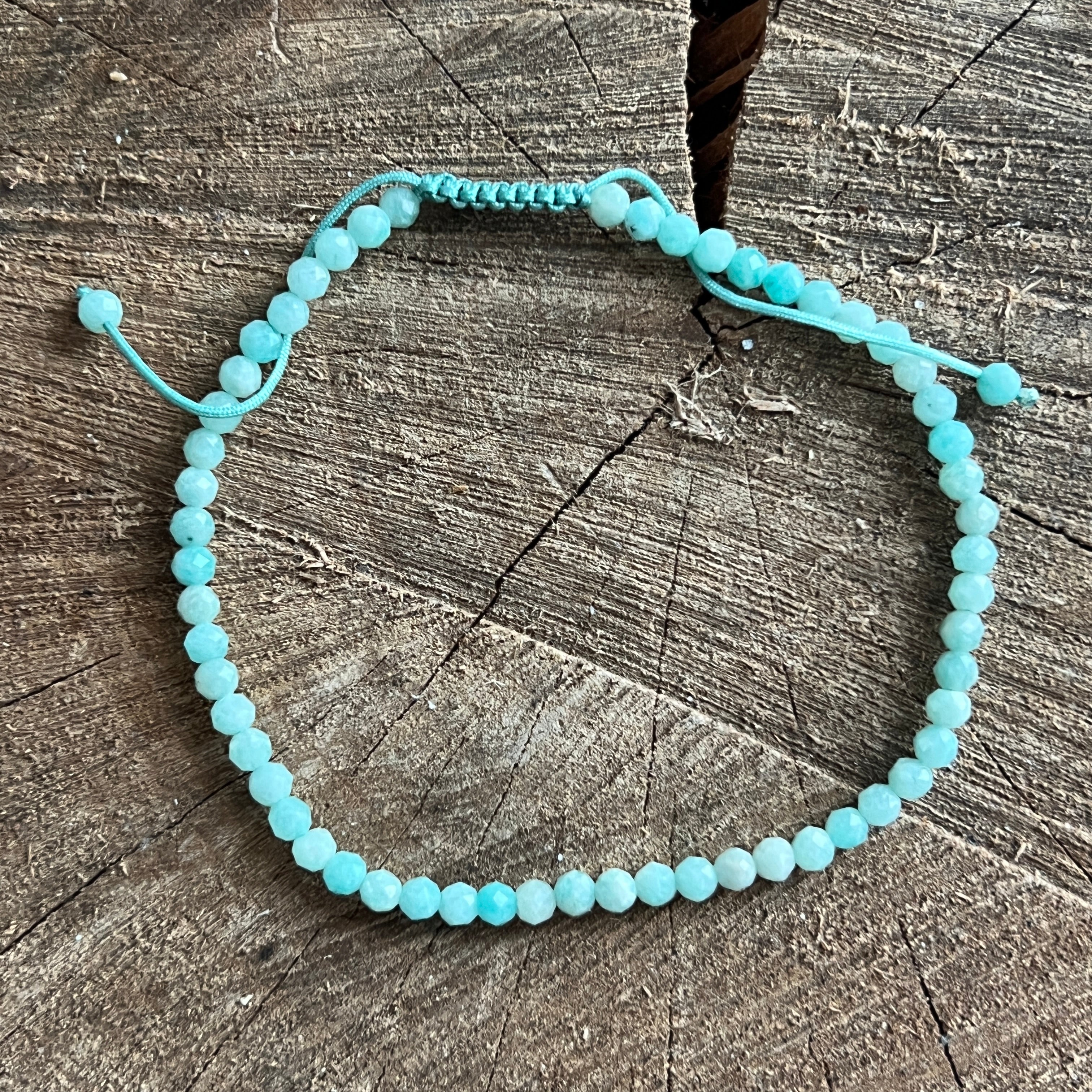 Описание - Гривна с фасетиран амазонит 3 мм с регулируем шнур