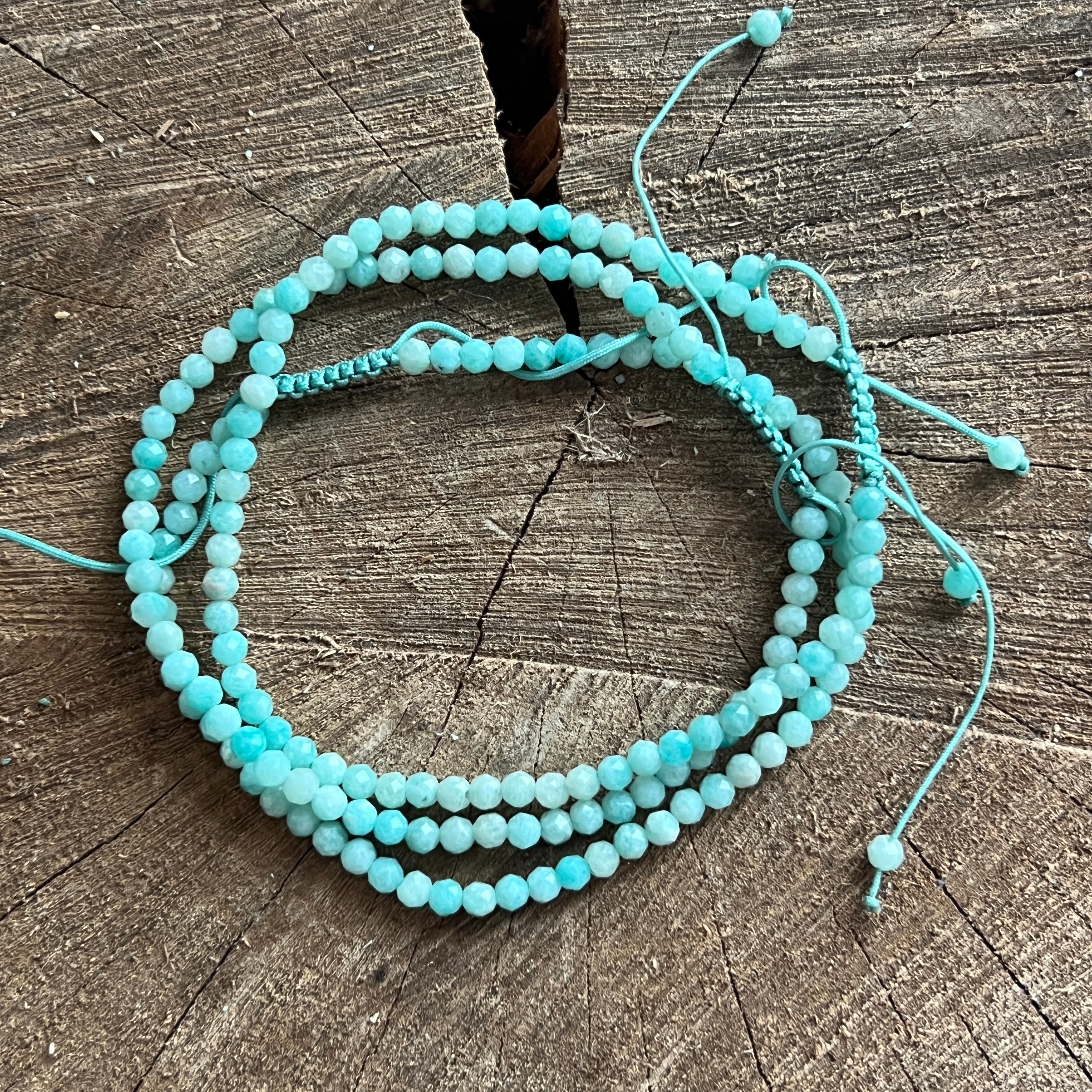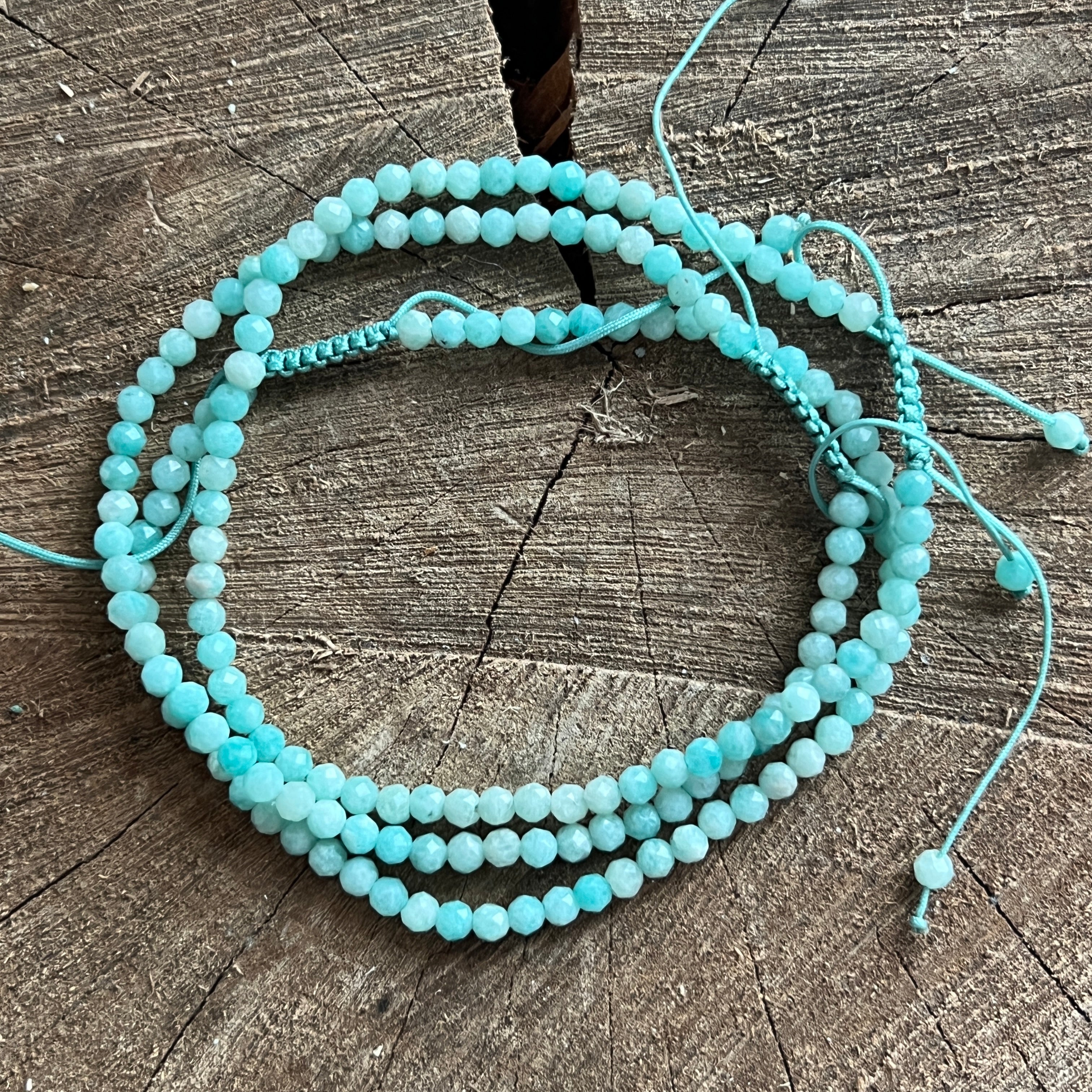 Гривна с фасетиран амазонит 3 мм с регулируем шнур