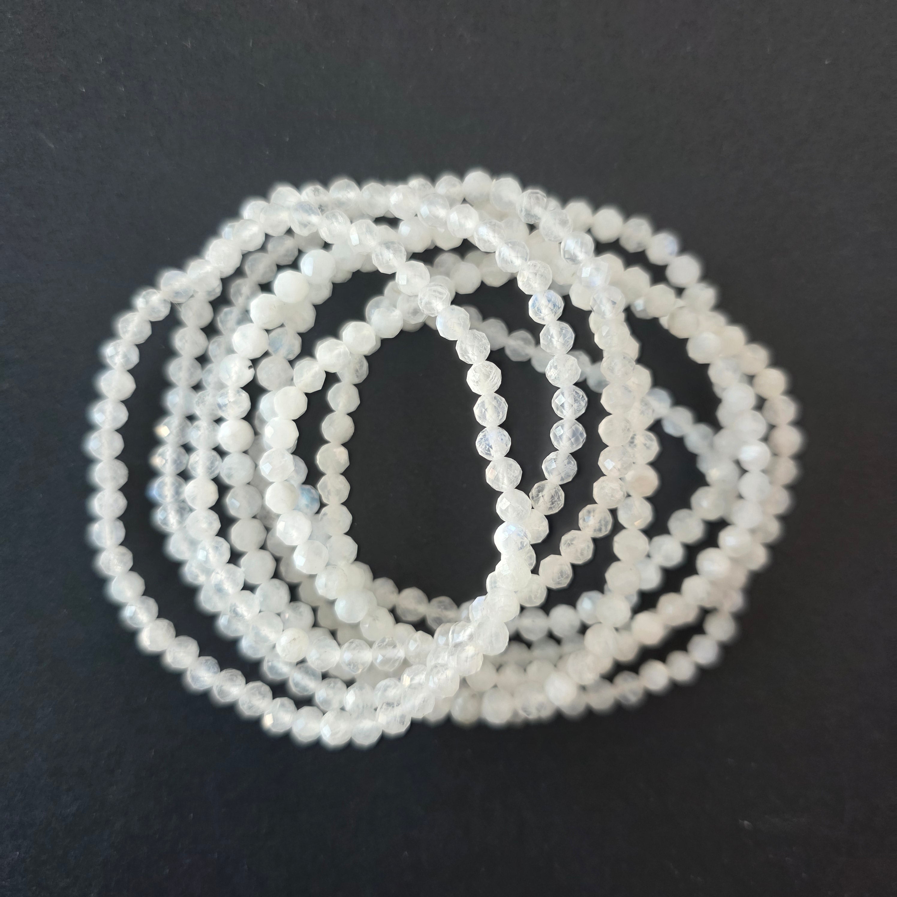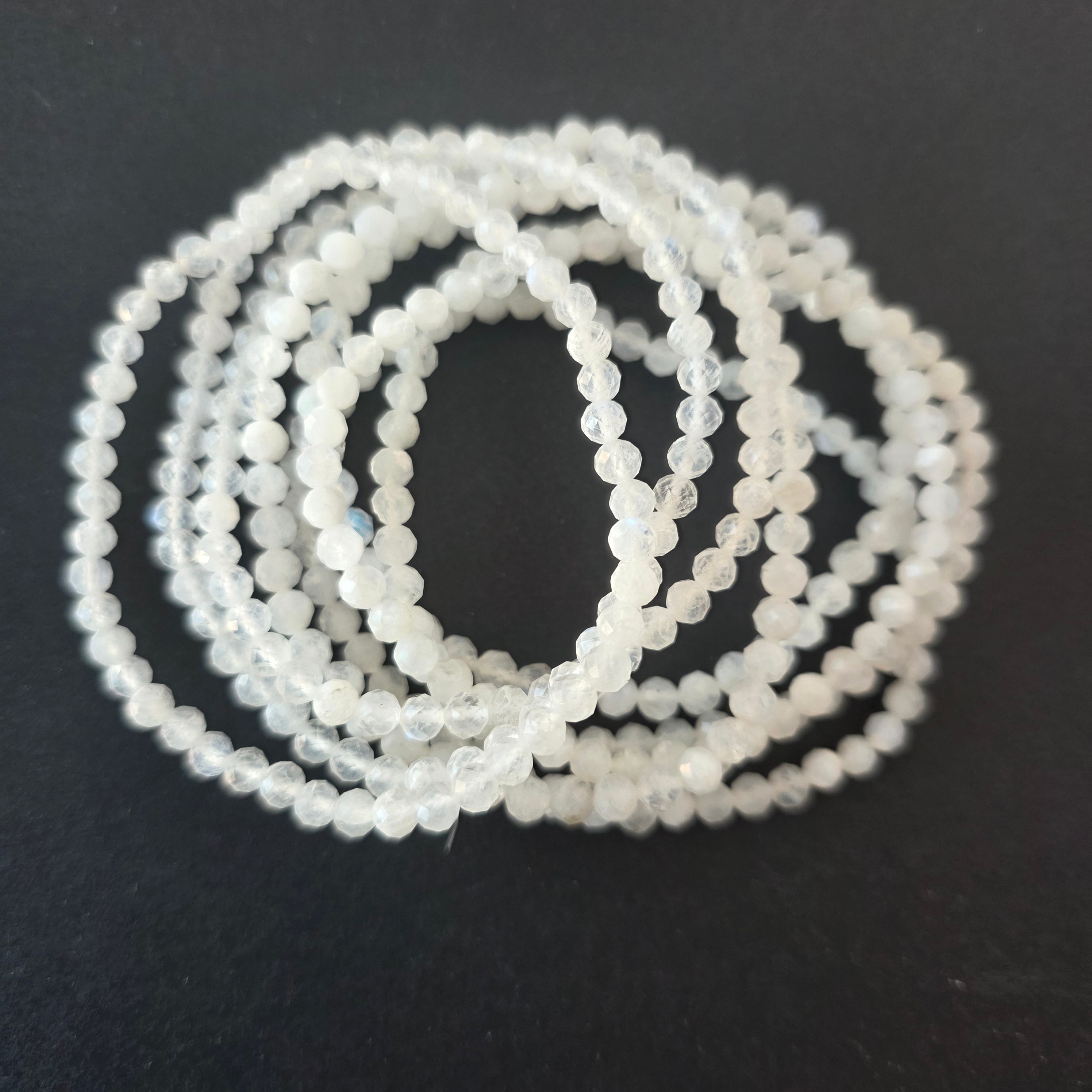Описание - Гривна с фасетиран бял лунен камък 4 мм