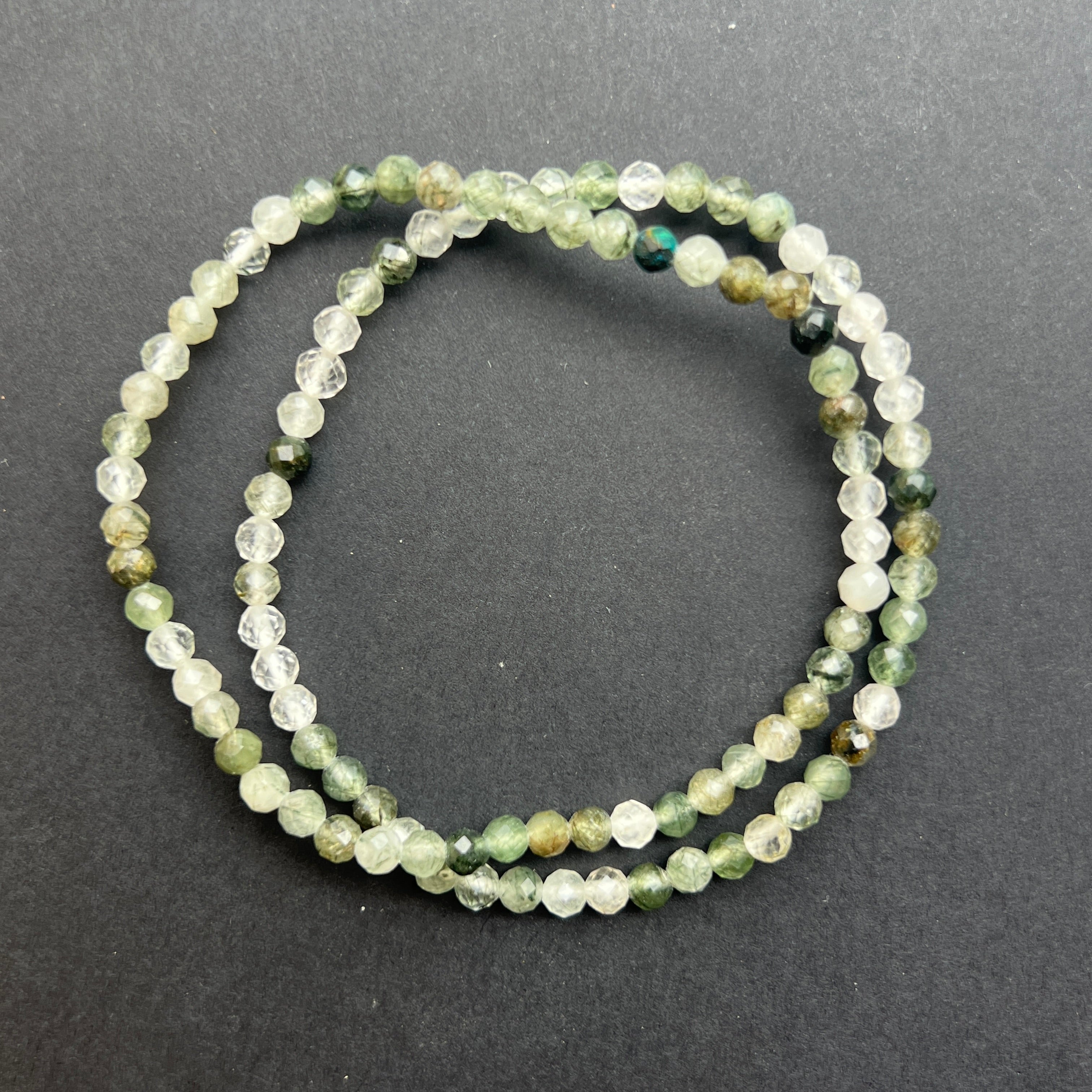 Descriere - Гривна с фасетиран зелен рутилов кварц 4 мм