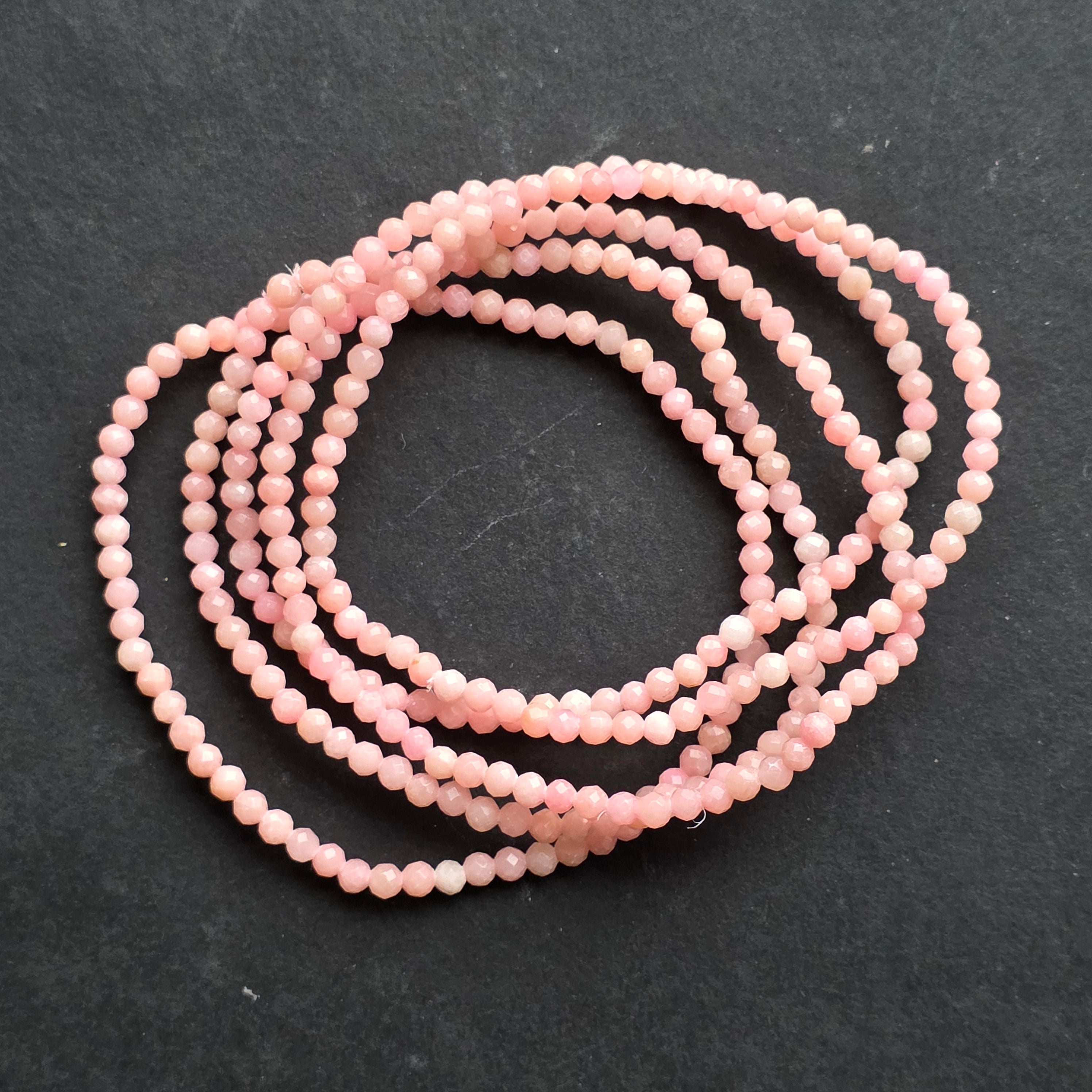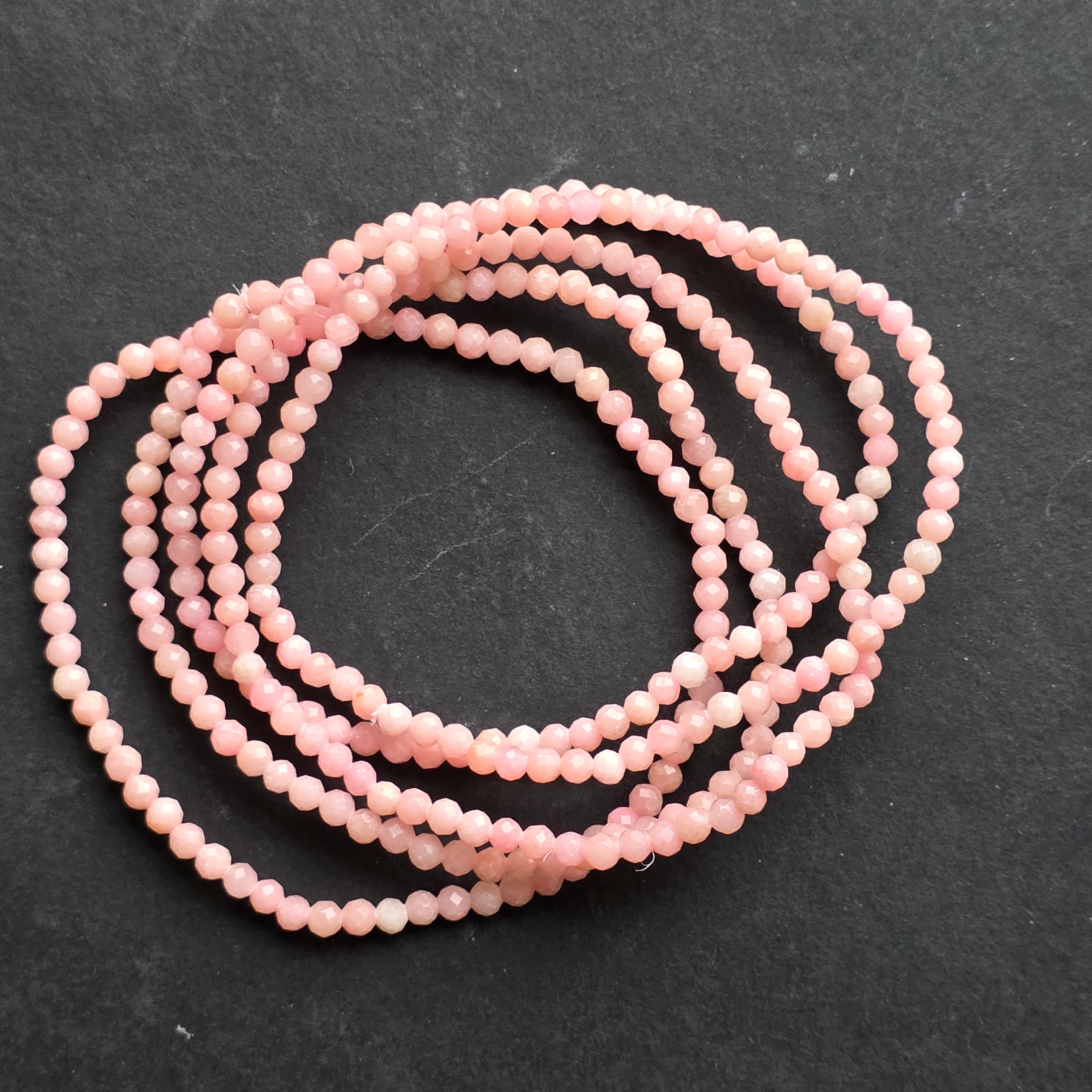 Гривна с фасетиран розов опал 3 мм